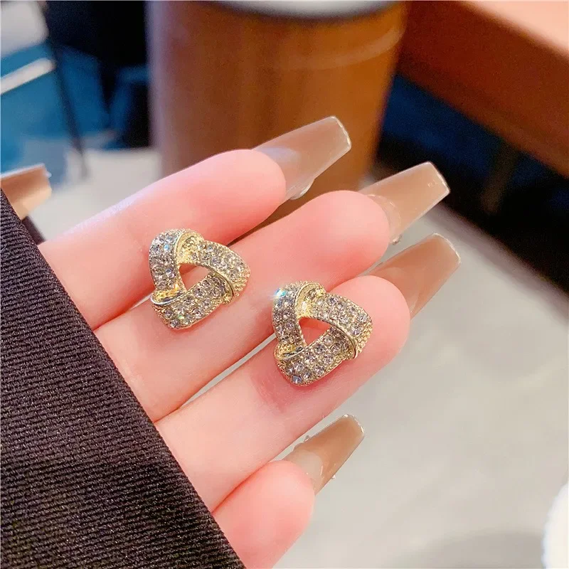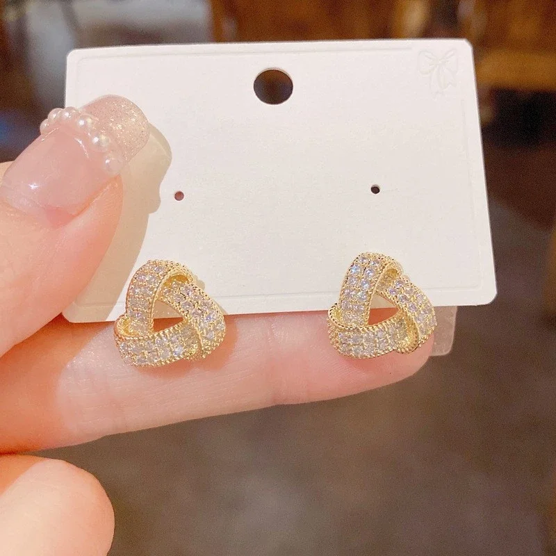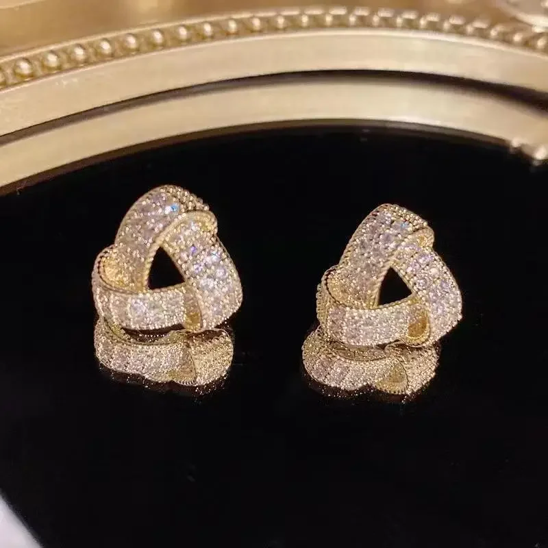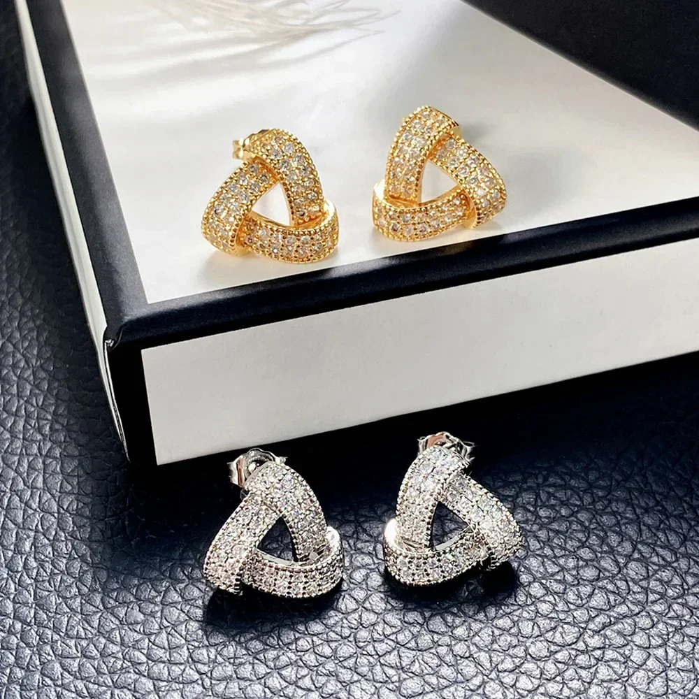 Details: Step into the spotlight with these Geometric Triangle Cubic Zirconia Stud Earrings. The sleek, interlocking triangle design, adorned with sparkling cubic zirconia gemstones, adds a touch of modern sophistication to any look, and creates a dazzling effect that’s perfect for both day and night.