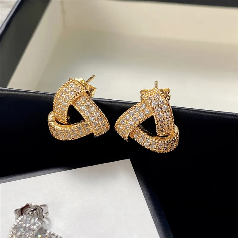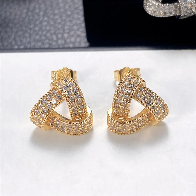 Geometric Triangle Cubic Zirconia Stud Earrings Metal Color: Gold