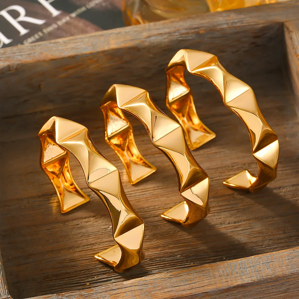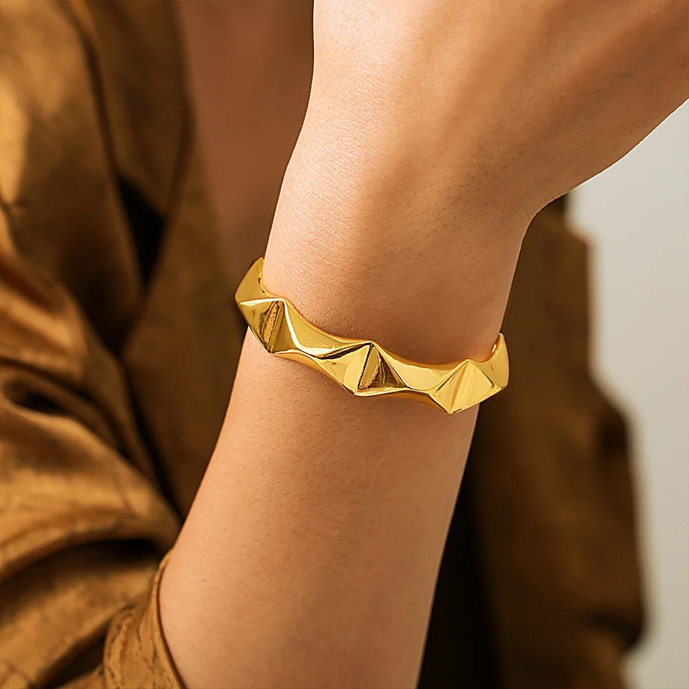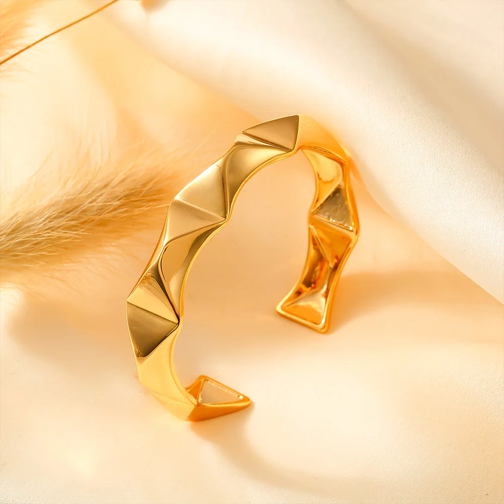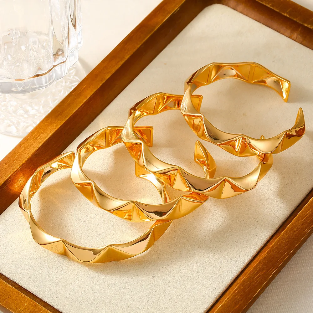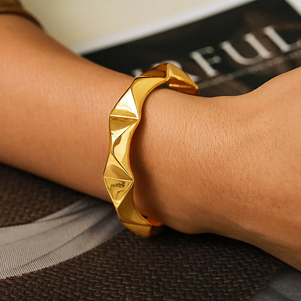 Golden Concave Convex Bangle Cuff Open Bracelet