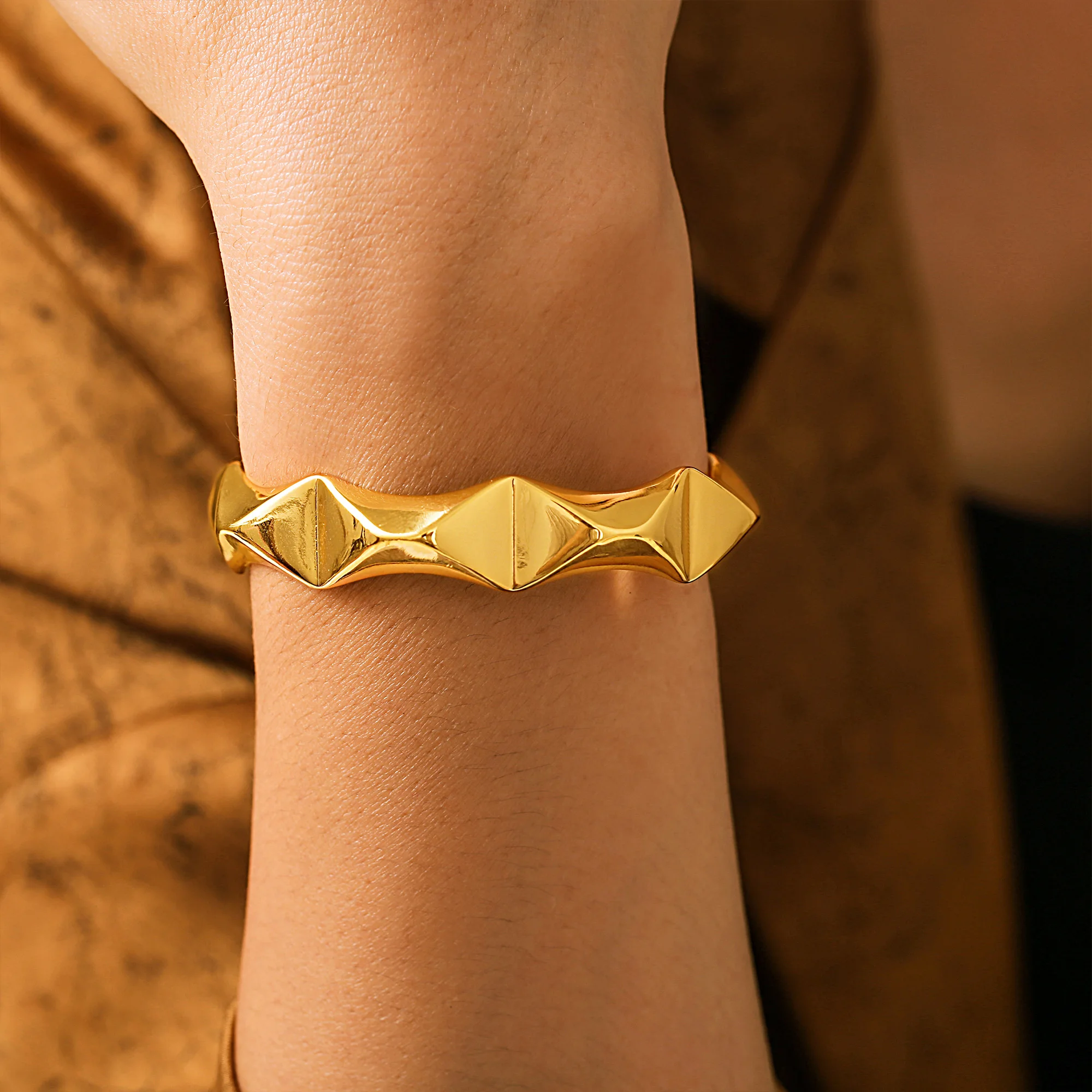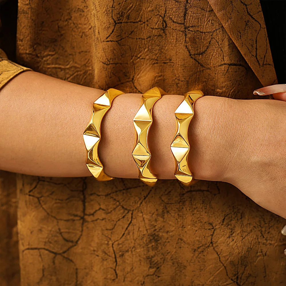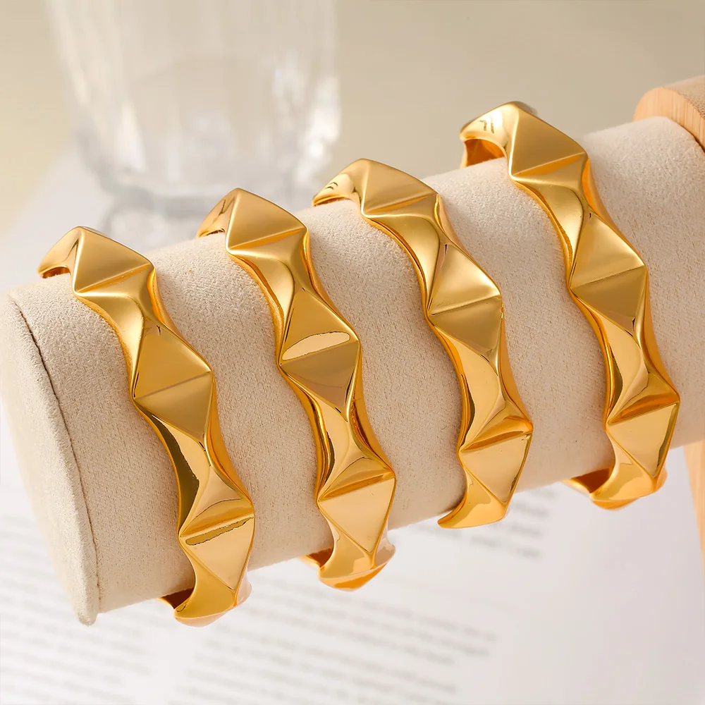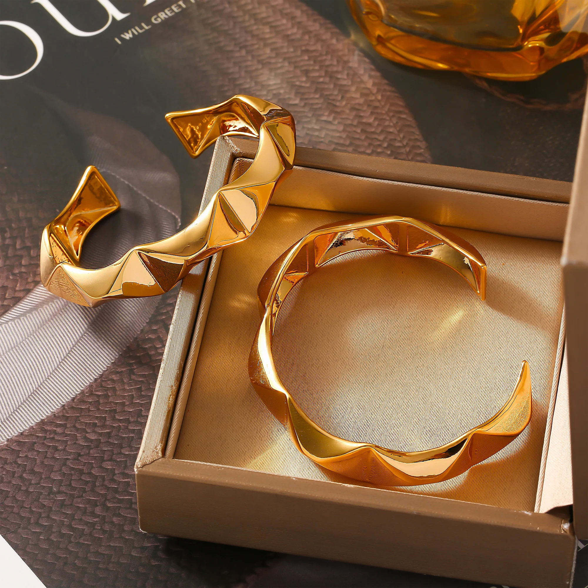 Golden Concave Convex Bangle Cuff Open Bracelet