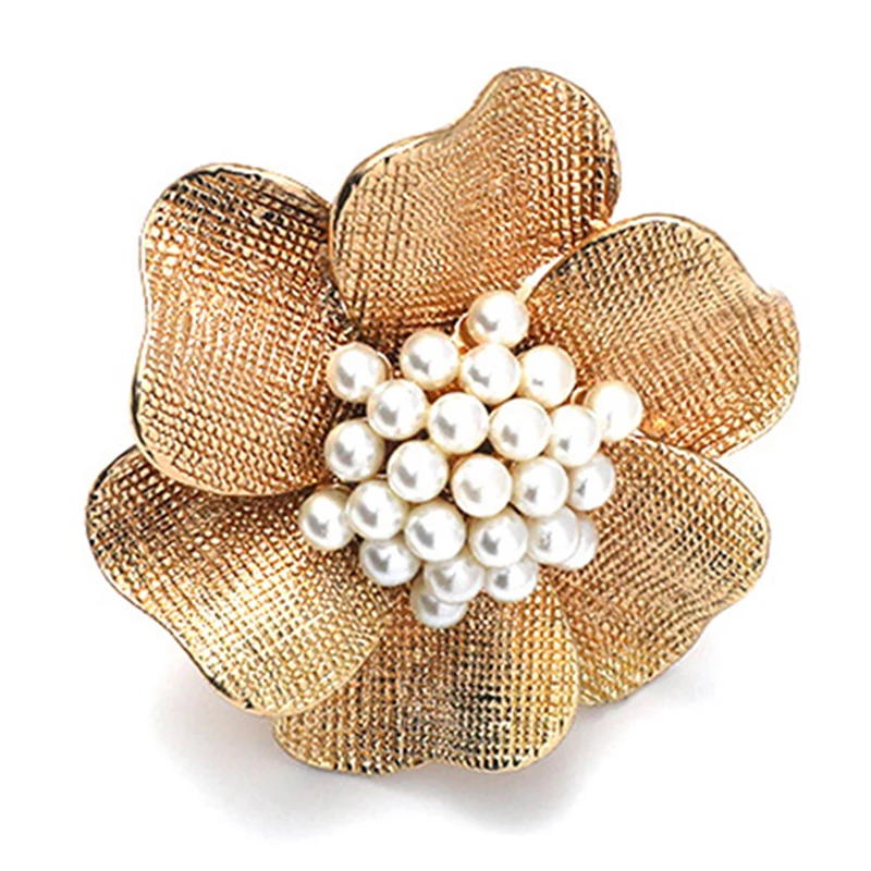 Golden Flower Faux Pearl Open Ring