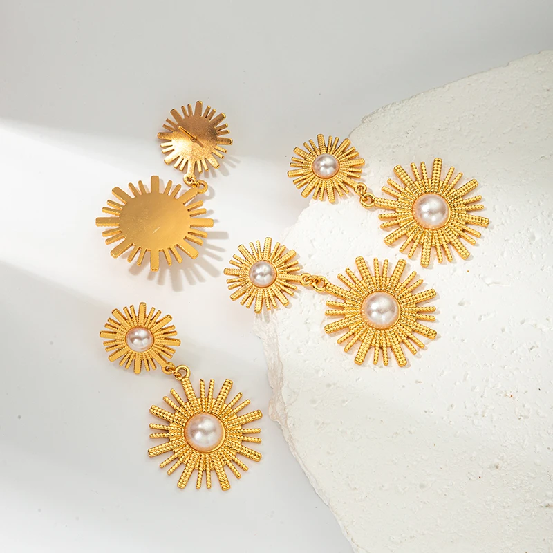 Golden Sun Stainless Steel Dangle Drop Earrings