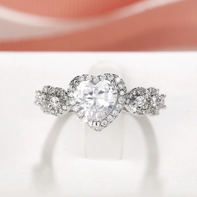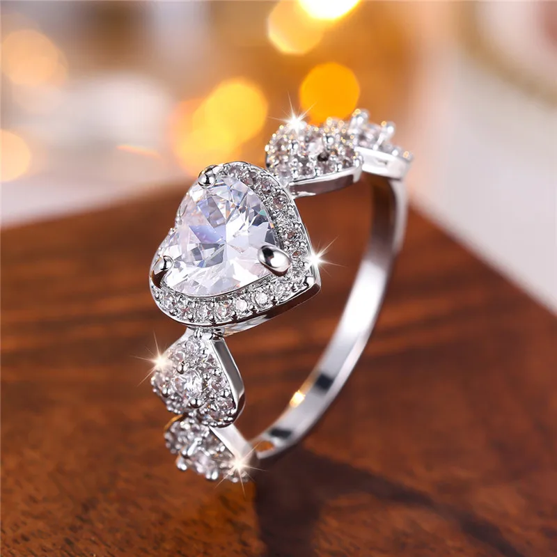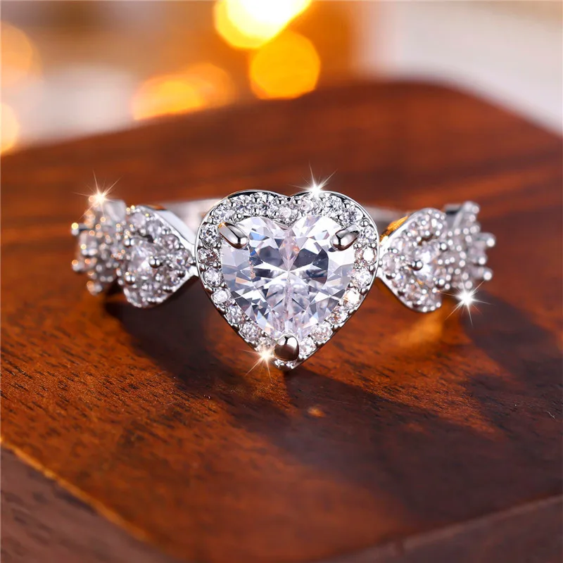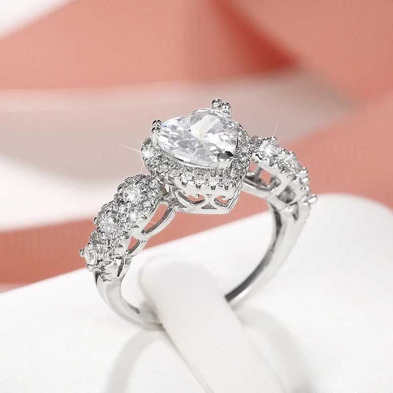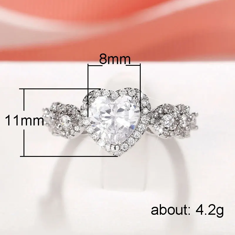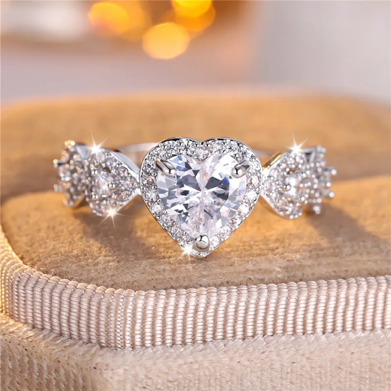 Heart Shaped Cubic Zirconia Wedding Engagement Ring