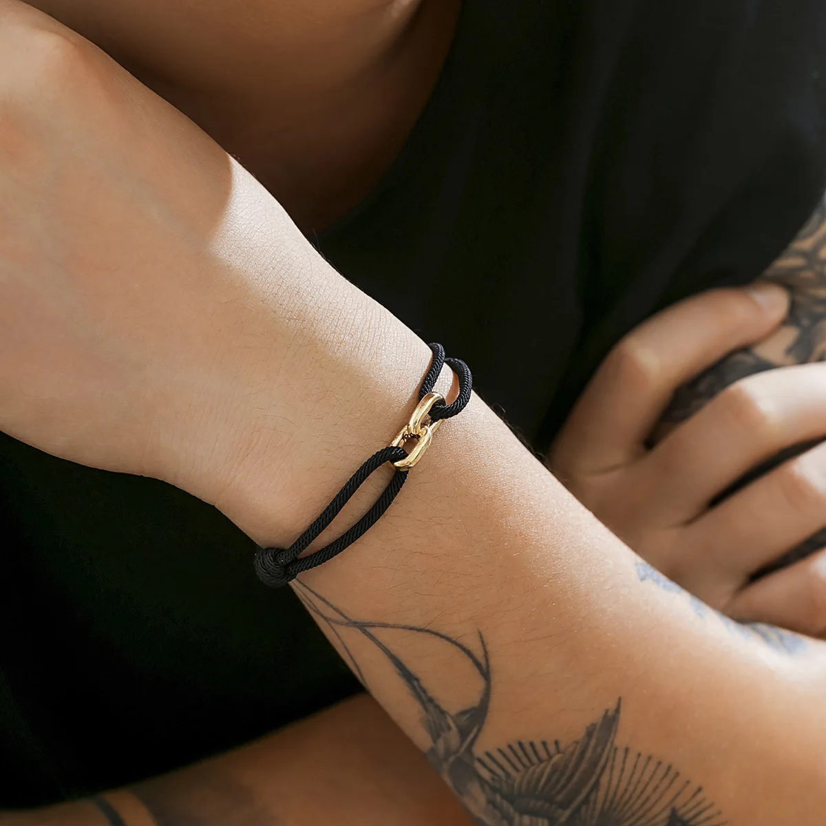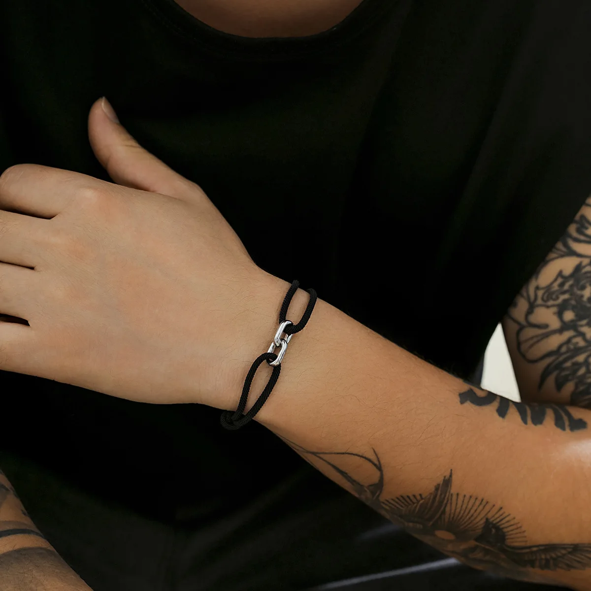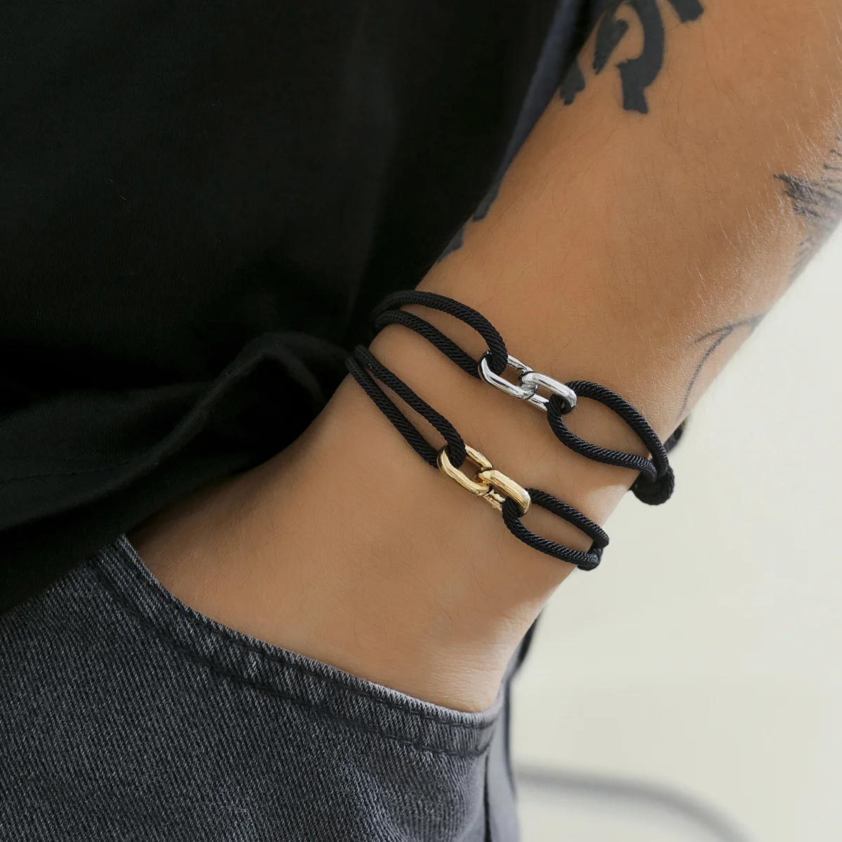 Details: Elevate your style with this refined bracelet that blends urban edge with timeless charm. This bracelet features a sophisticated interlink chain design with a sleek Milan rope-style band combination that exudes modern sophistication. Available in both gold and silver tones, it offers a touch of classic elegance. The adjustable clasp ensures a perfect fit, making it a versatile accessory for any occasion. Perfect for the discerning gentleman who values both style and comfort.