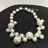 Details: Drape yourself in the poetry of pearls with the Celestial Cascade Collar Necklace — a bold reinterpretation of classic elegance. This statement piece features a constellation of oversized faux pearls in beautifully irregular sizes, each one gleaming like a drop of moonlight. Suspended from delicate silver-toned links, the pearls form a sculptural collar that dances between vintage charm and modern artistry. Whether you’re attending a gallery opening or hosting a candlelit dinner, this piece transforms any moment into a masterpiece.