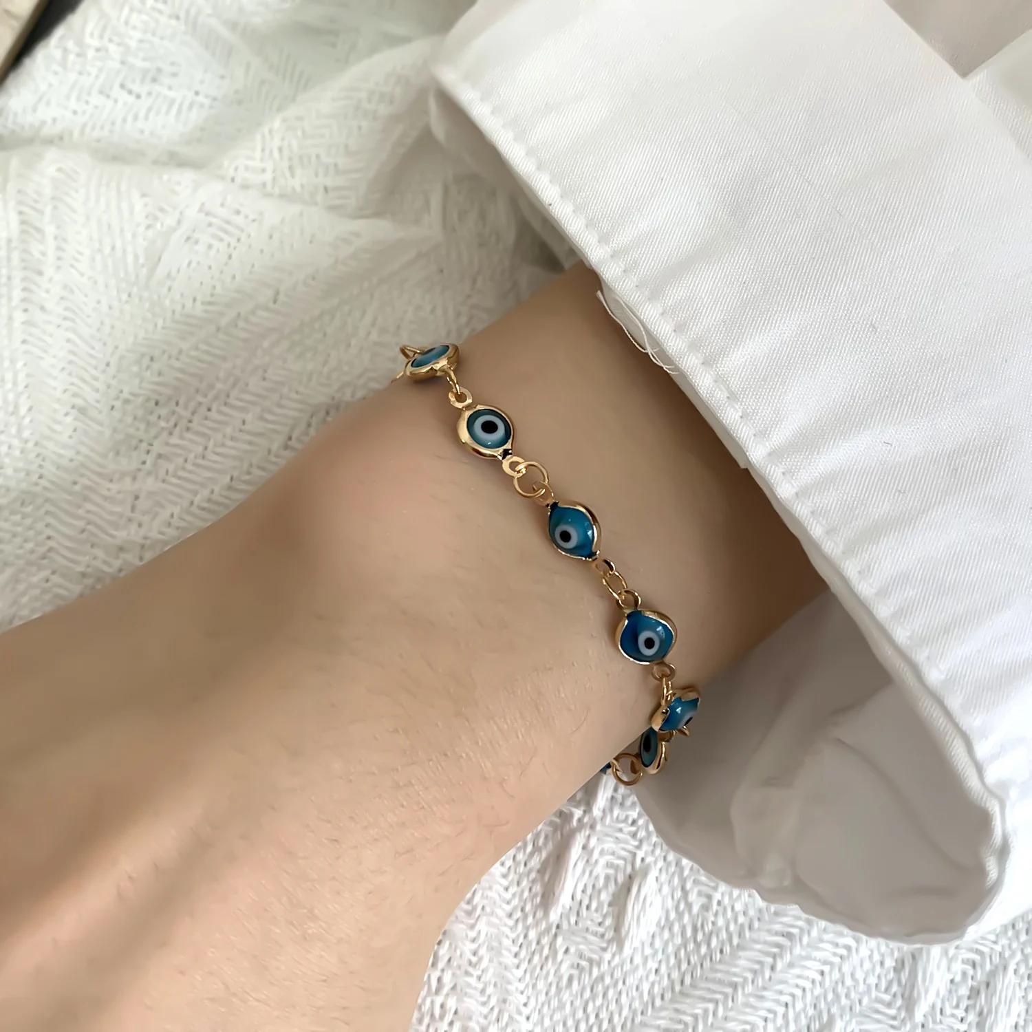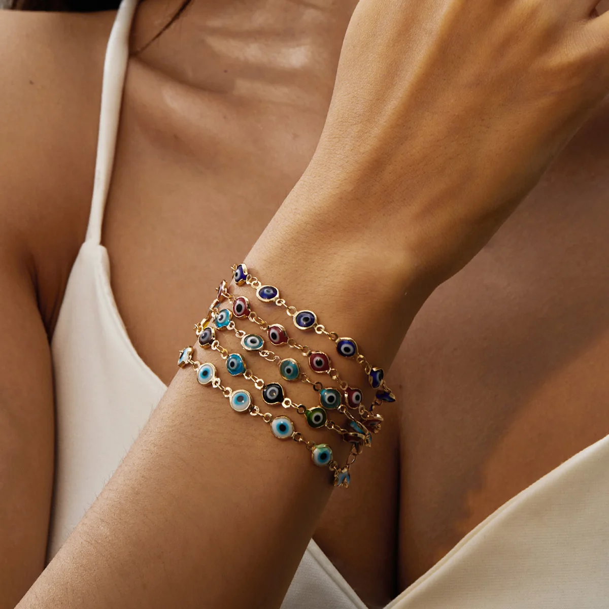 Details: Adorn your wrist with a kaleidoscope of protection and positivity, let the Lucky Turkish Evil Eye Charm Bracelet wrap your wrist in a spectrum of charm and protection. Each charm on these Lucky Evil Eye Bracelets is delicately designed to combine vibrant colors and cultural significance. The vivid hues — ranging from turquoise to crimson — dance alongside delicate gold chains, creating a stunning harmony that celebrates life’s beauty while safeguarding your journey. These Lucky Turkish Evil Eye Charm Bracelets are more than jewelry — they’re your personal talismans, handcrafted with intricate detail to ward off negativity and invite good fortune. Layer them up or wear them solo for a look as bold as your spirit.