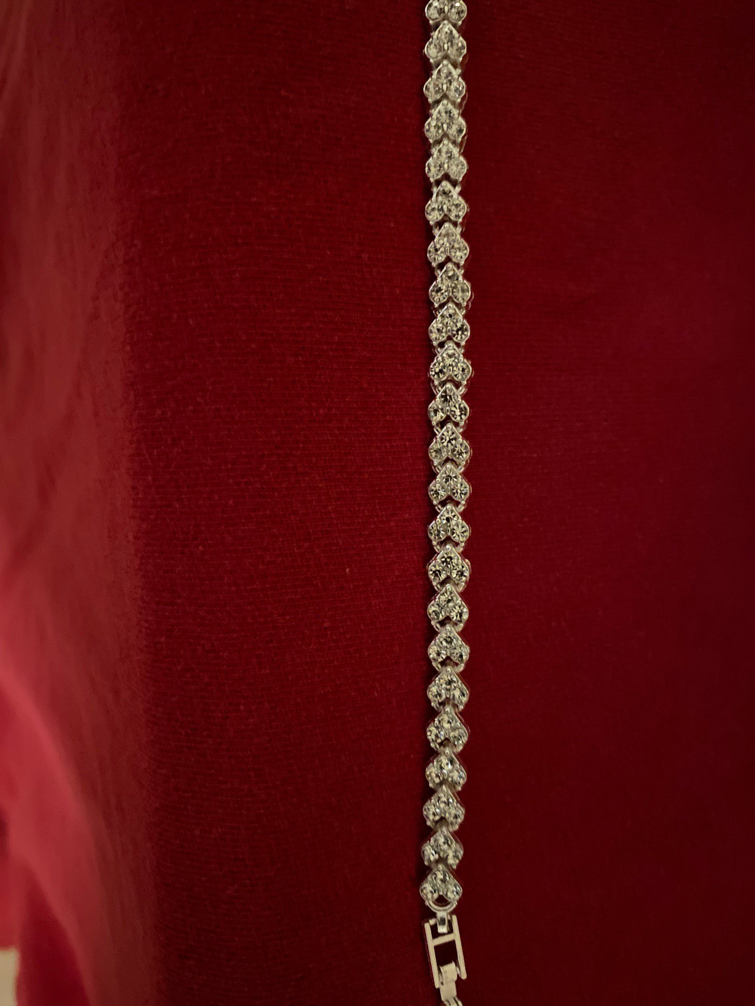Details: This bracelet is a charming piece of jewelry that will make you feel like a princess. The bracelet is made up of multiple love or heart shaped cubic zirconia gemstones that are arranged in a row. The bracelet is available in three colors: silver, rose gold, and gold. The bracelet has a clasp closure that makes it easy to wear and secure. This bracelet is a perfect piece that will make you shine and dazzle.