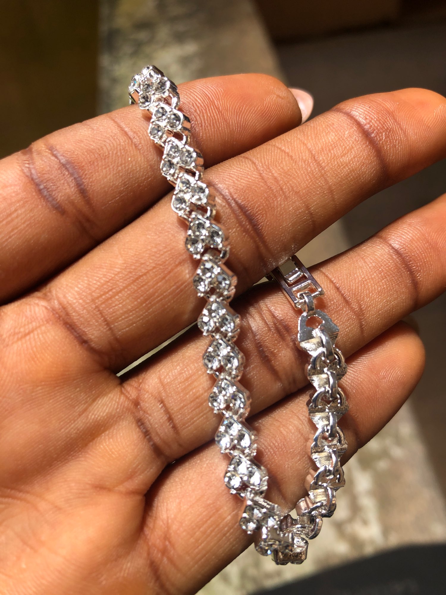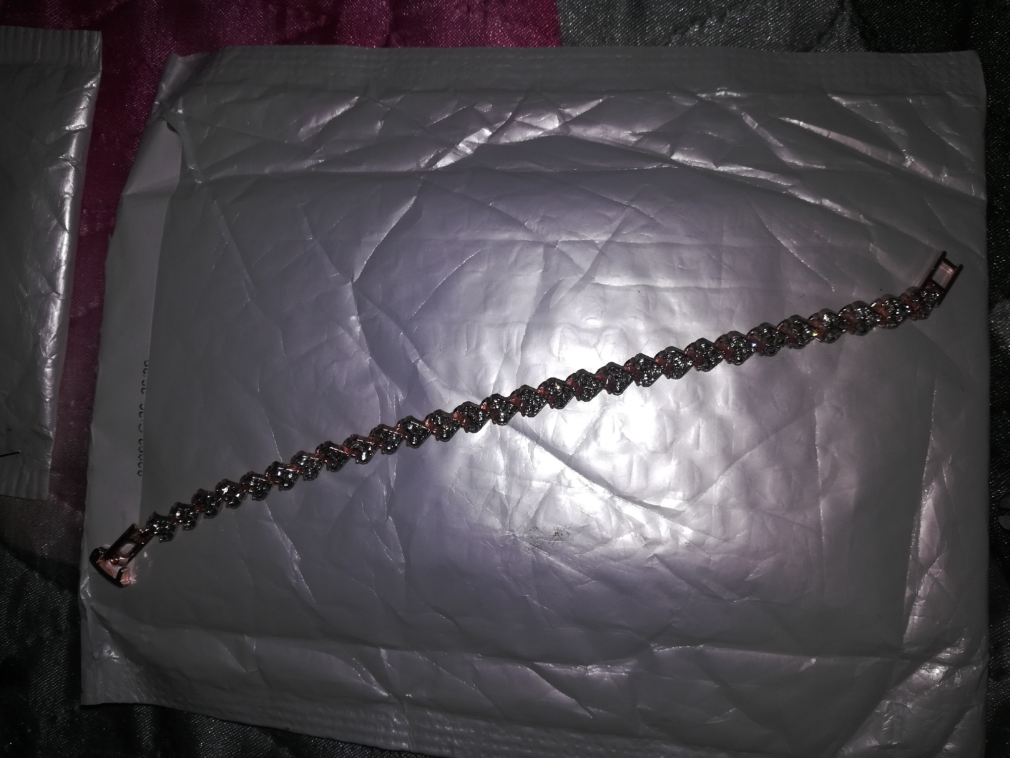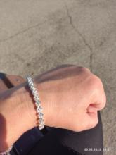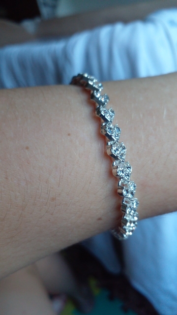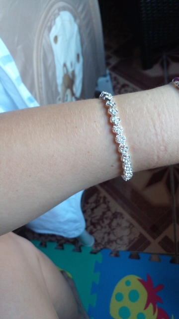 Cool bracelet, the camera did not convey all the sparkle of the stones. The hand looks chic, the clasp is very comfortable. On the hand of medium fullness perfectly fit. Delivery within a month, everything has been tracked. Recommend product and store