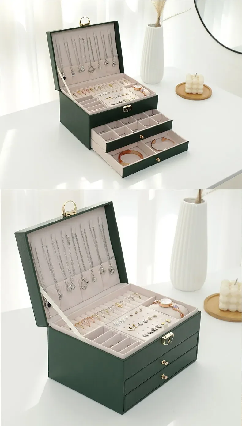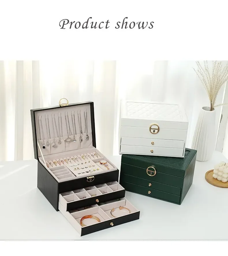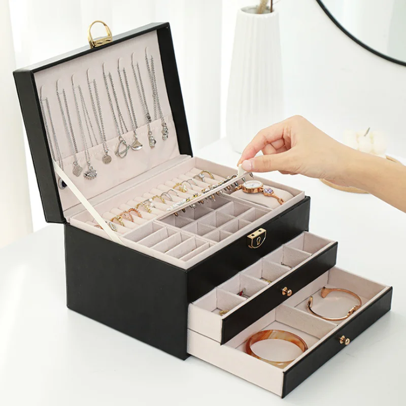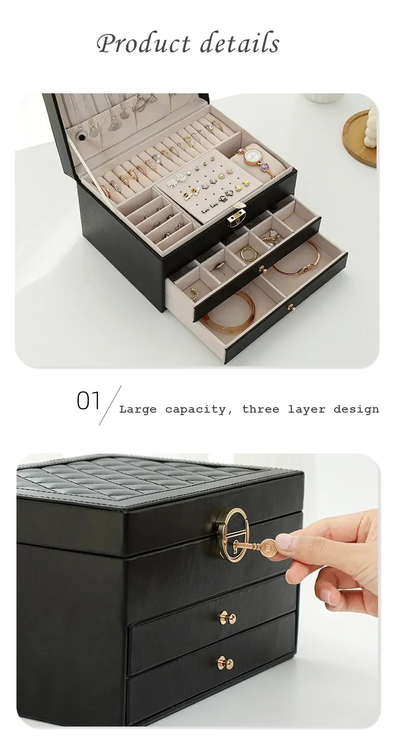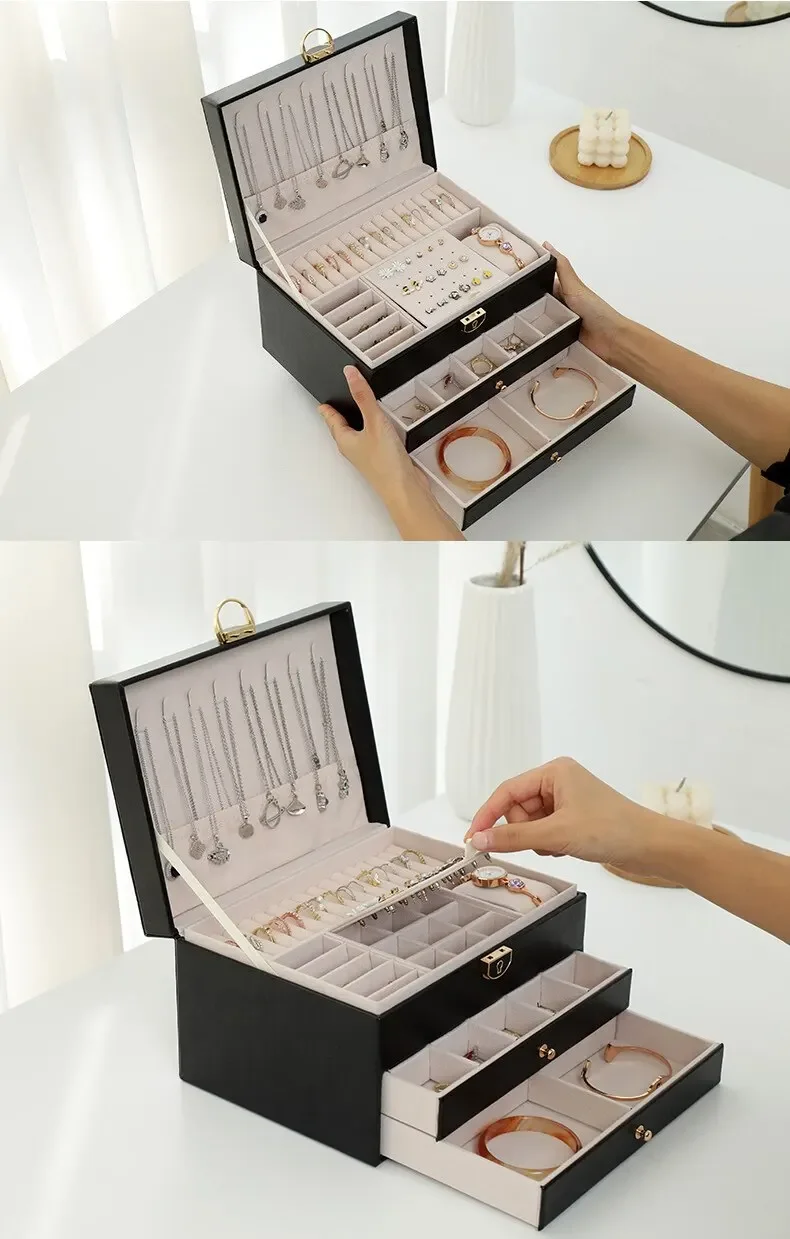 Luxury 3 Layers PU Jewelry Organizer Storage Box