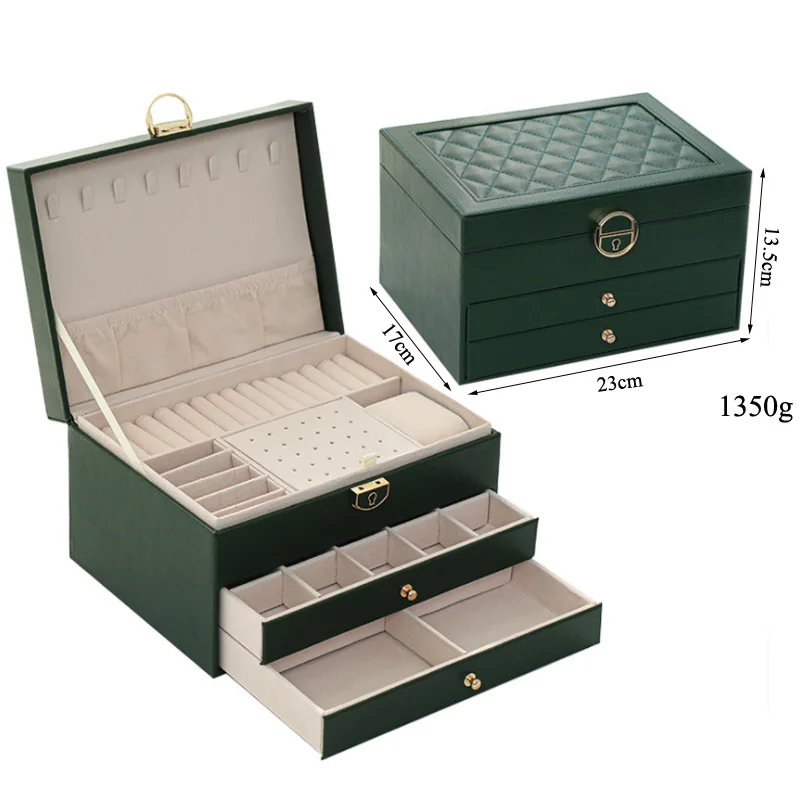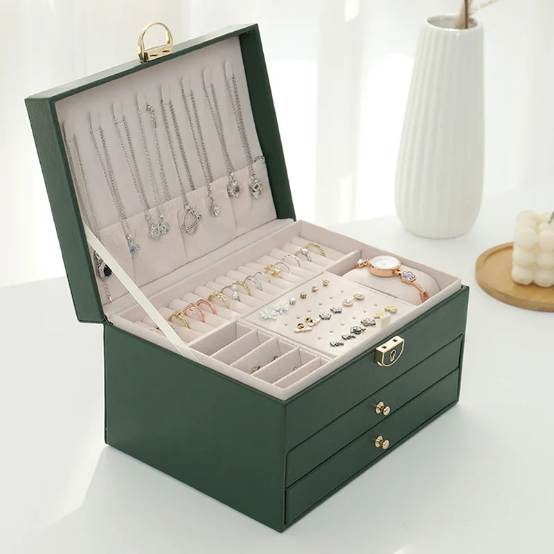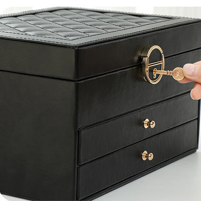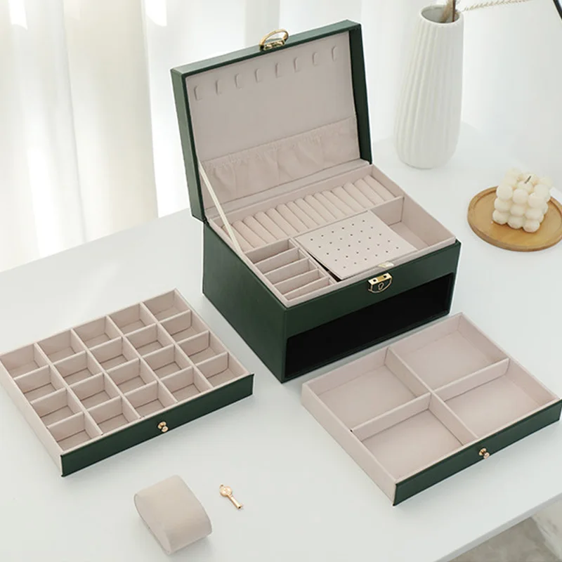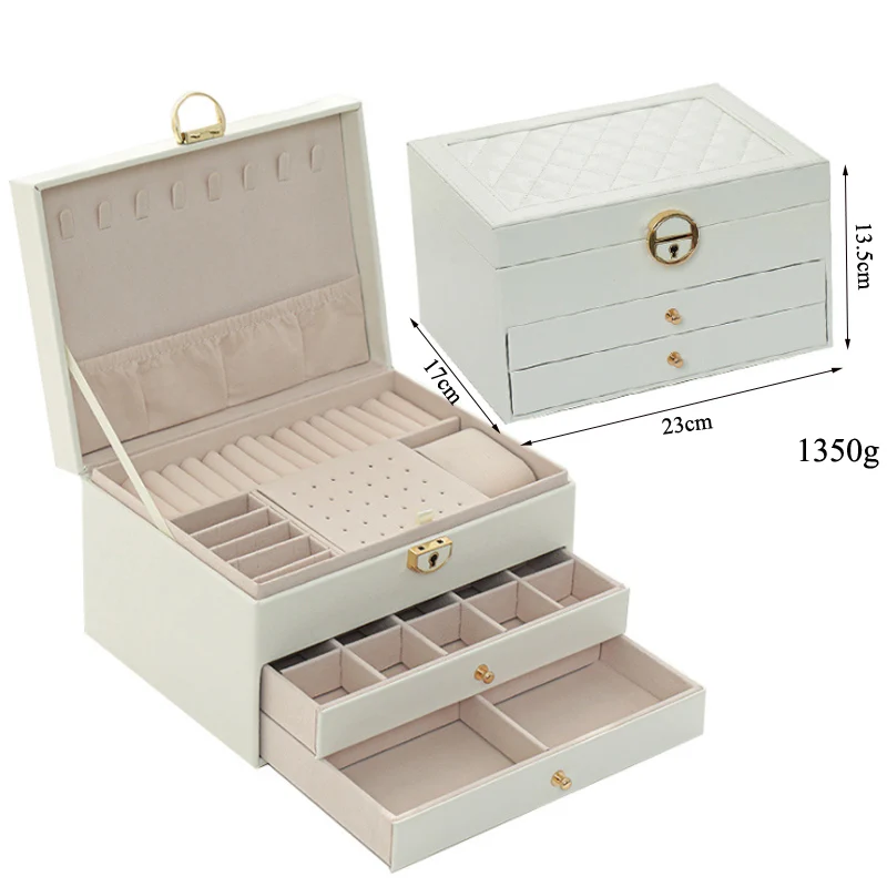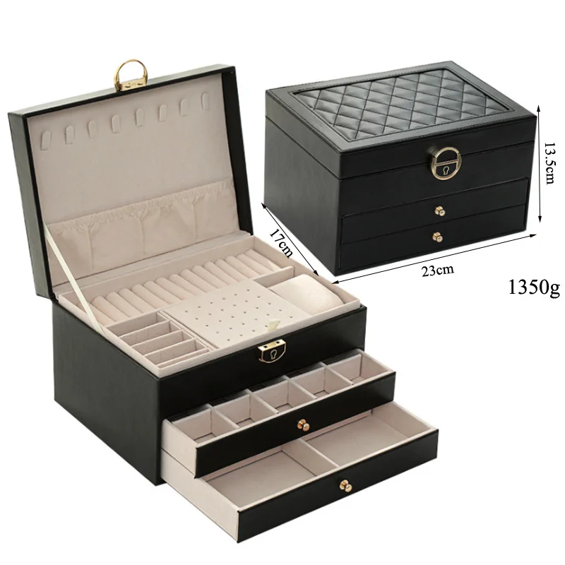 Luxury 3 Layers PU Jewelry Organizer Storage Box