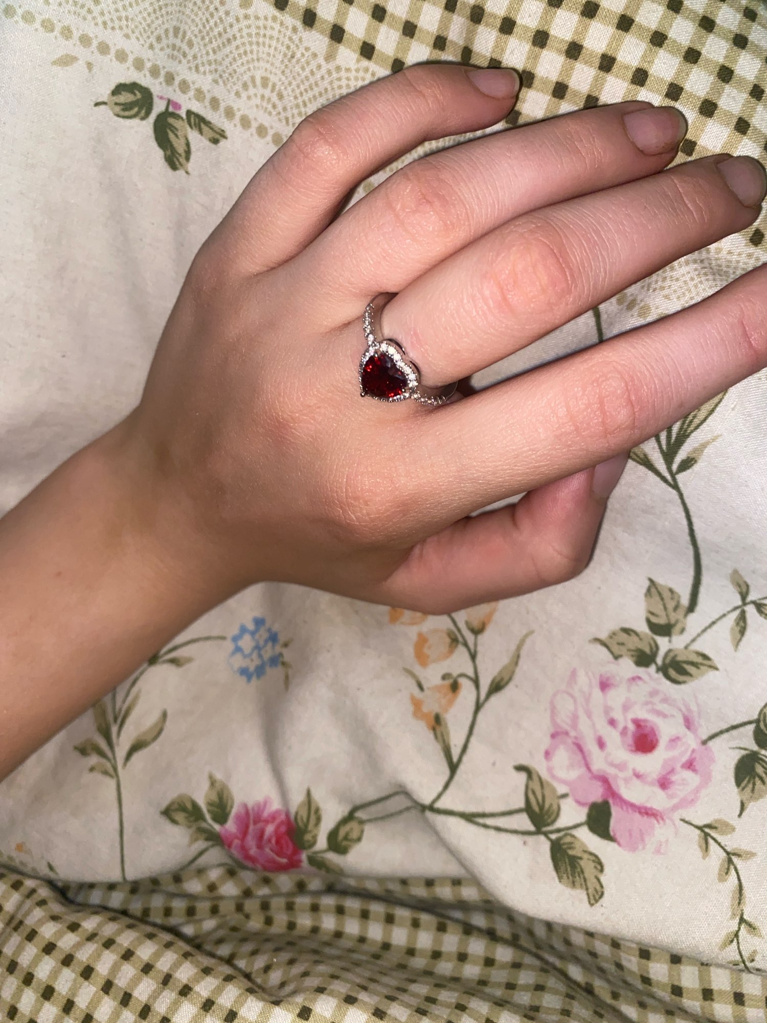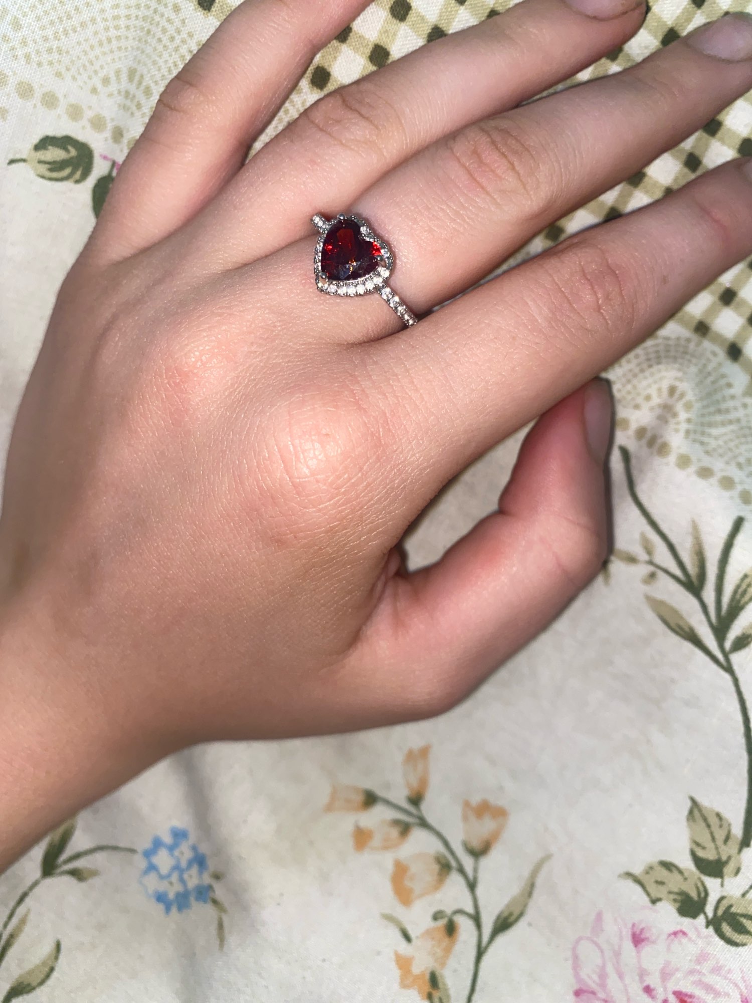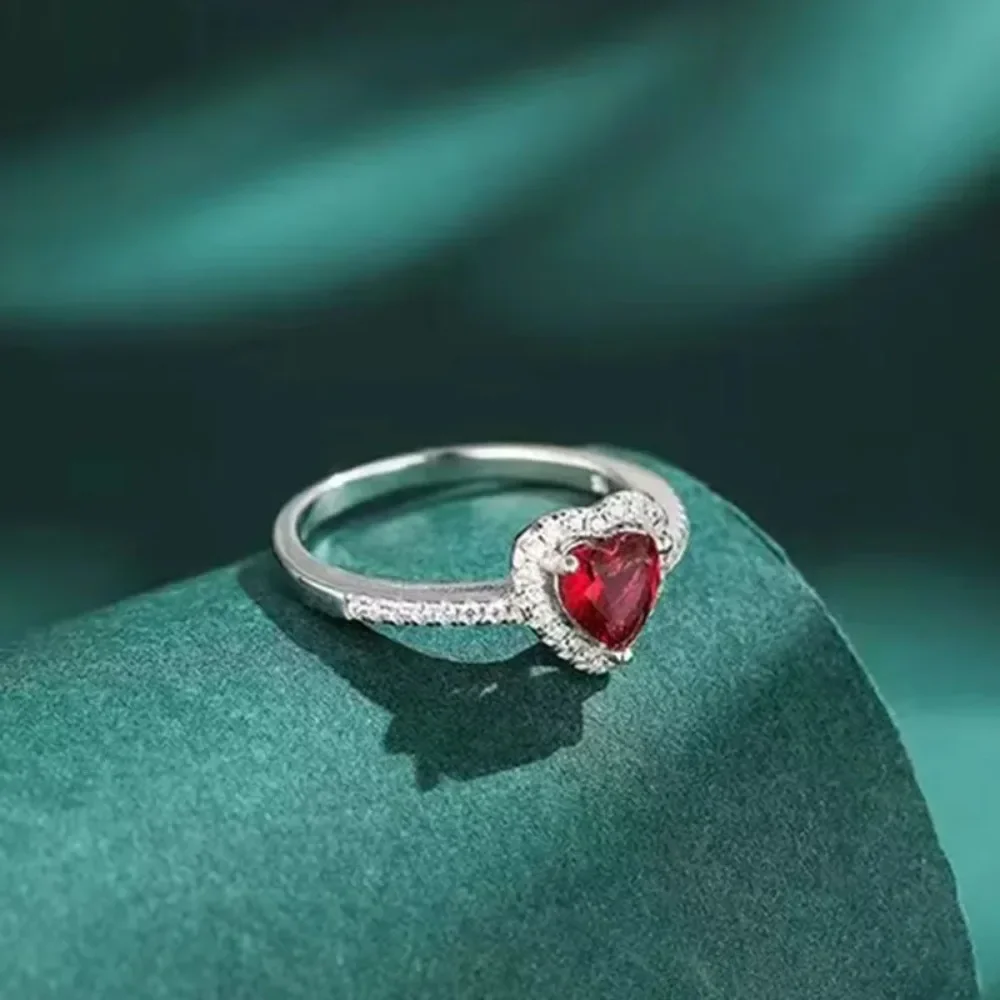 Details: Celebrate your love story with the Eternal Love Heart-Shaped Cubic Zirconia Engagement Ring. This exquisite piece features a stunning deep red, or bright white heart-shaped cubic zirconia, reminiscent of a precious gemstone, symbolizing passion and romance. The centerpiece is gracefully embraced by a halo of sparkling clear stones, adding a touch of brilliance and elegance. Crafted with meticulous attention to detail, the split shank band, made of lustrous silver plating, enhances the ring’s overall radiance. The smaller stones cascading down the band create a dazzling effect, ensuring that this ring catches the light from every angle. Perfect for those who seek an elegant yet affordable symbol of love and commitment, this ring is a promise of forever. Whether you’re planning a surprise proposal or looking for the perfect wedding band, the Eternal Love ring is designed to make every moment unforgettable.