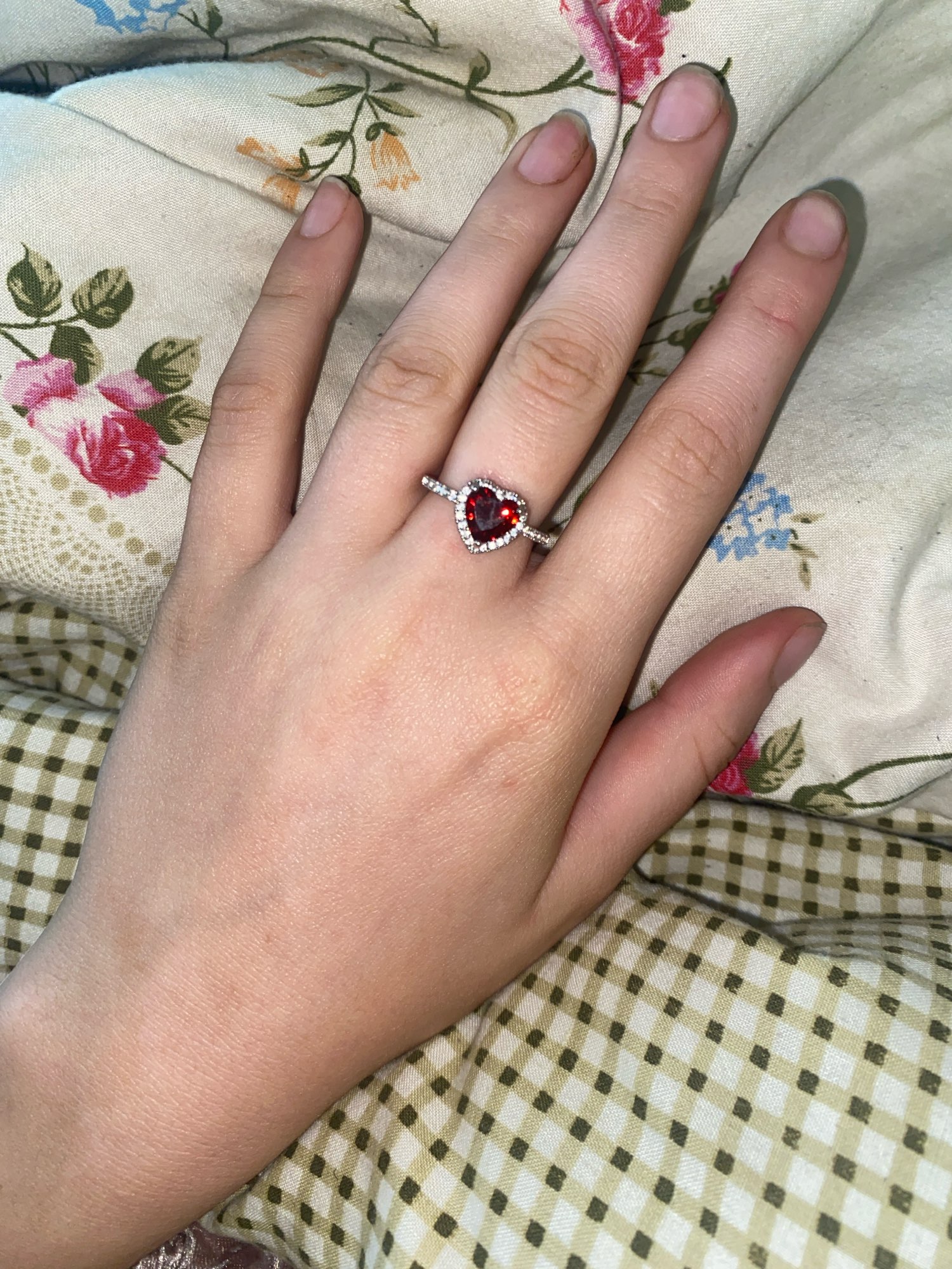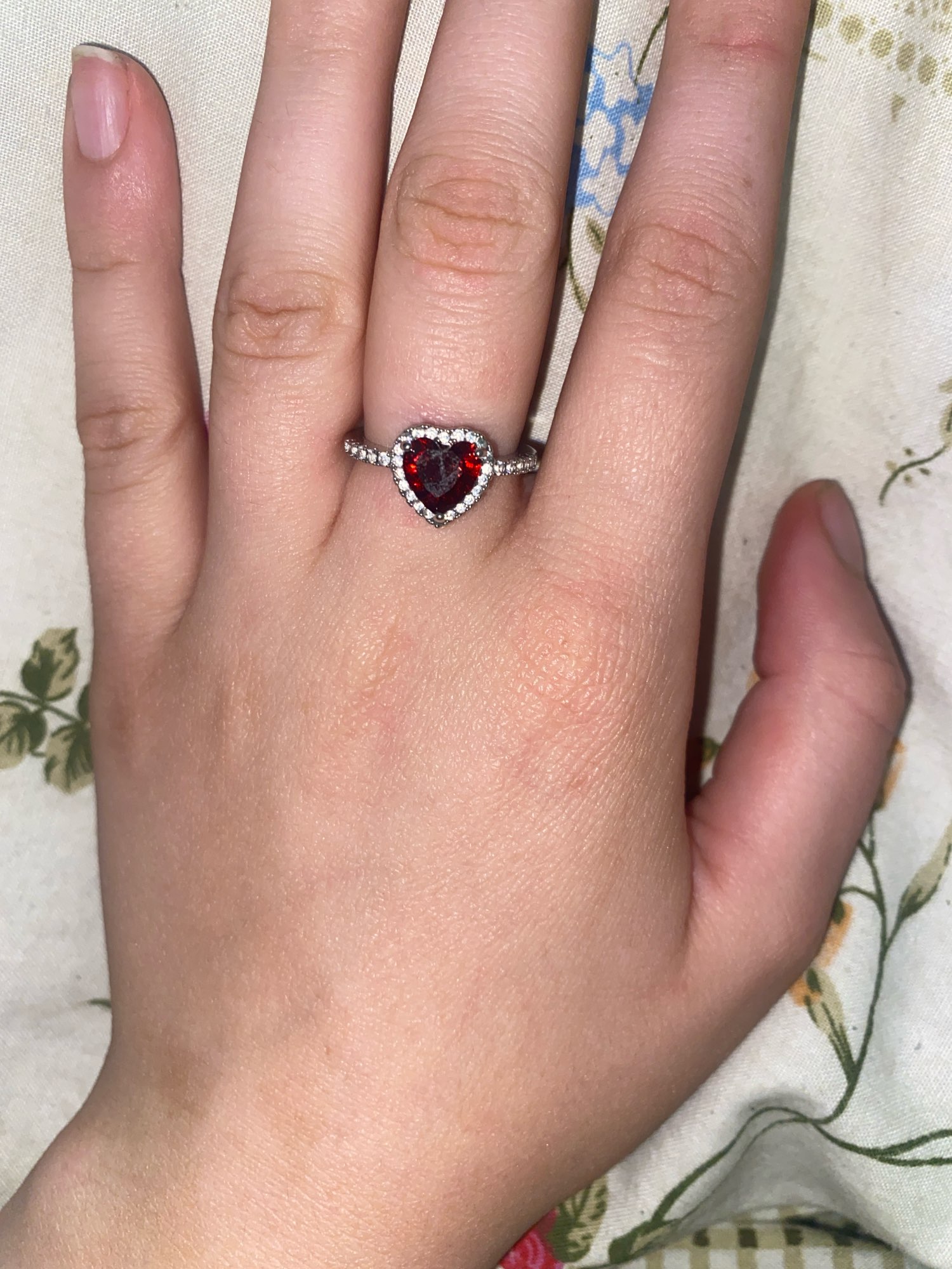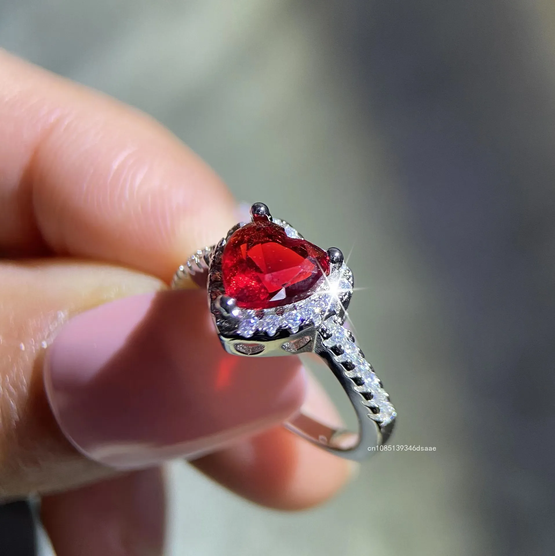 Details: Celebrate your love story with the Eternal Love Heart-Shaped Cubic Zirconia Engagement Ring. This exquisite piece features a stunning deep red, or bright white heart-shaped cubic zirconia, reminiscent of a precious gemstone, symbolizing passion and romance. The centerpiece is gracefully embraced by a halo of sparkling clear stones, adding a touch of brilliance and elegance. Crafted with meticulous attention to detail, the split shank band, made of lustrous silver plating, enhances the ring’s overall radiance. The smaller stones cascading down the band create a dazzling effect, ensuring that this ring catches the light from every angle. Perfect for those who seek an elegant yet affordable symbol of love and commitment, this ring is a promise of forever. Whether you’re planning a surprise proposal or looking for the perfect wedding band, the Eternal Love ring is designed to make every moment unforgettable.