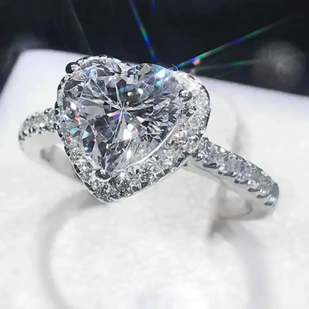 Luxury Heart Shaped Cubic Zirconia Engagement Wedding Ring