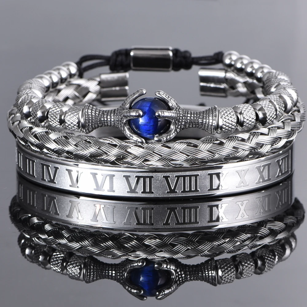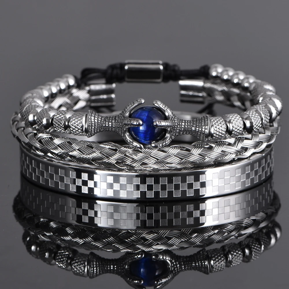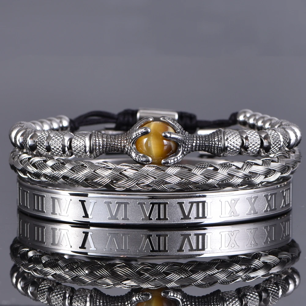 Details: These luxury set of 3-piece charm bracelets highlight the natural stone Tiger Eye being held by dragon-like claws. The perfect fusion of style and quality makes these bracelets the ideal fashion accessories for every occasion.