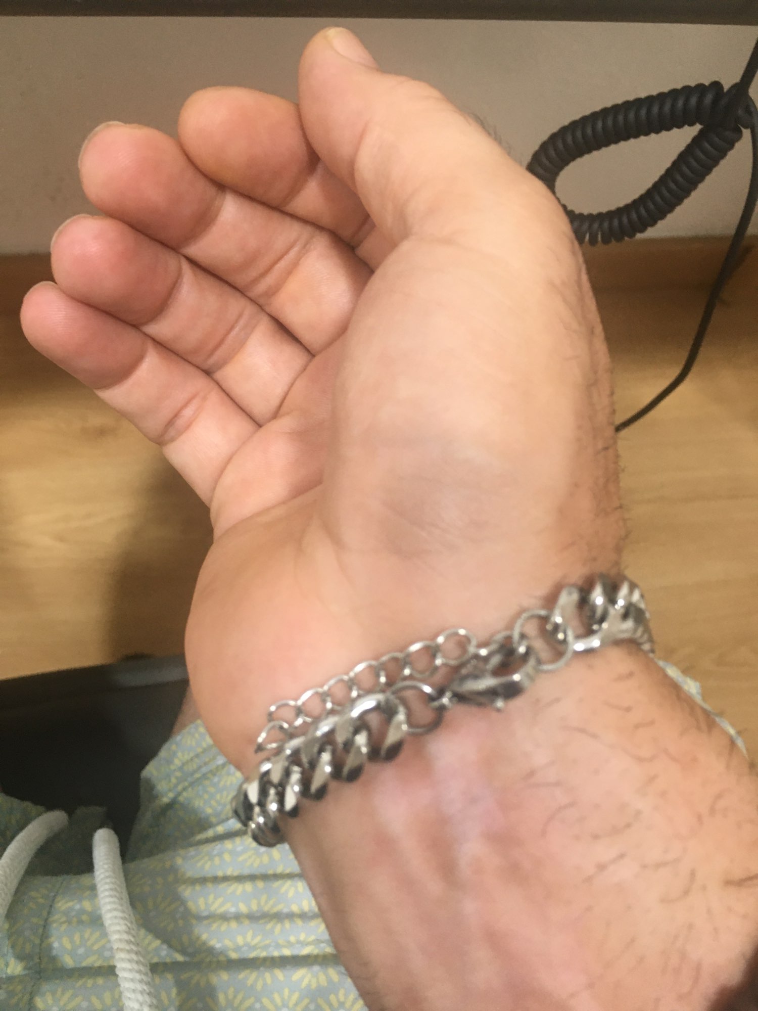 Ordered 16.04.2021 delivered on 14.05.2021. The chain looks massive, who has a large hand in volume helps an additional small chain, without it, who does not have the hand to buckle or add an additional ring and remove it. And so it looks good. Thank you to the store and who likes this, I advise the seller.