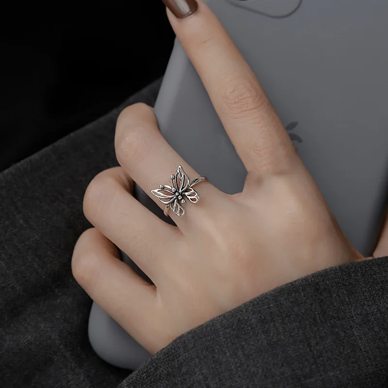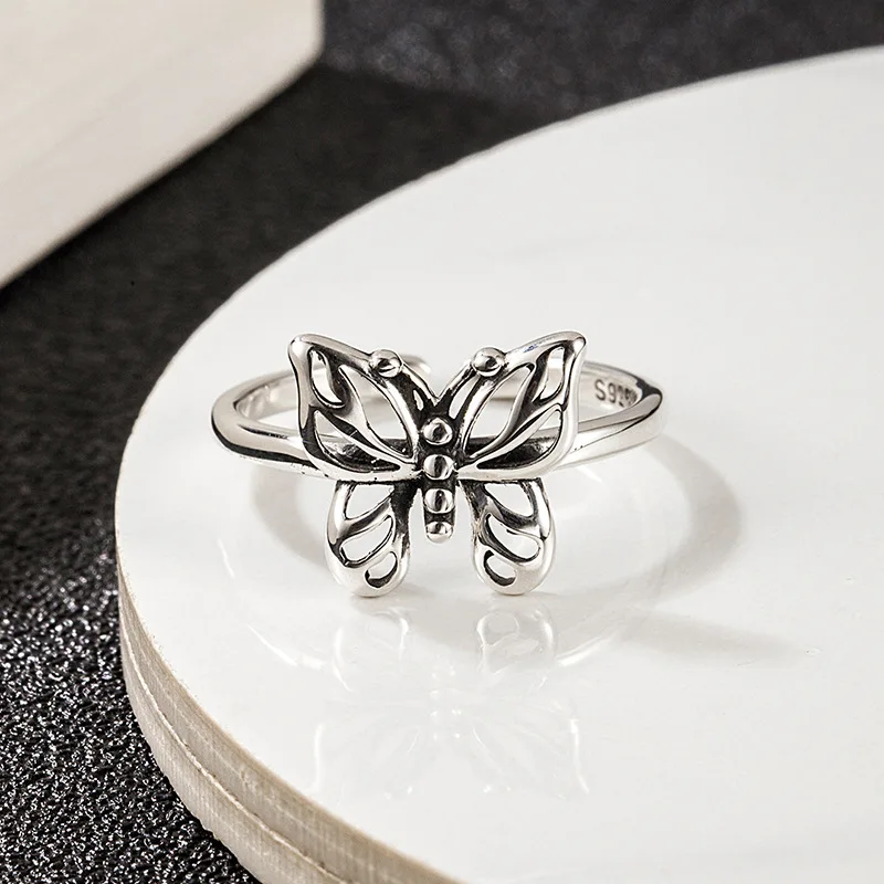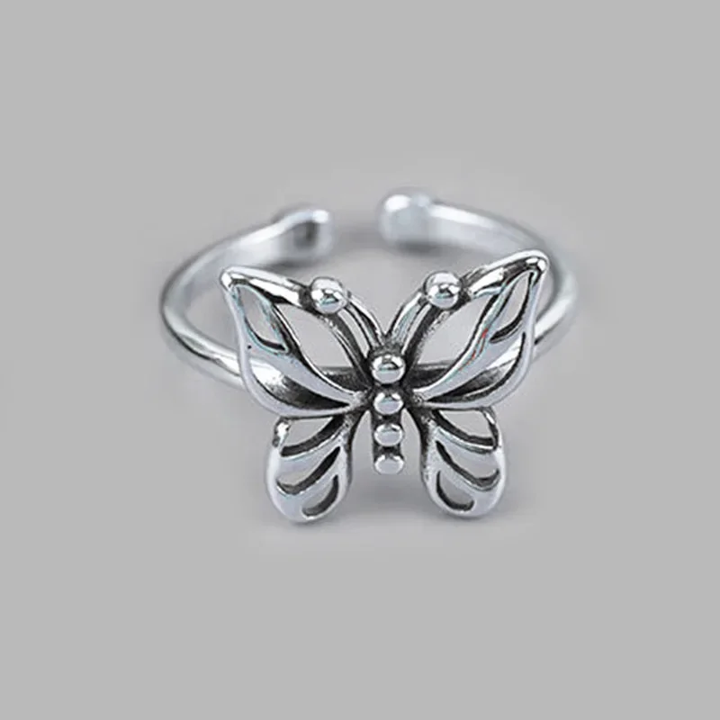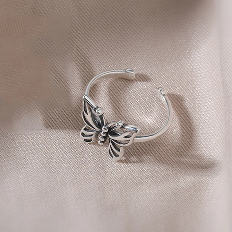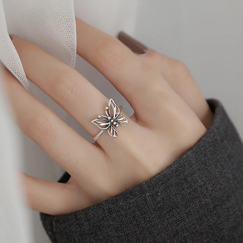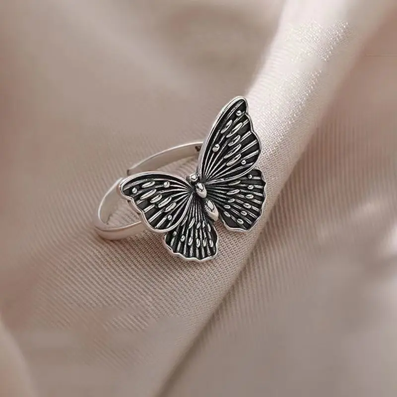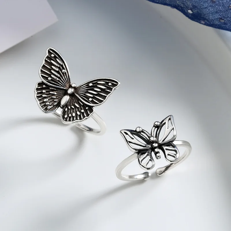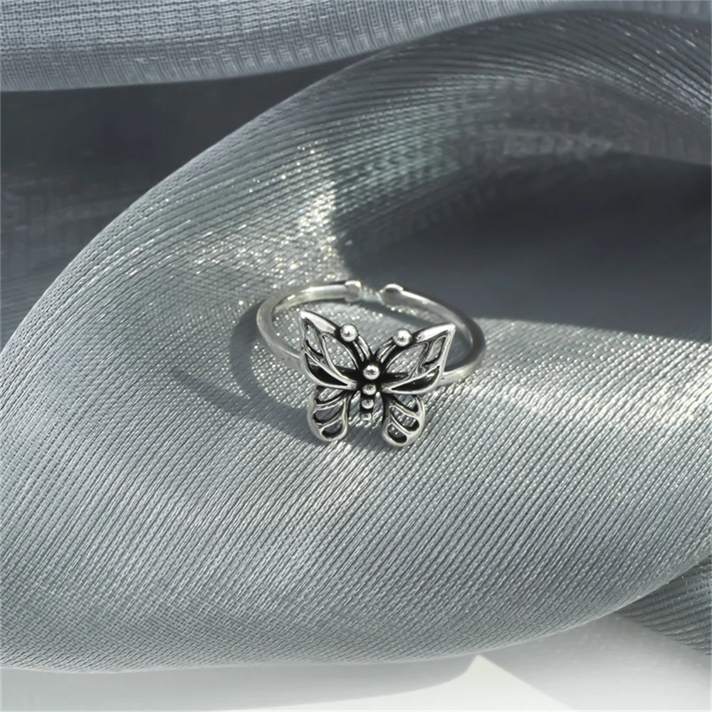 Details: Add a touch of vintage charm to your jewelry collection with these Minimalist Distressed Butterfly Open Rings. Made from durable alloy, these rings feature two unique butterfly designs. The larger butterfly boasts intricate distressed wing details that exude elegance and grace giving it a timeless appeal, while the smaller butterfly offers a more delicate and subtle understated charm yet equally captivating look. Lightweight and comfortable for everyday wear, these rings are perfect for adding a touch of whimsy and sophistication to any outfit.
