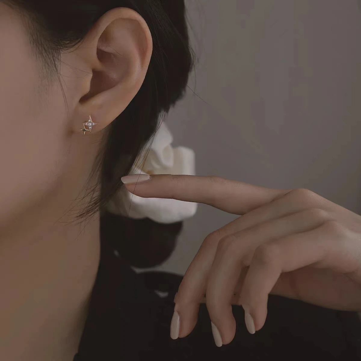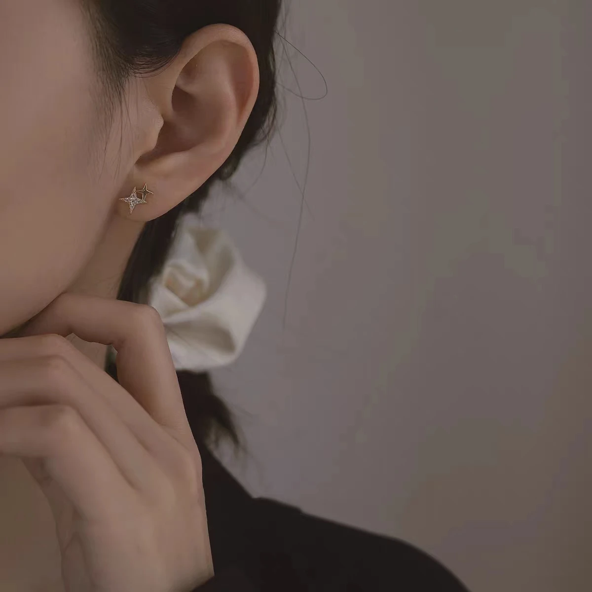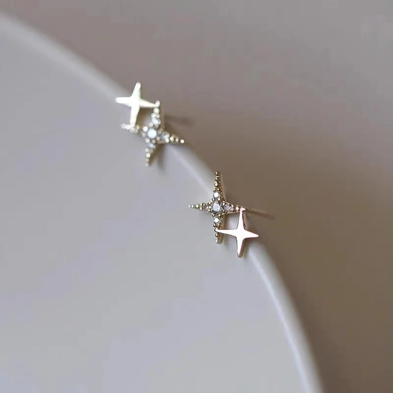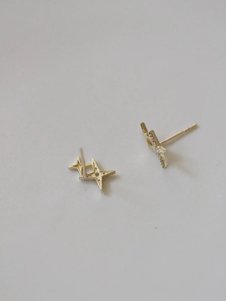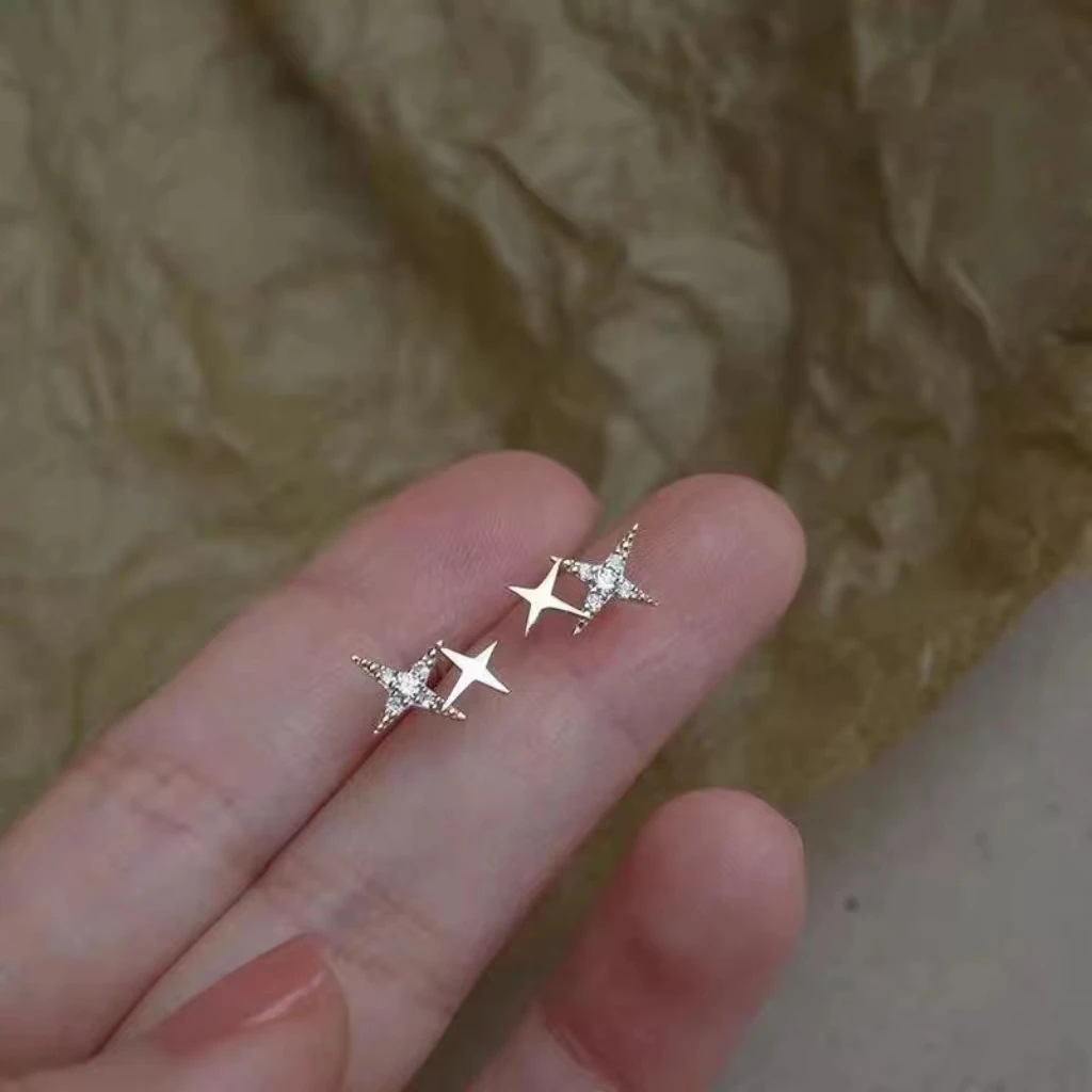 Details: These stud earrings feature a minimalist four-point star design. Each point of the star sparkles with a tiny crystal, like distant stars in the night sky. The gold-tone finish adds warmth and sophistication, the silver-tone brilliance captures the essence of moonlit nights. The four-point star exudes simplicity and grace. Ideal for those who appreciate subtle beauty and celestial motifs.