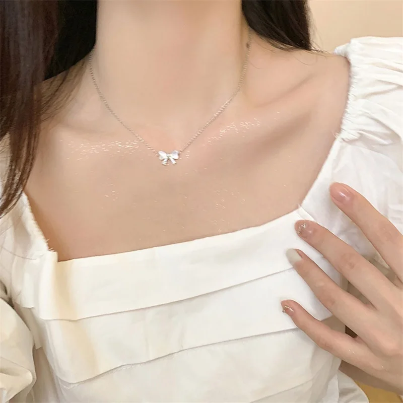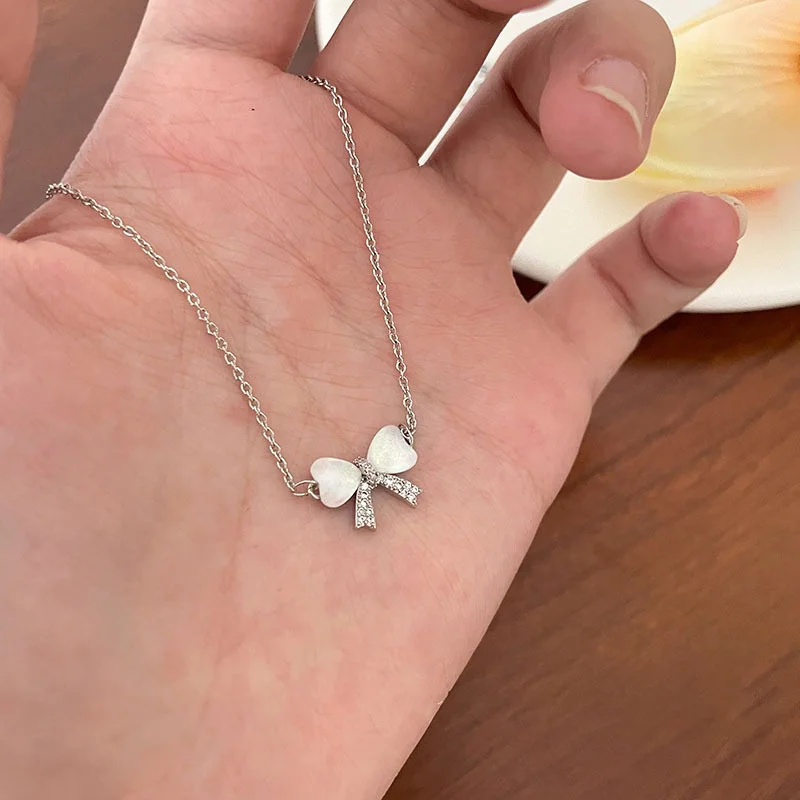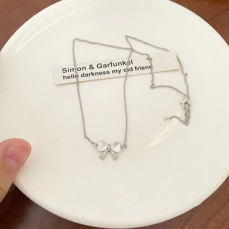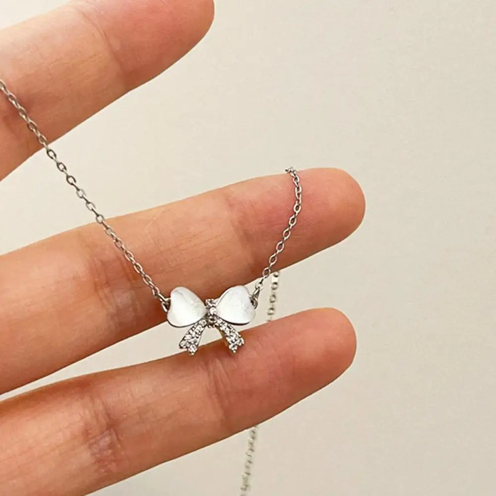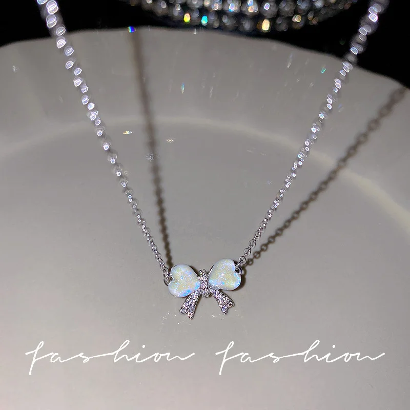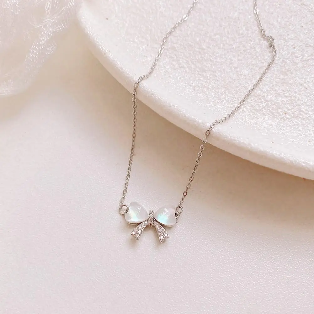 Minimalist Opal Bow Bowknot Pendant Clavicle Necklace