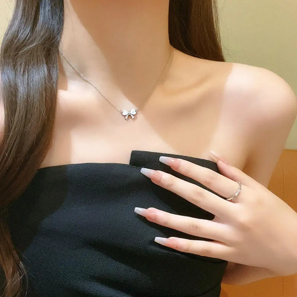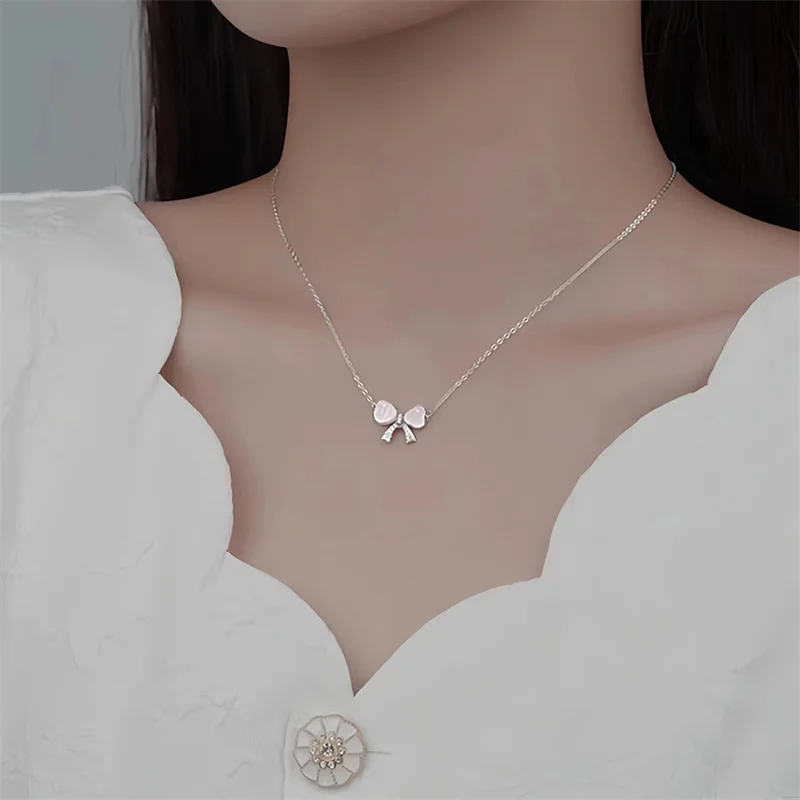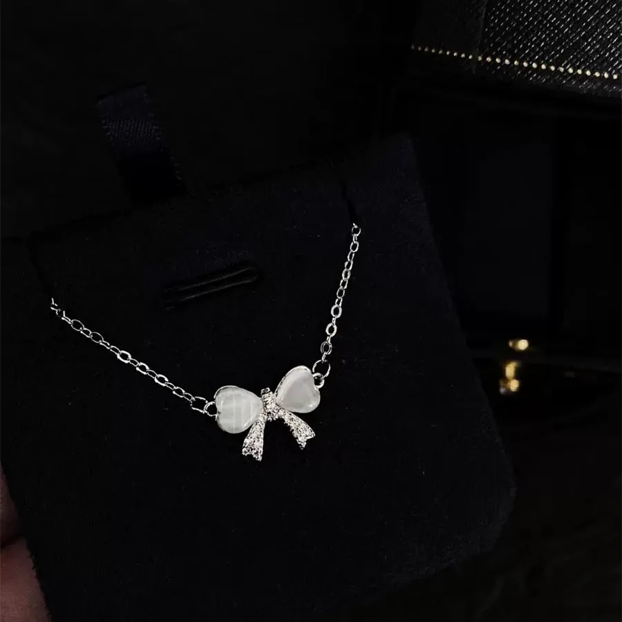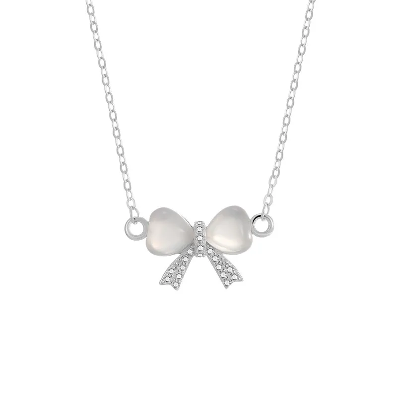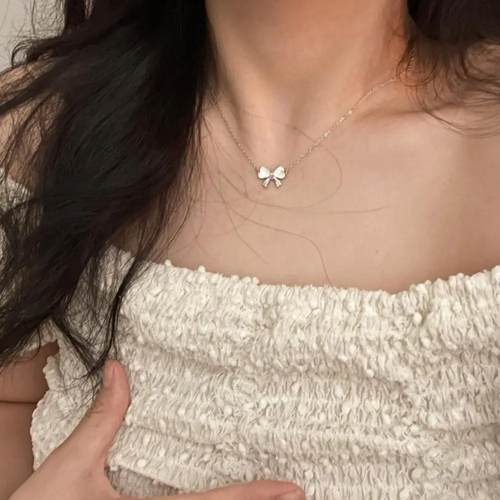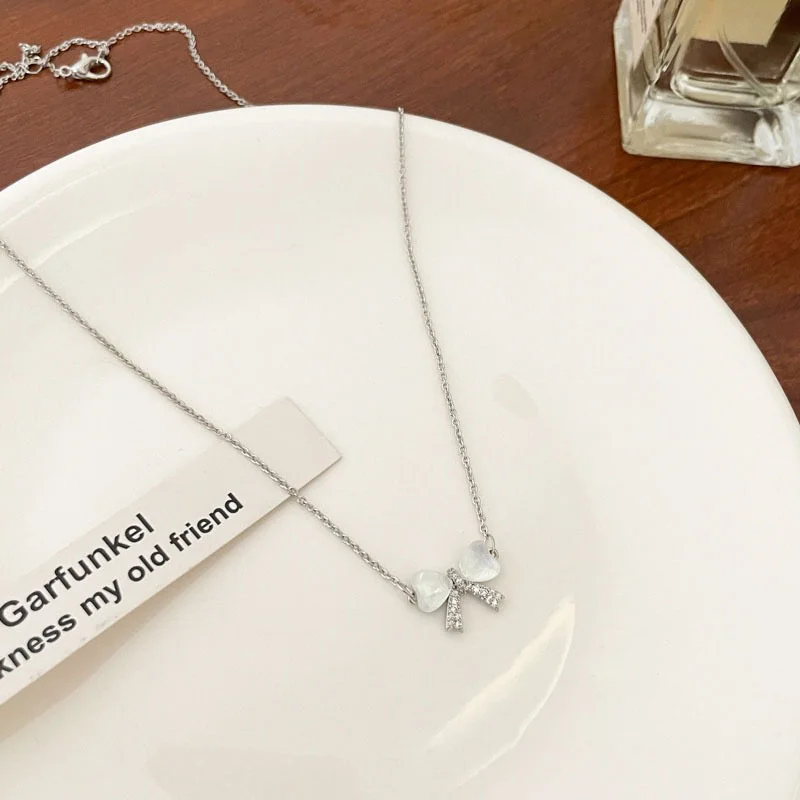 Minimalist Opal Bow Bowknot Pendant Clavicle Necklace