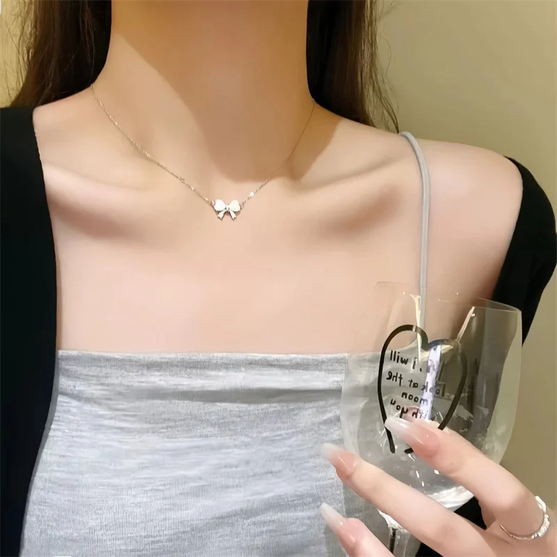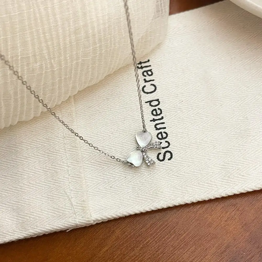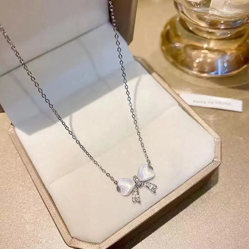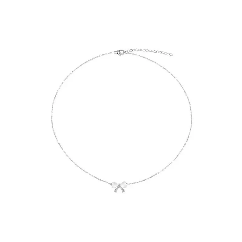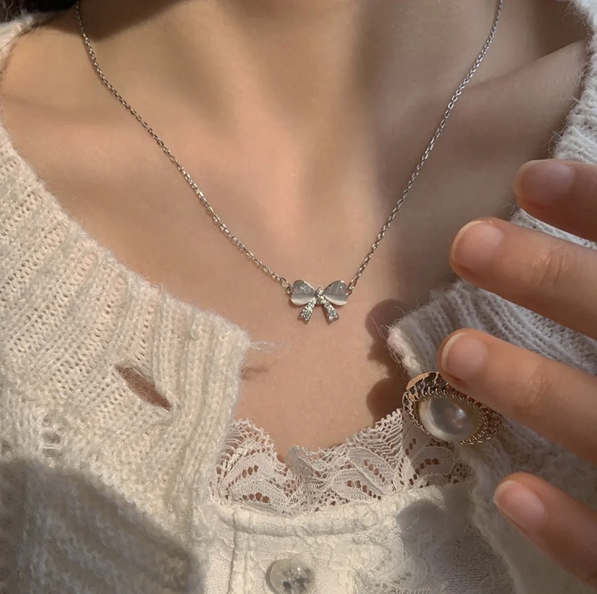 Minimalist Opal Bow Bowknot Pendant Clavicle Necklace