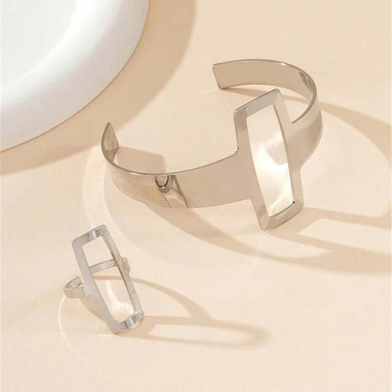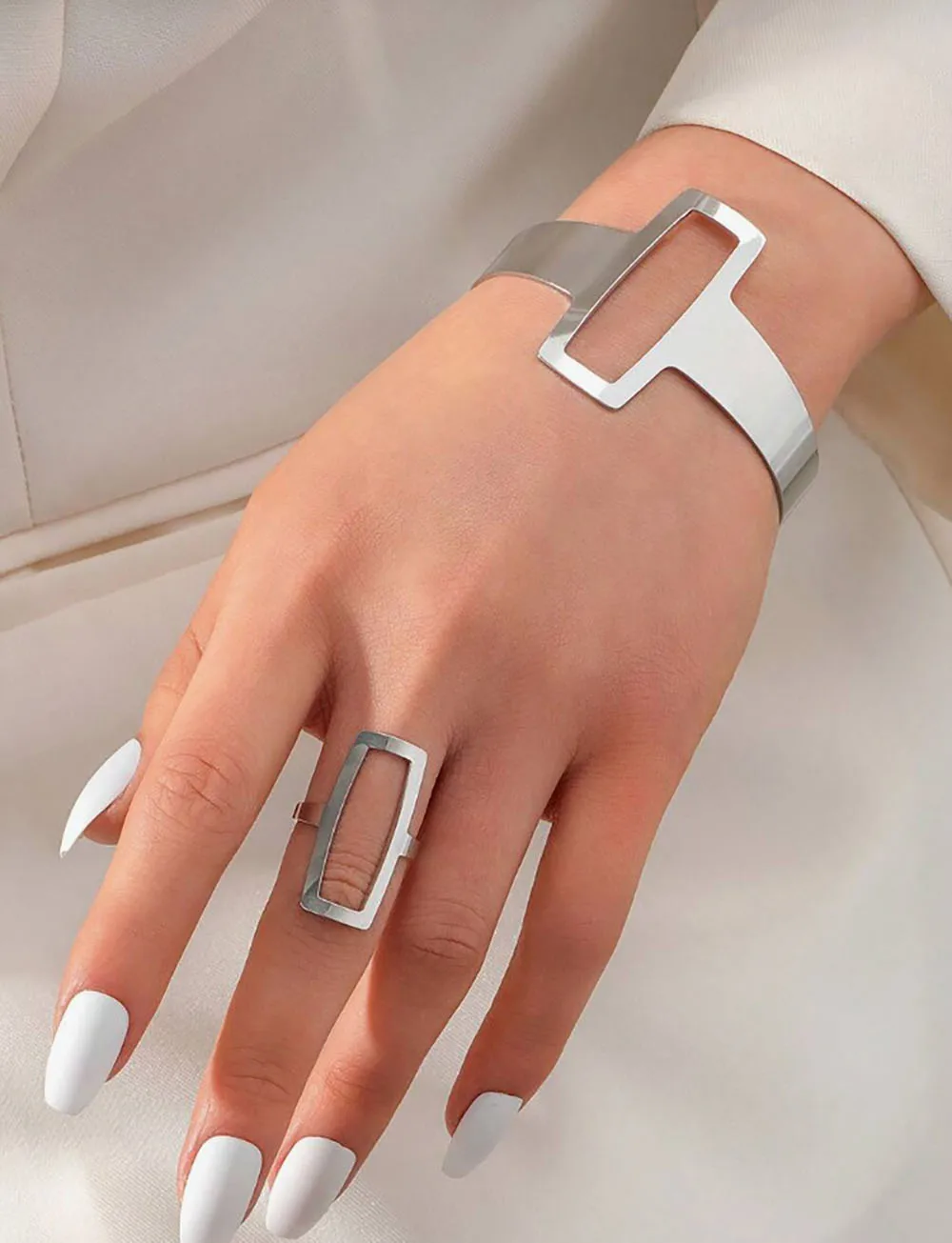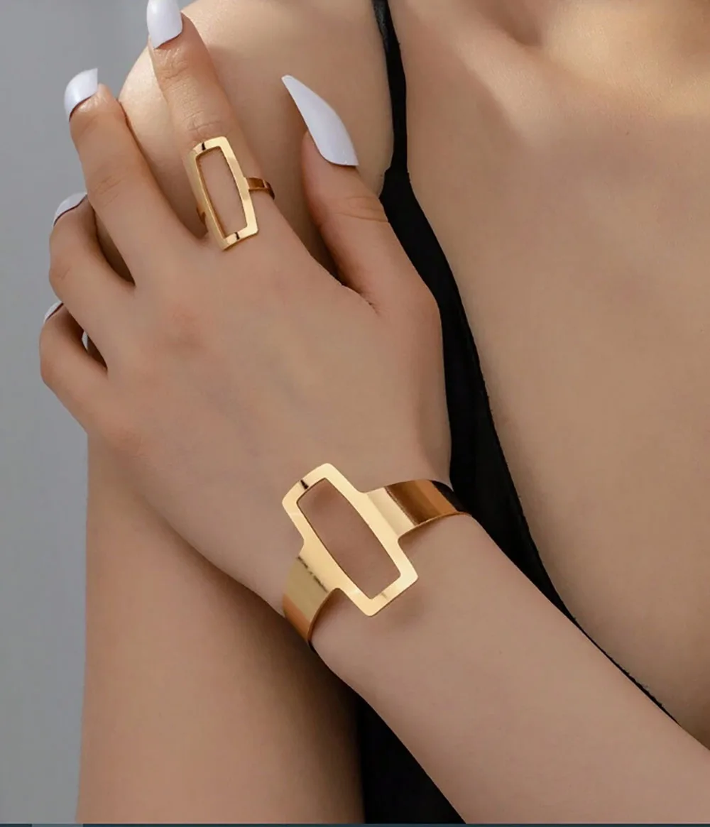 The vintage Bohemian style bangle and ring set was collected from my area Post Office this afternoon. The bangle and its ring are gorgeous and stylish as per the description. The bangle is lightweight and resizeable. It can fit different slim wrists. The ring is also lightweight and resizeable. It can also fit any of the fingers. I am happy with my order, and I recommend it.