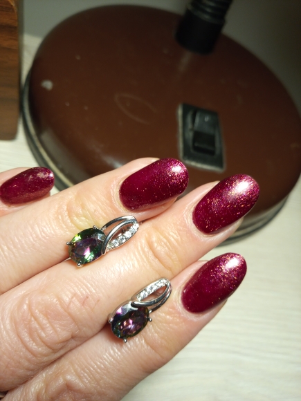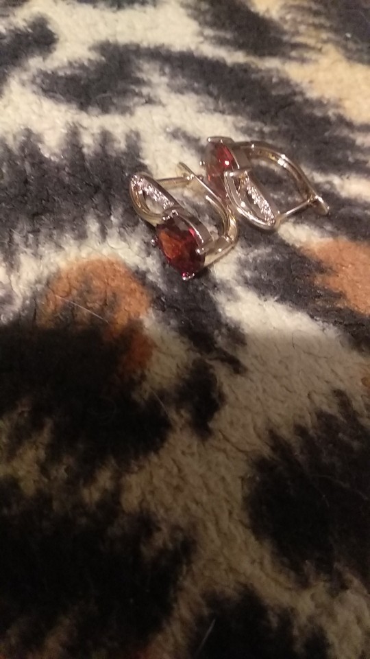Very beautiful earrings, the photo doesn't capture the full sparkle of the stones. Delivery is fast, they look expensive, like it's rose gold. Thanks to the seller.
