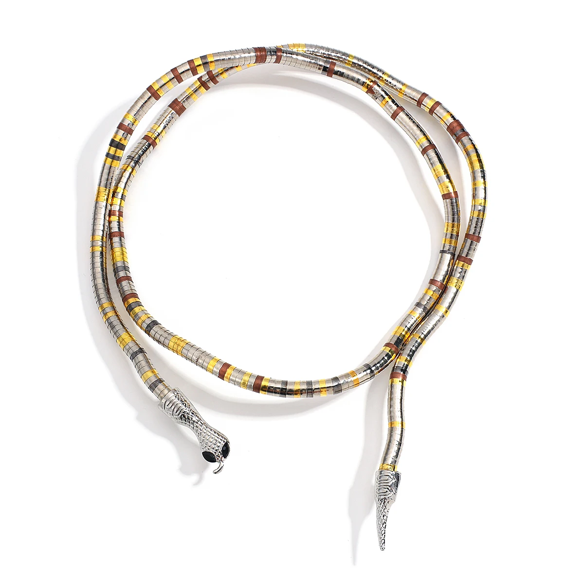 The snake necklace is not carefully made. The glue on the head of the snake is visible. Expected to be more spectacular.
