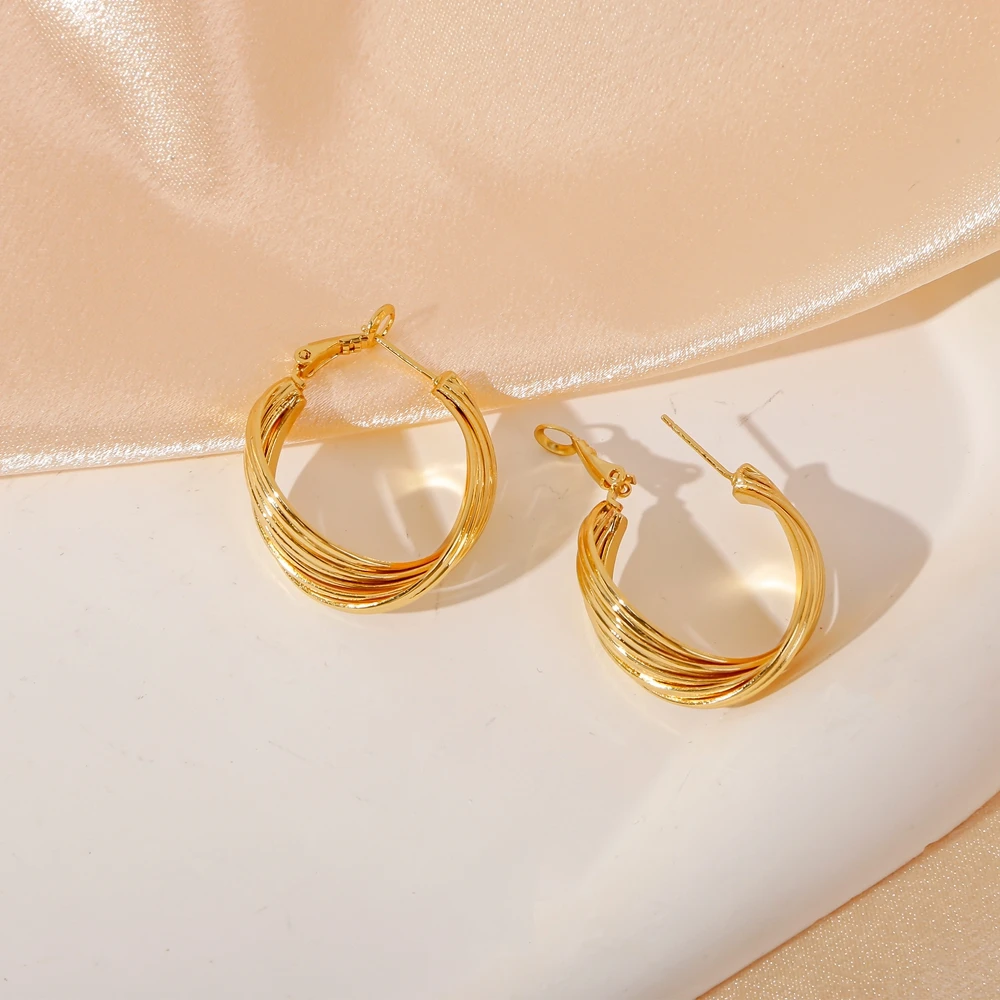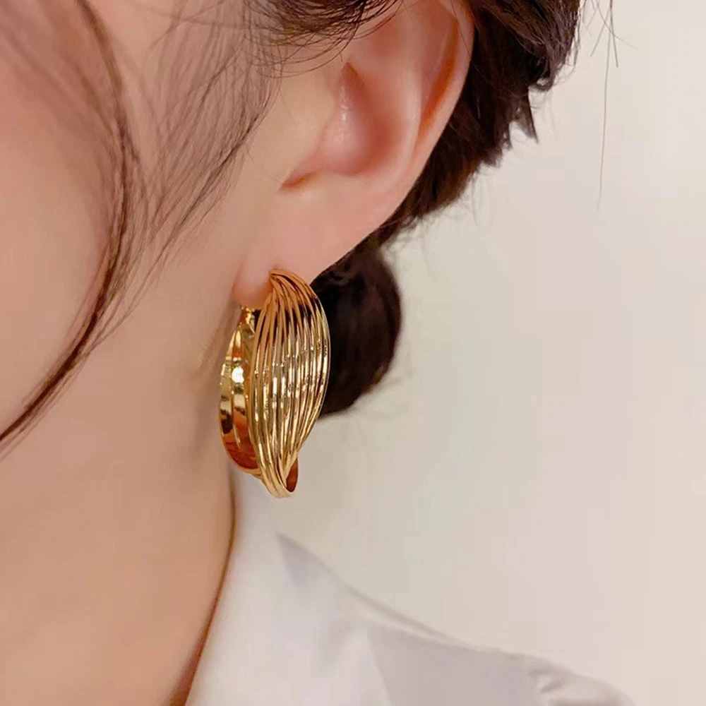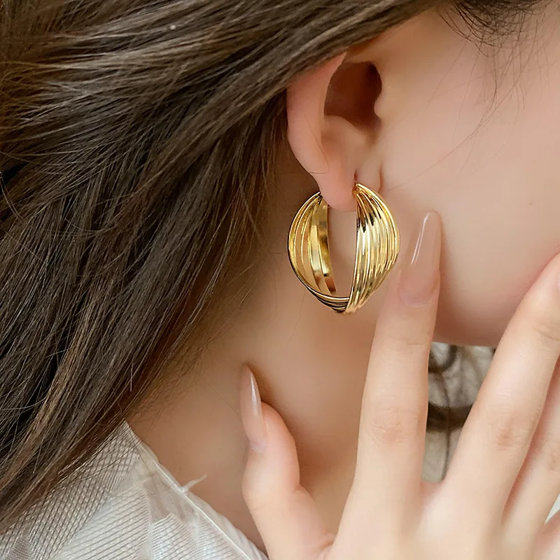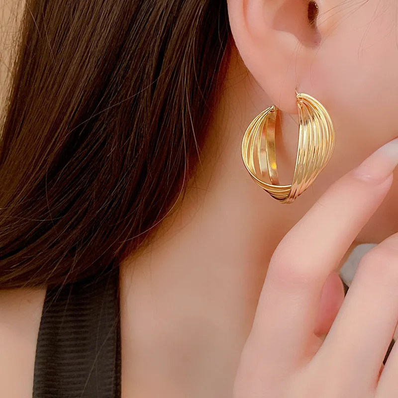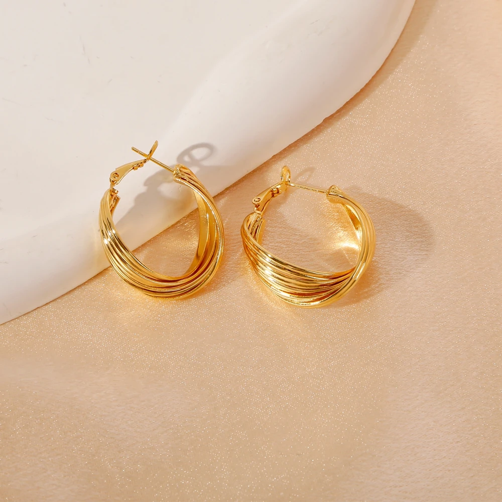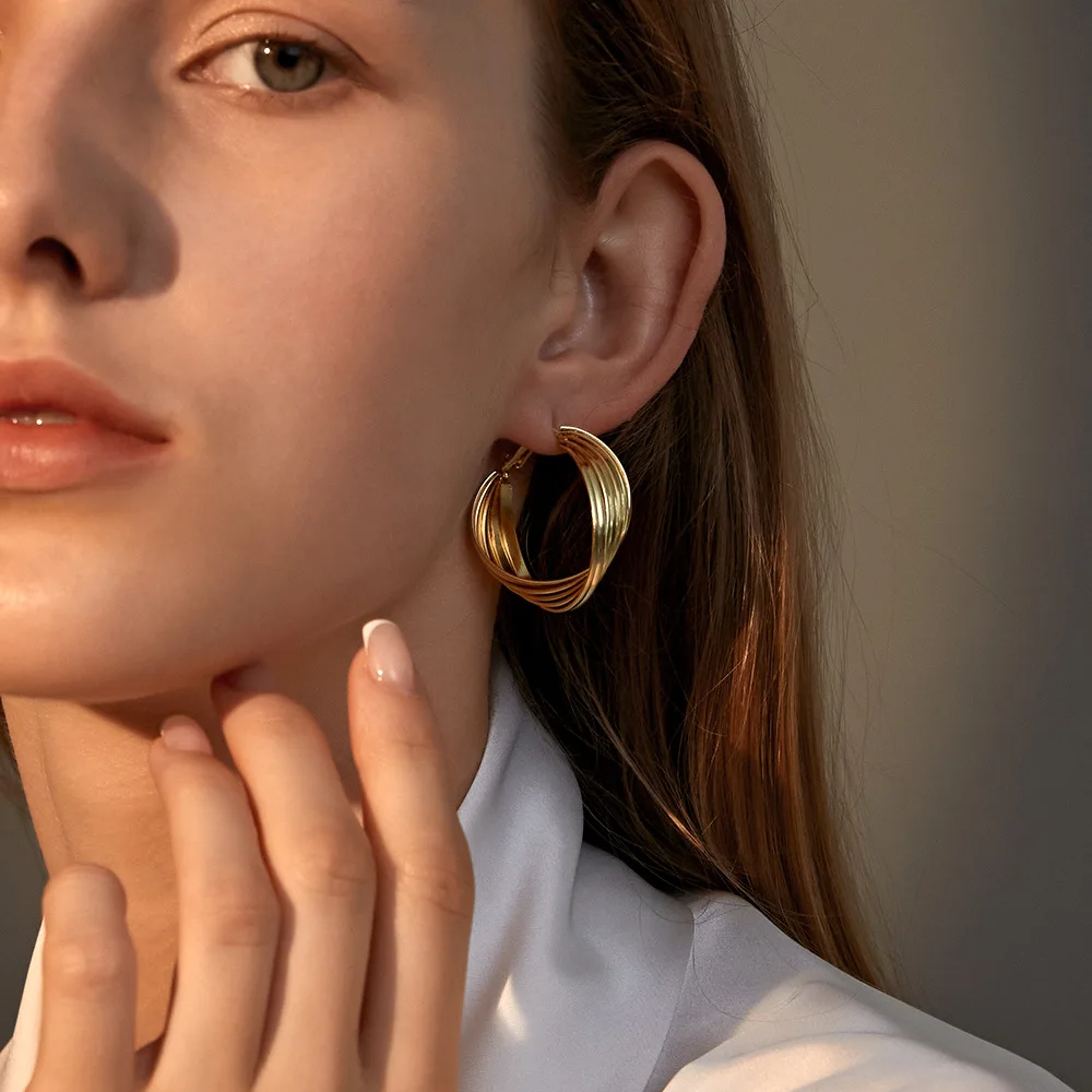 Multilayer Twisted Swirls Circular Round Hoop Earrings