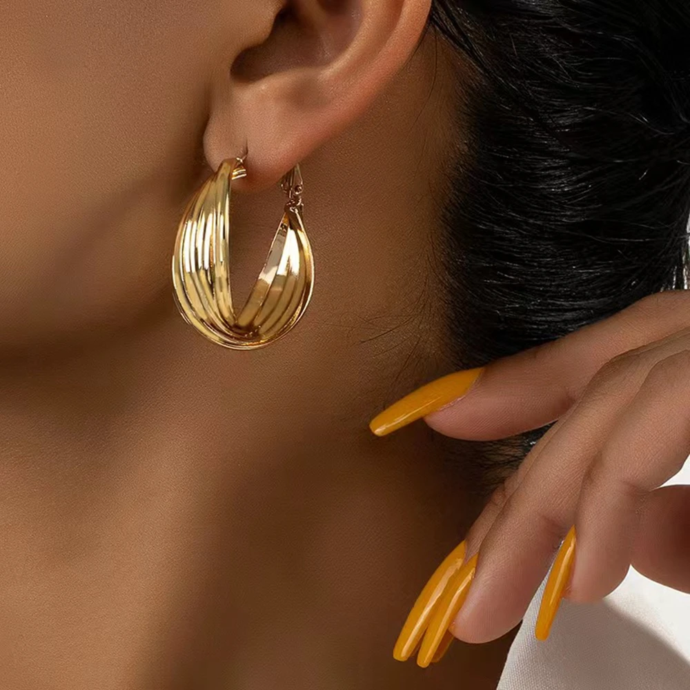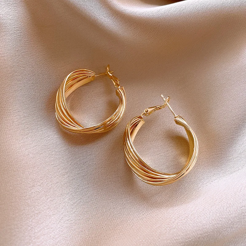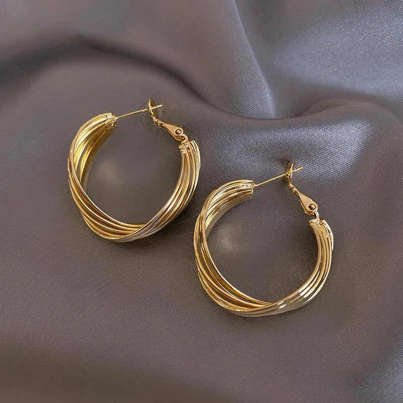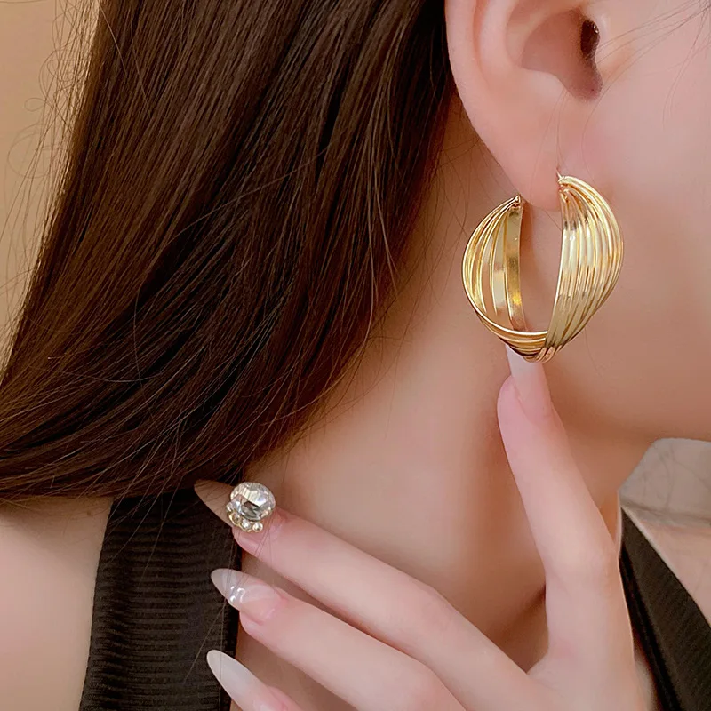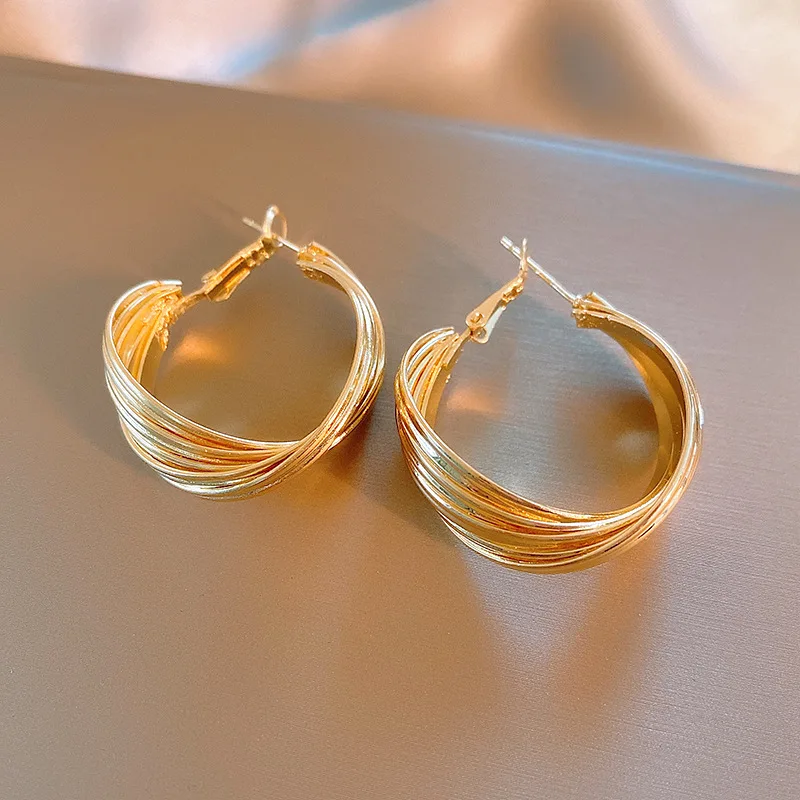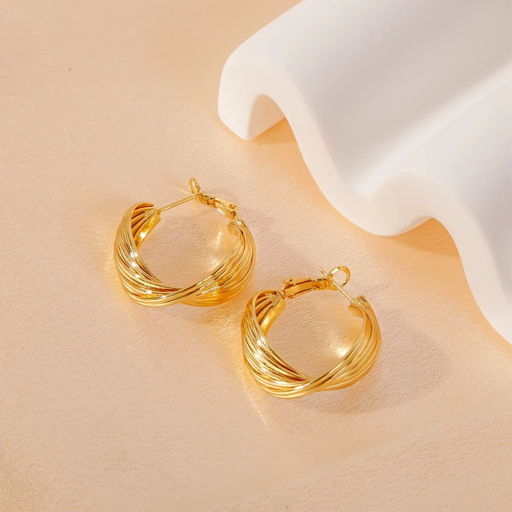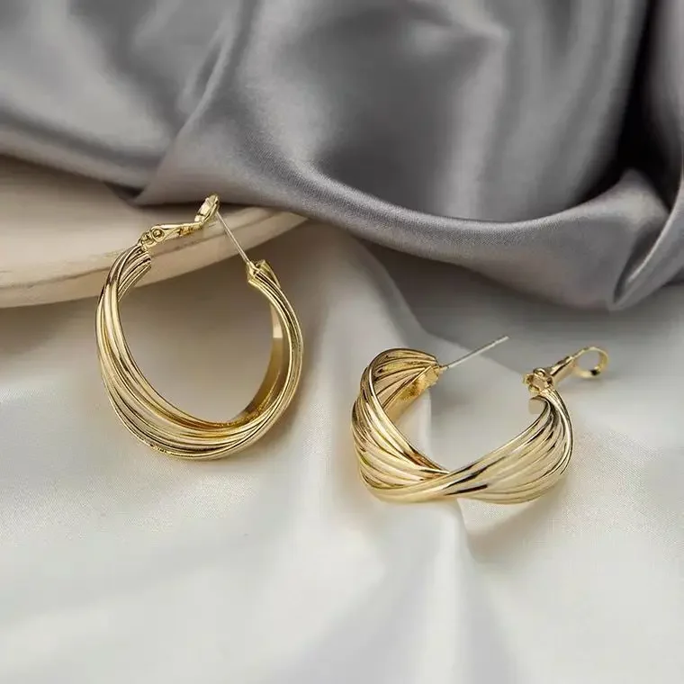 Multilayer Twisted Swirls Circular Round Hoop Earrings