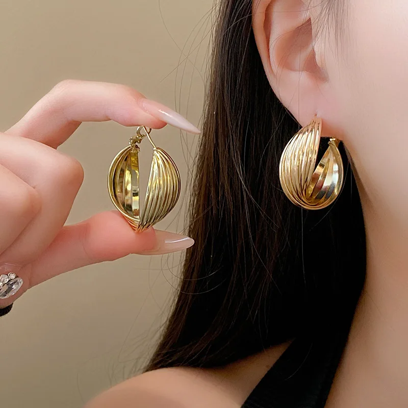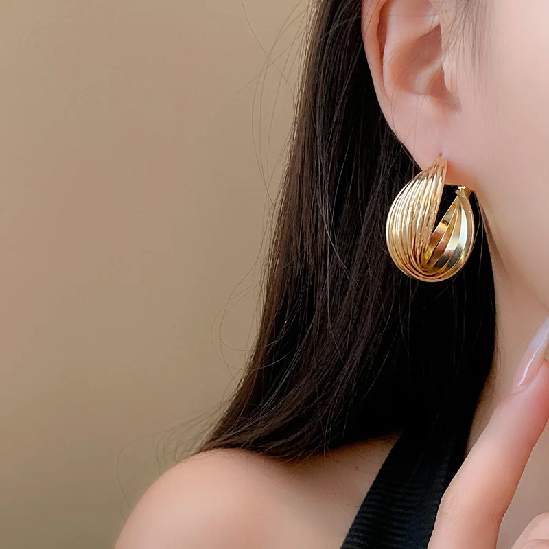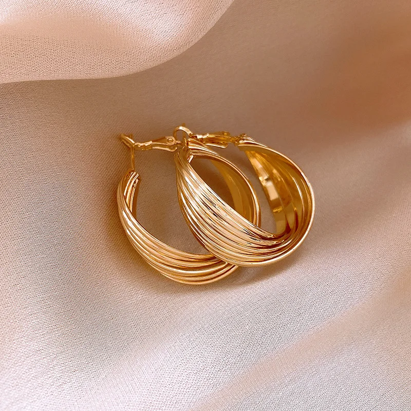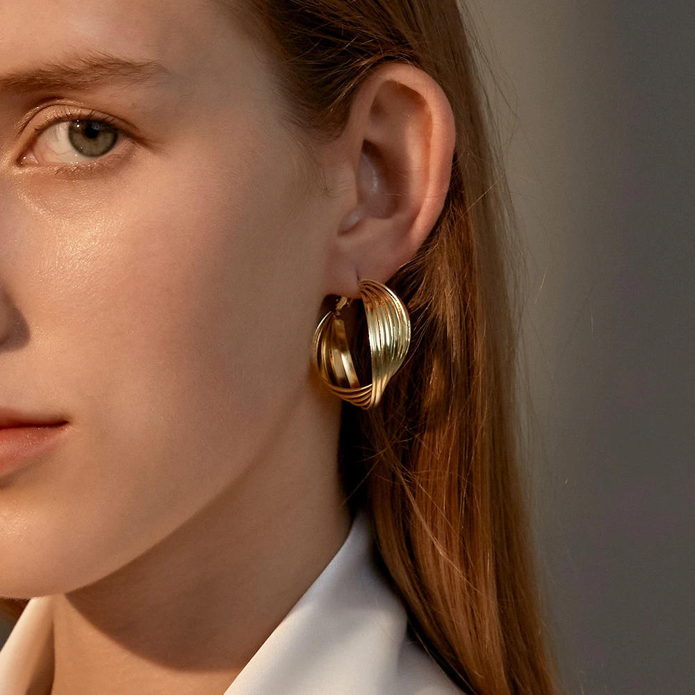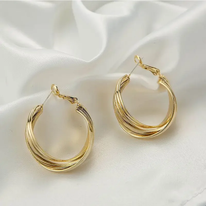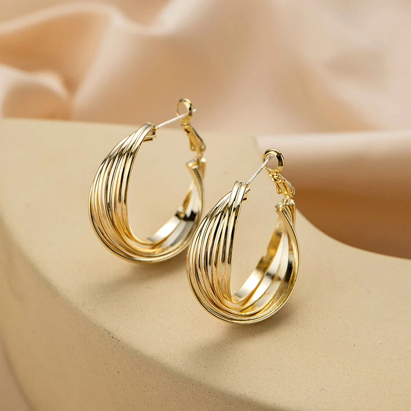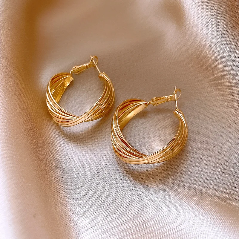 Multilayer Twisted Swirls Circular Round Hoop Earrings