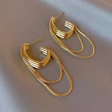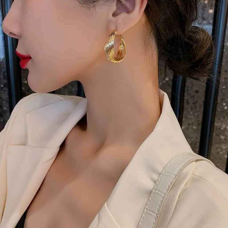Details: Make a statement with these glamorous multilayered twisted c-shaped hoop earrings. The intricate design of multiple circular c-shaped intertwined hoops creates a bold yet elegant look that catches the light beautifully. At the same time, the lustrous gold-tone finish adds a touch of luxury and sophistication, making them a versatile accessory for any outfit. Perfect for casual and formal occasions, these earrings are a must-have for any jewelry lover.