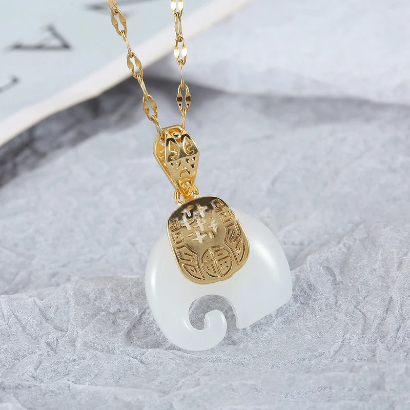 Details: Add a touch of serenity and embrace the timeless beauty of nature with this Natural Hetian Jade Elephant Pendant Necklace. The exquisite jade carving captures the majestic essence of the elephant, making it a perfect symbol of strength and wisdom. The elegant elephant design and the calming green or white jade create a timeless piece that adds a touch of tranquility to any outfit. The detailed craftsmanship and natural jade stone make it a unique and meaningful accessory that showcases your love for wildlife.