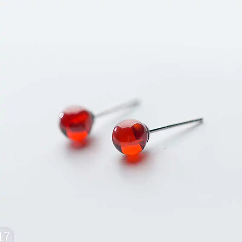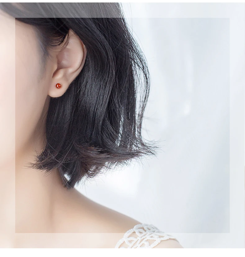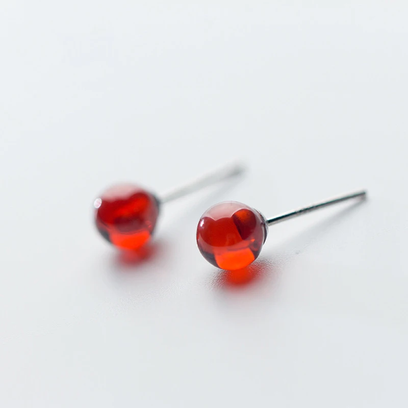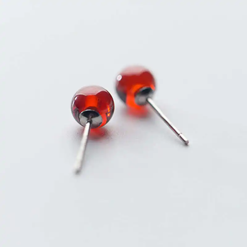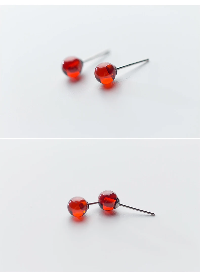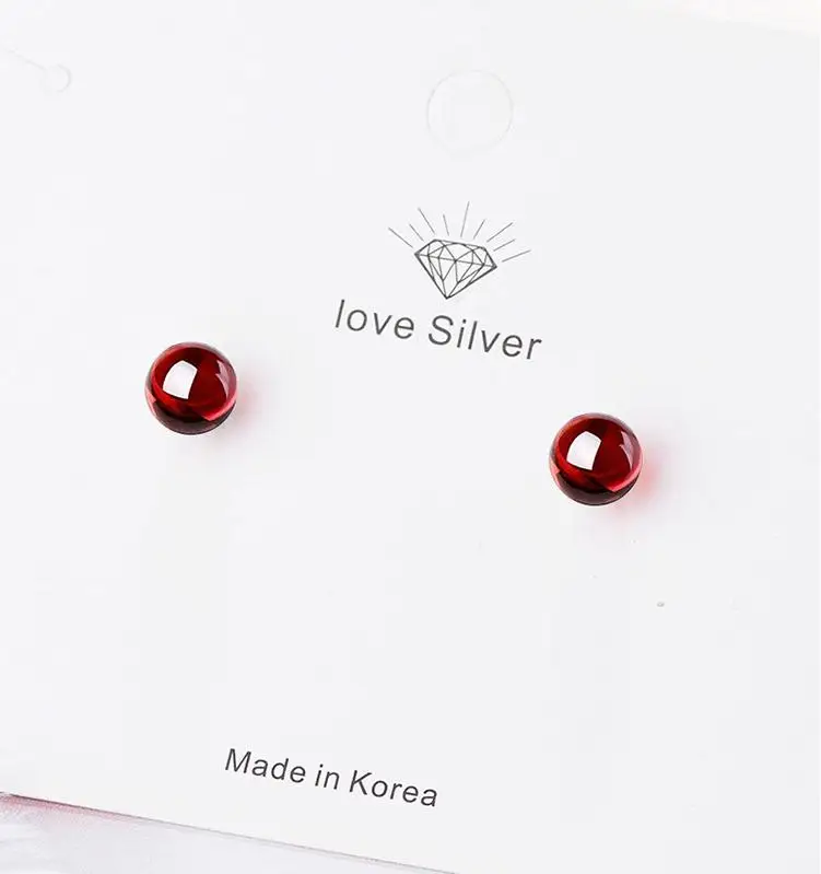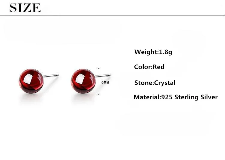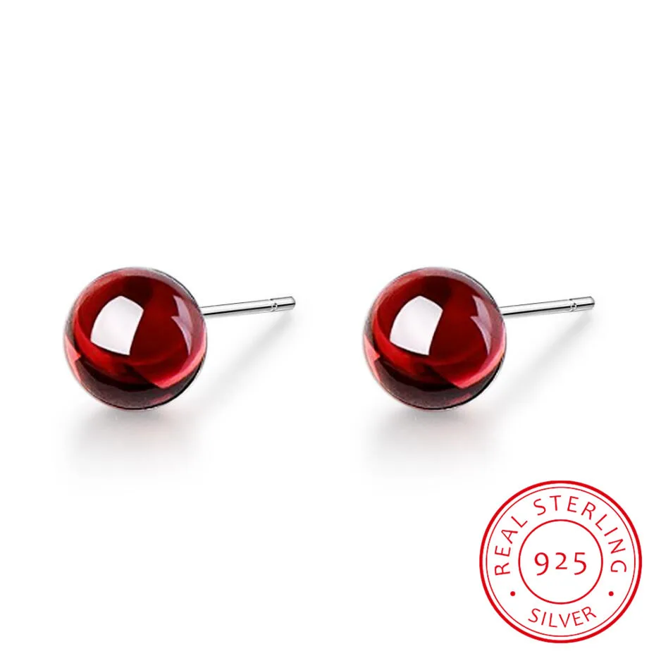 Natural Red Garnet Ball 925 Silver Needle Stud Earrings