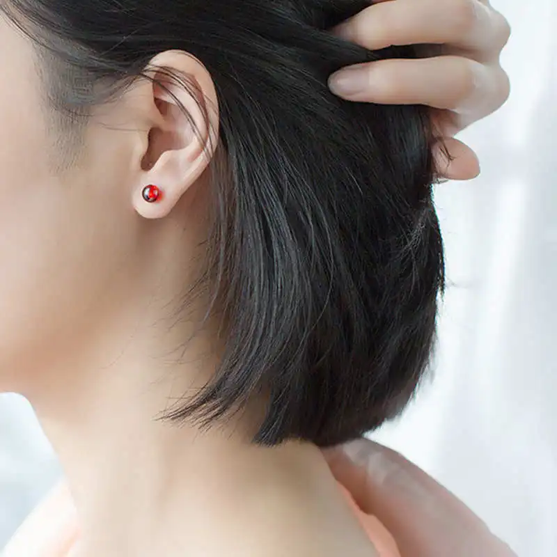 Details: Elevate your elegance with these Natural Red Garnet Ball 925 Sterling Silver Needle Stud Earrings. These exquisite earrings feature vibrant, deep red garnet gemstones, each meticulously crafted into a smooth, polished sphere. The garnet balls are securely set on 925 sterling silver needles, ensuring durability and a touch of elegance. The rich red hue of the garnet stones is beautifully complemented by the sleek, shiny silver, creating a striking contrast that is timeless and sophisticated. Perfect for adding a pop of color to any outfit, these earrings are ideal for those who appreciate fine craftsmanship and the natural beauty of gemstones.