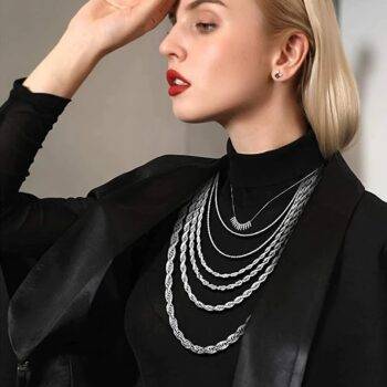 Women’s Silver Chain Necklace and Bracelet Set