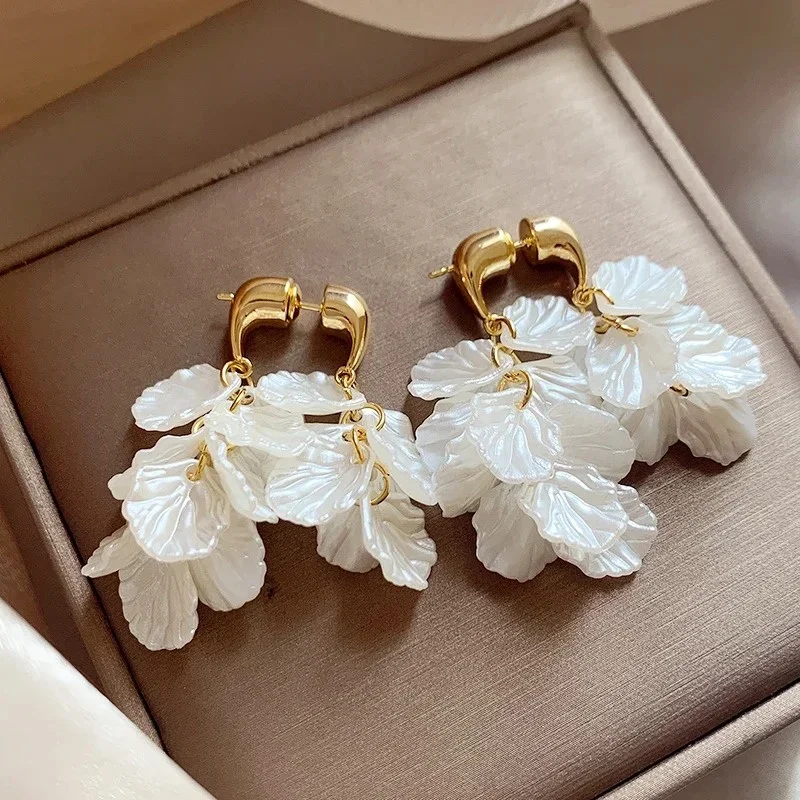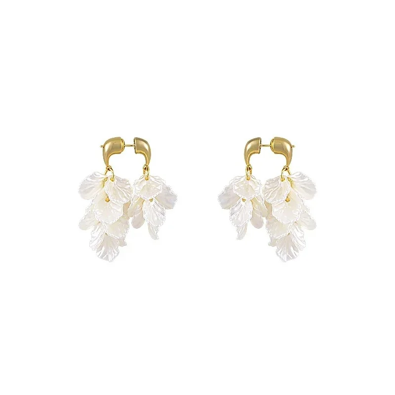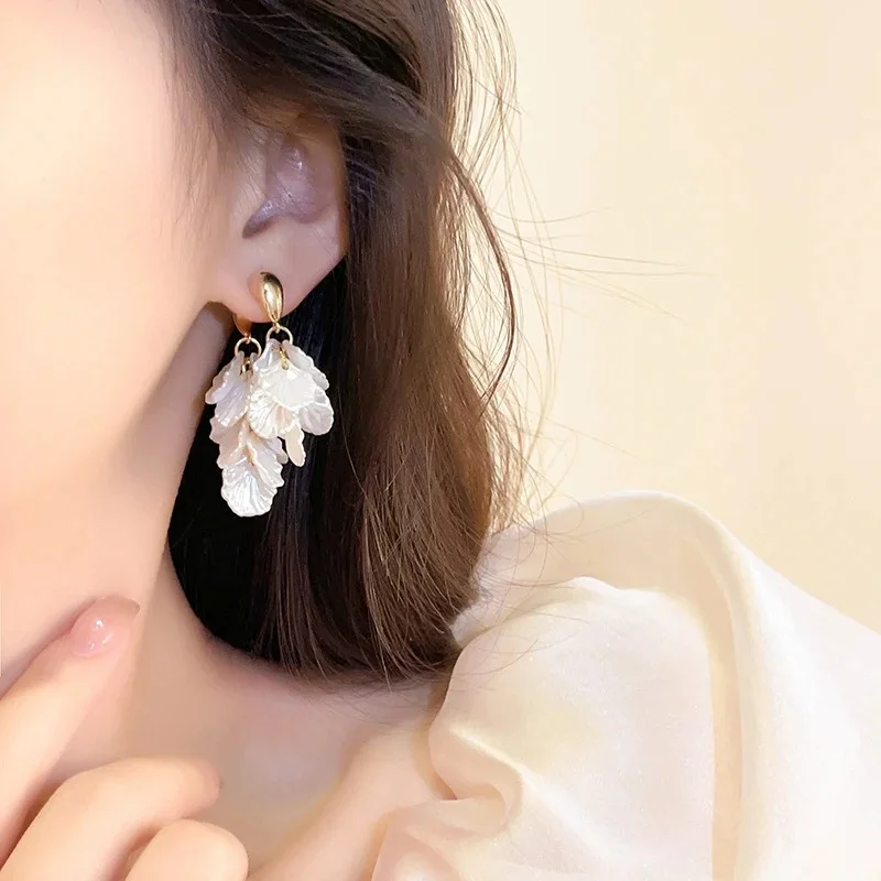 New Light Luxury Glossy Stud Earrings Women Korean Simple White Imitation Shell Flower Earrings Temperament Jewelry Gifts
