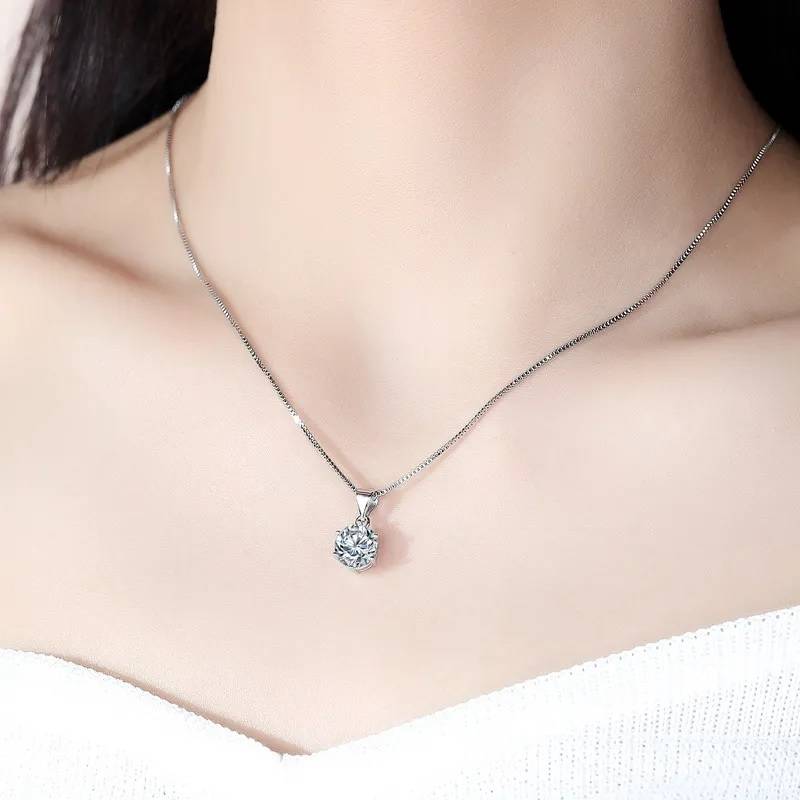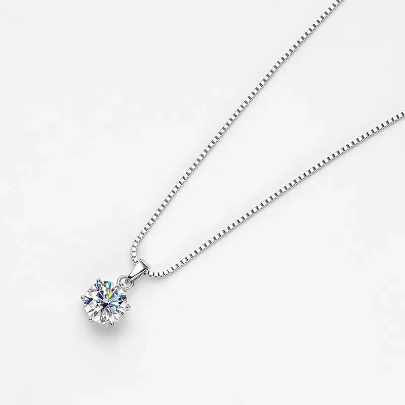 absolutely gorgeous! I love that it comes with a box chain, typical moissanite sparkle! nicely packaged, very quick delivery! fantastic deal.