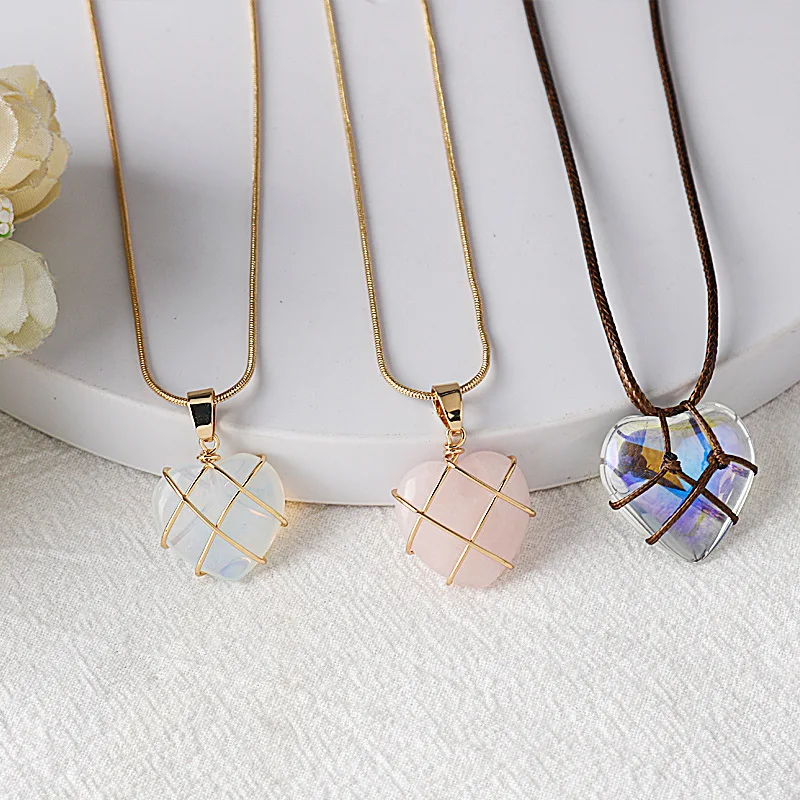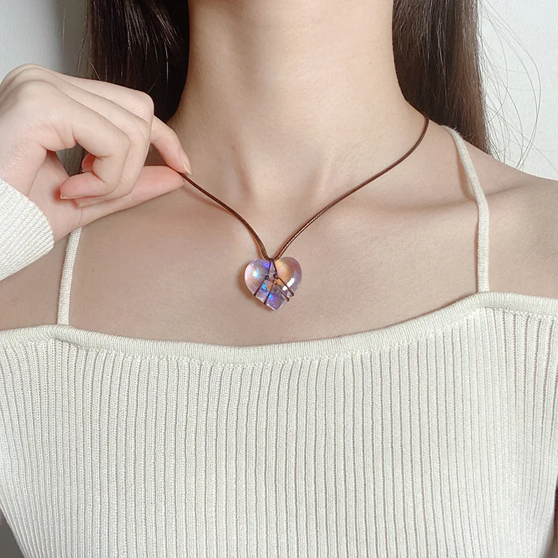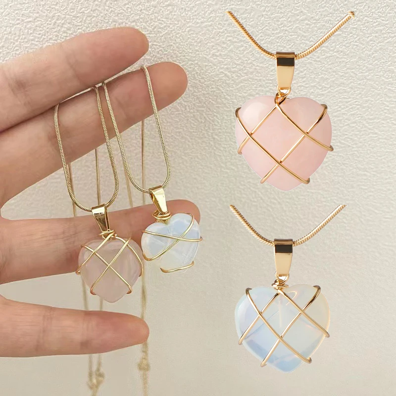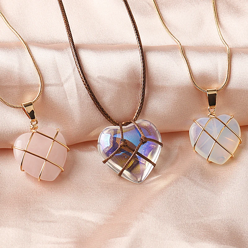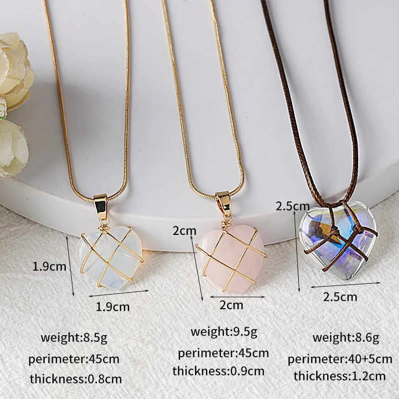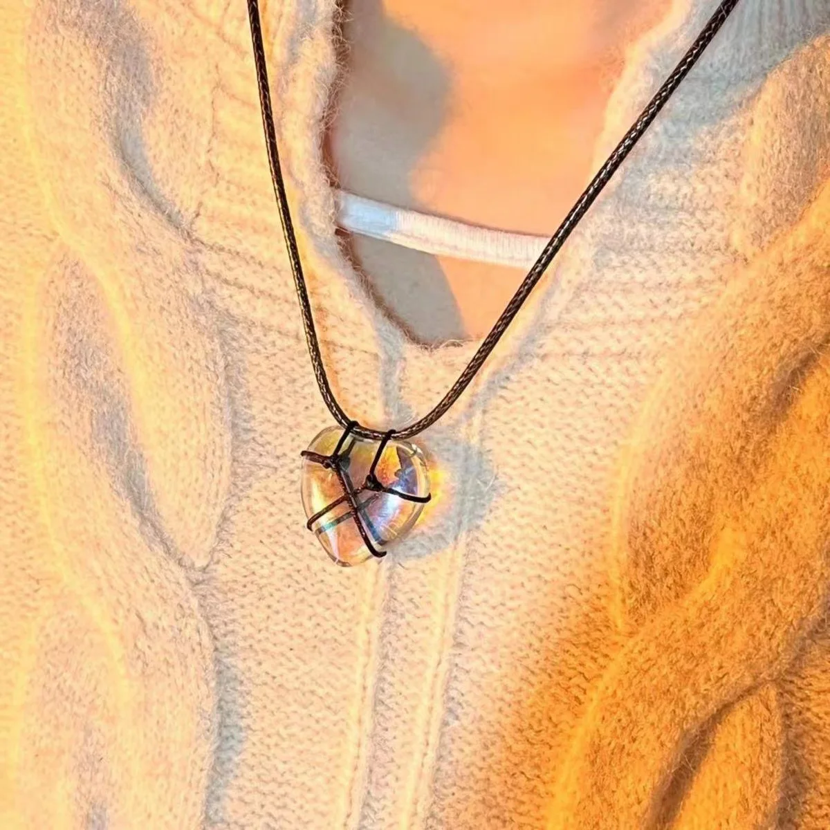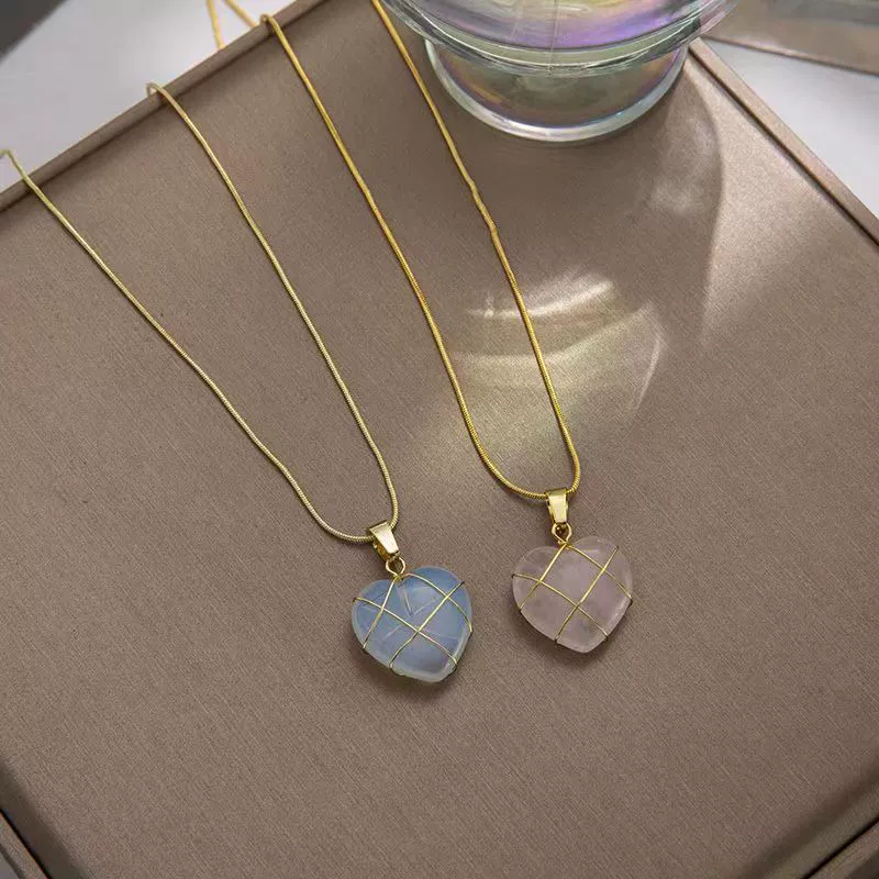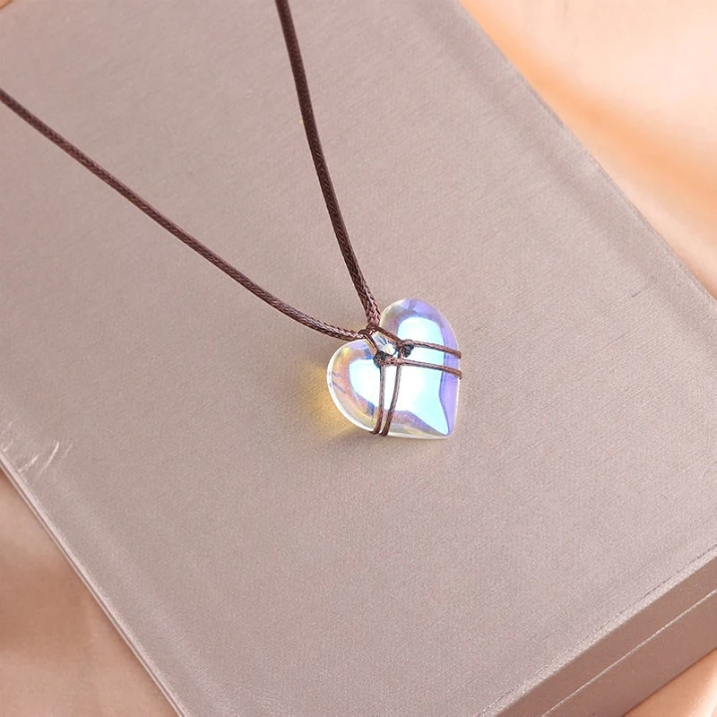 Details: From milky white to shimmering multicolor, these Opal Heart Pendants bring a spectrum of beauty to your neckline. These Opal Heart Pendant Collarbone Chain Necklaces showcase heart-shaped opal stones that radiate a soft iridescent glow. Set on delicate chains or a cozy rope cord, each necklace is a timeless symbol of love and grace, perfect for everyday wear or special moments. Featuring opals with an ethereal glow and set in a chic collarbone-length design, these necklaces add a whimsical yet sophisticated touch to any outfit.