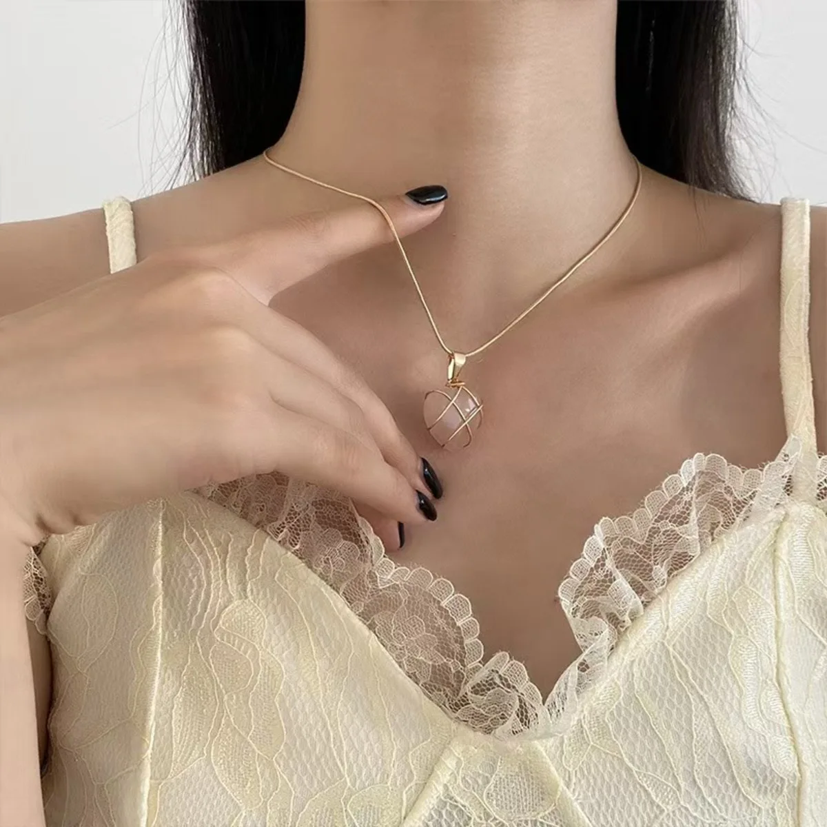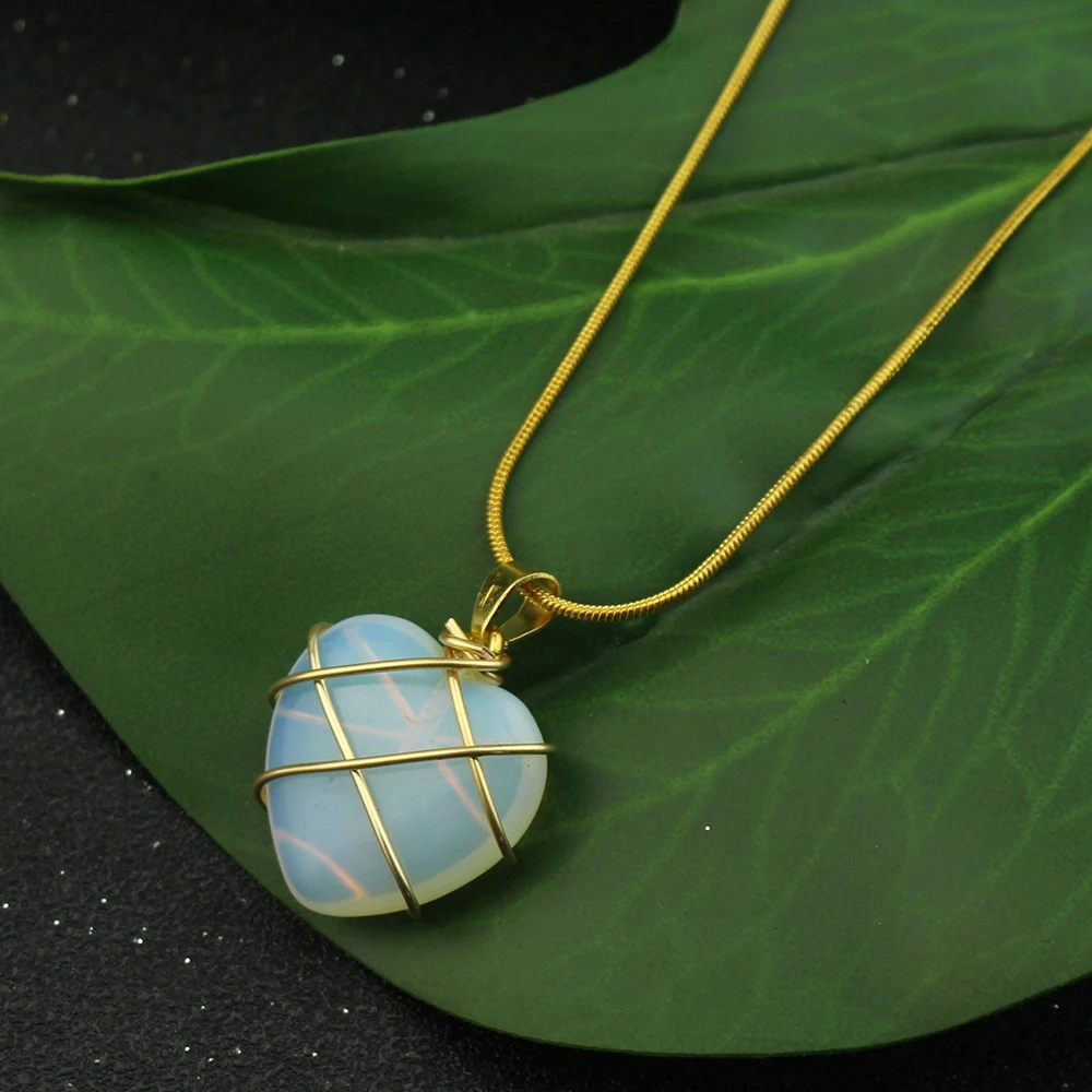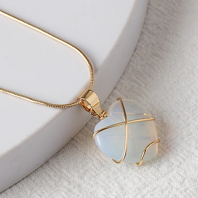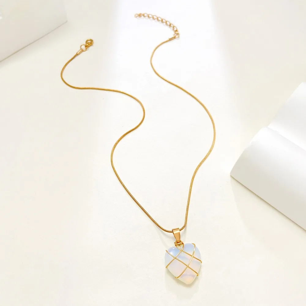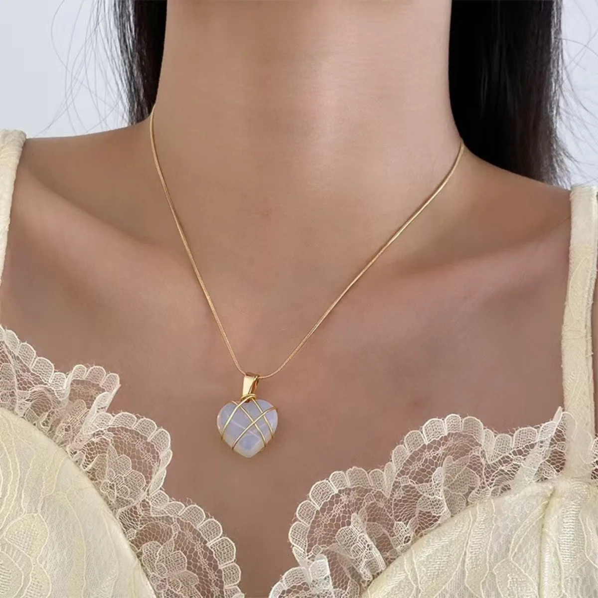 Opal Heart Pendant Collarbone Chain Necklace - Jewelry Reimagine