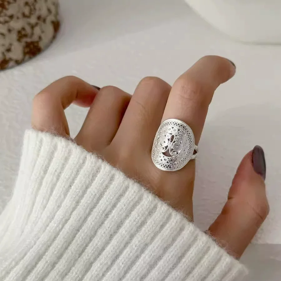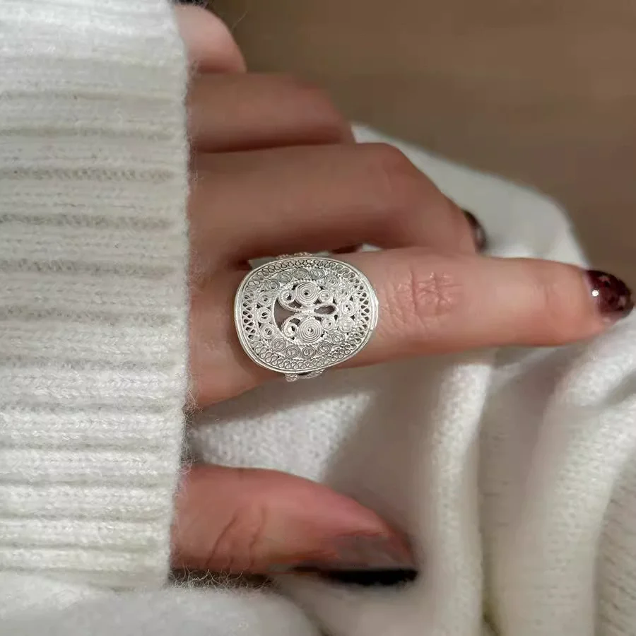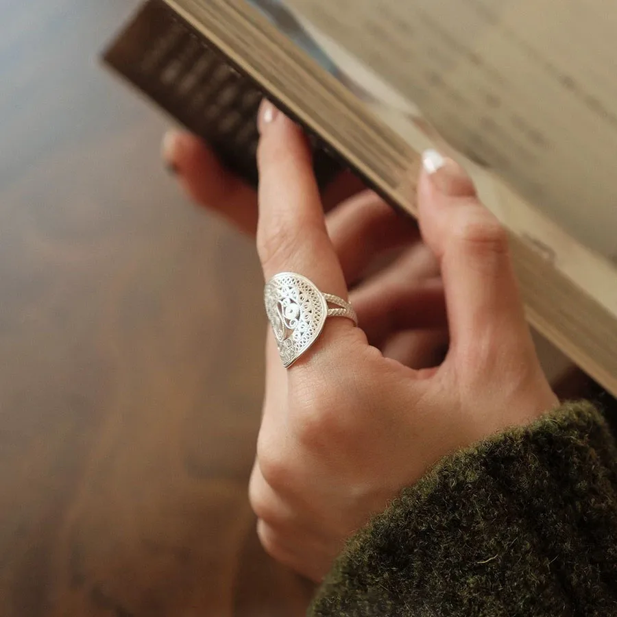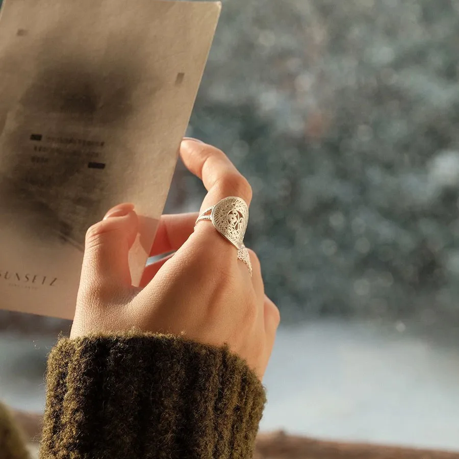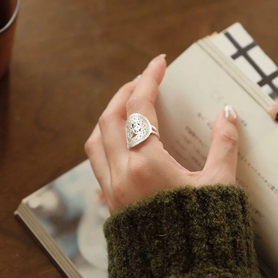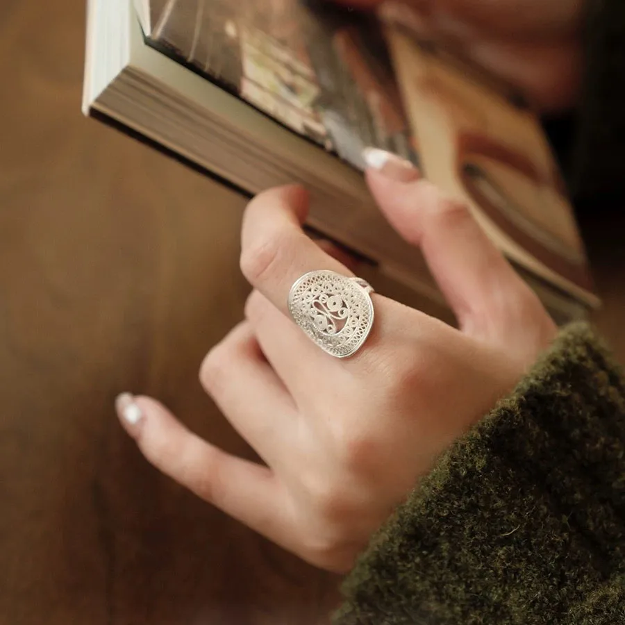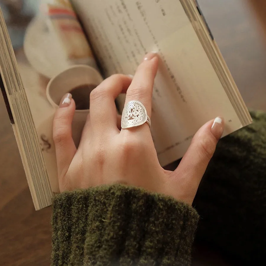 Details: Graceful and enchanting, the Ornate Butterfly Oval Cocktail Open Ring is a celebration of artistry and elegance. Handcrafted in luminous silver, its intricate filigree swirls and loops form a delicate butterfly motif that seems to flutter across your finger. The oval silhouette adds balance and sophistication, while the open design gives it a modern, airy feel. This ring is more than an accessory — it’s a statement of individuality. The butterfly, a timeless symbol of transformation and freedom, makes this piece perfect for those who embrace change and beauty in every detail. Whether worn at a cocktail party or as a daily signature piece, it radiates charm and confidence.