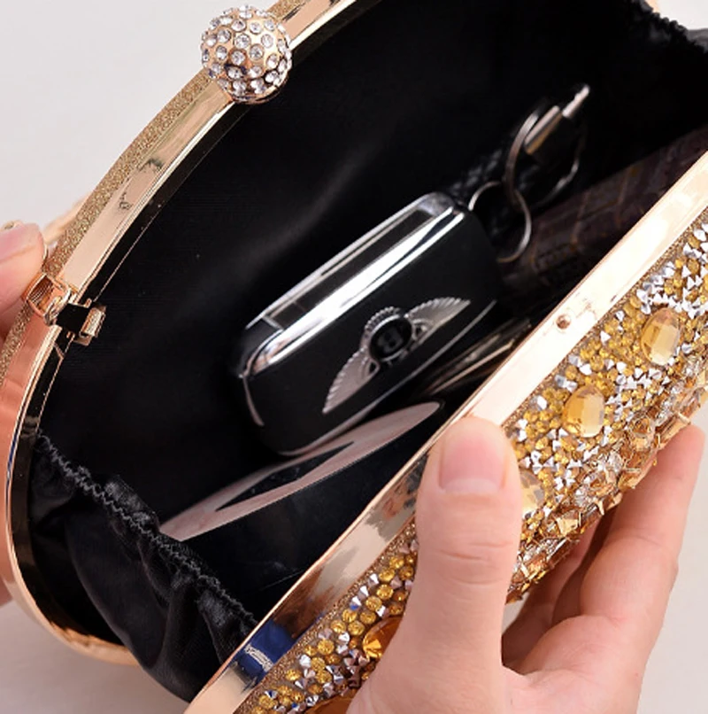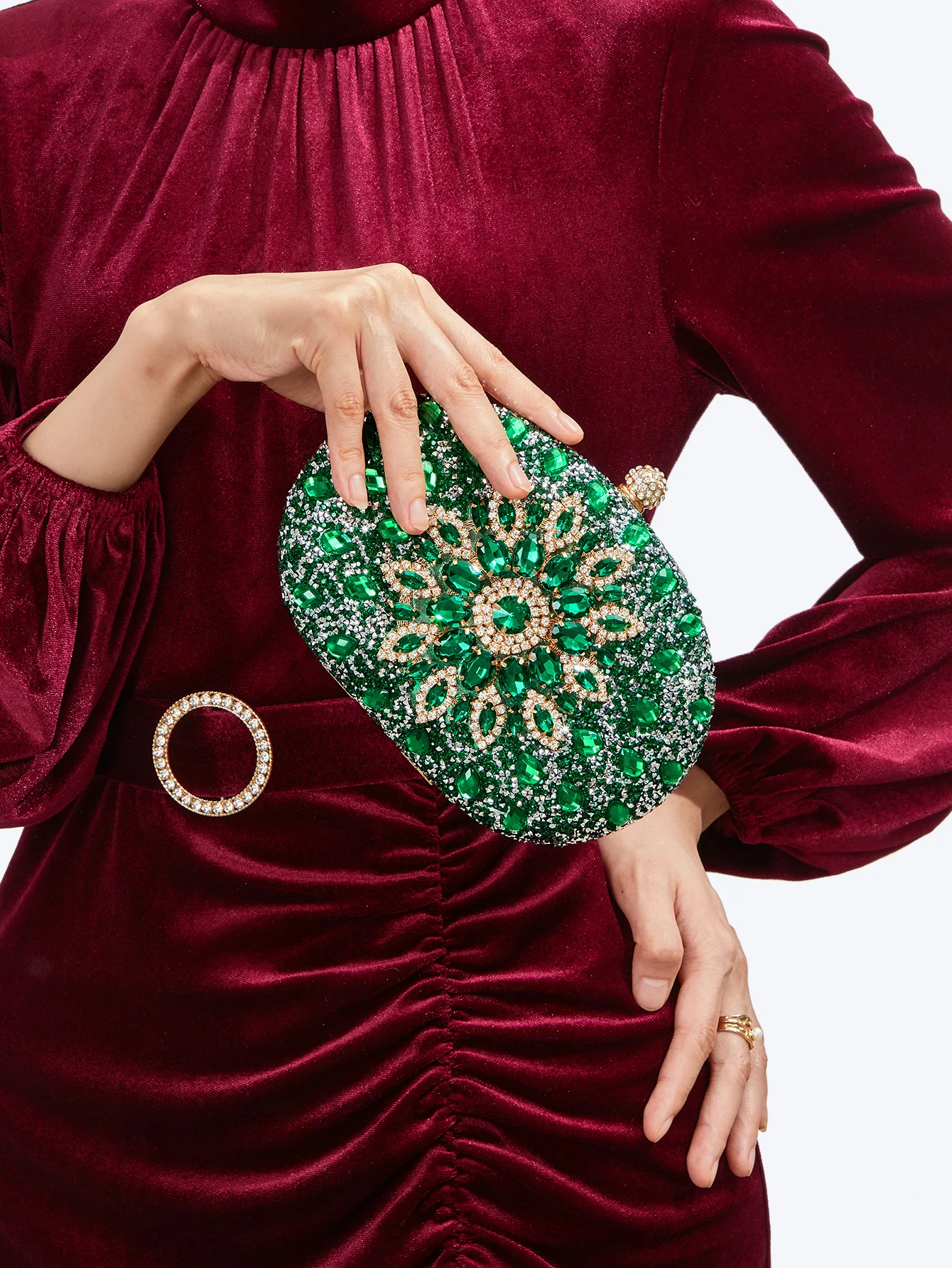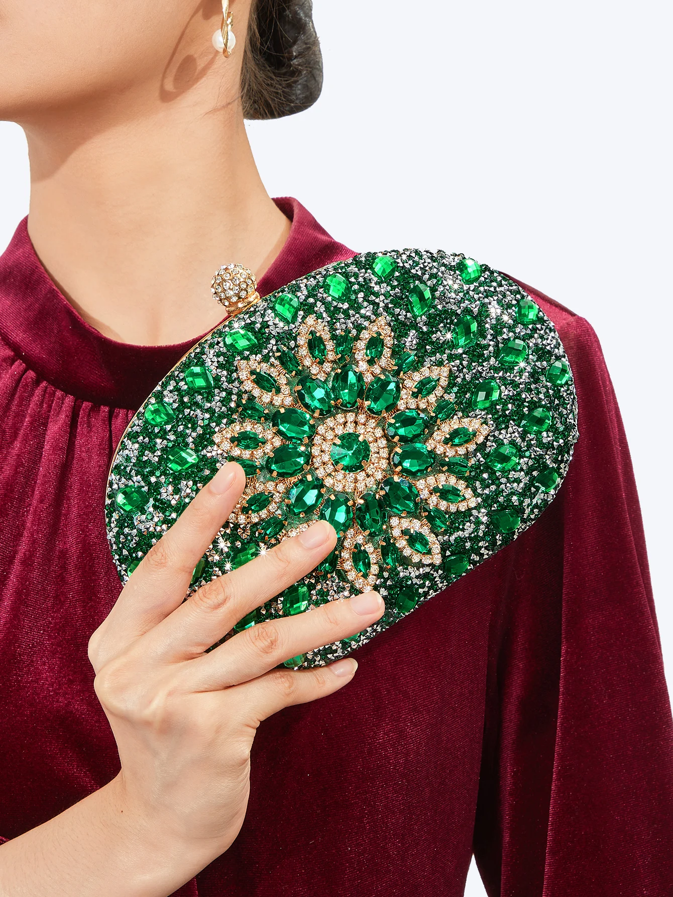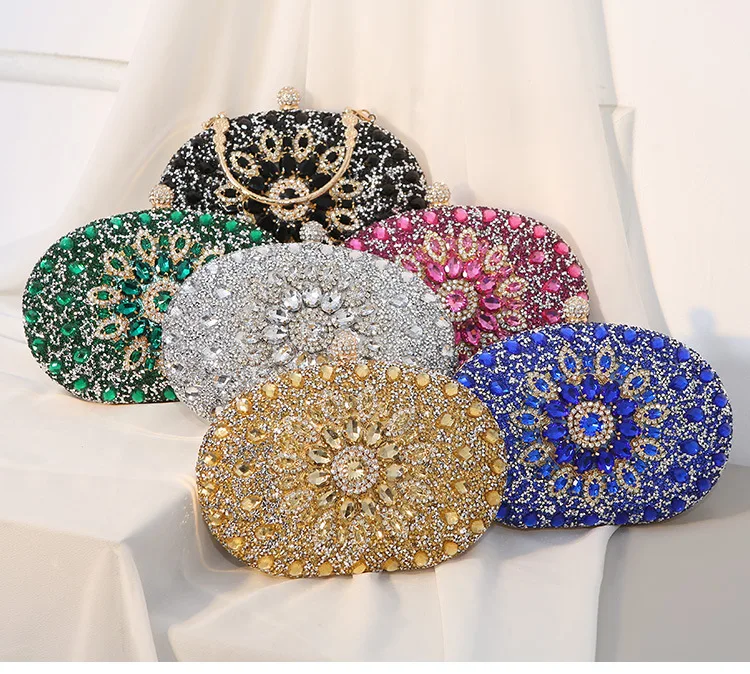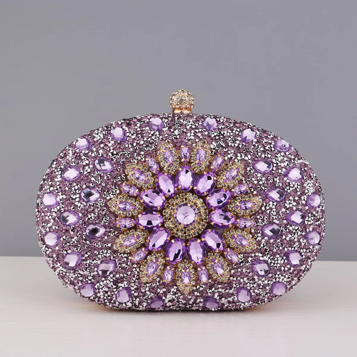 Oval Flower Floral Rhinestone Clutch Crossbody Handbag
