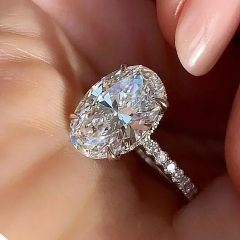 Oval Shape Moissanite Gemstone Engagement Ring Rings Wedding & Engagement Jewelry Women Jewelry