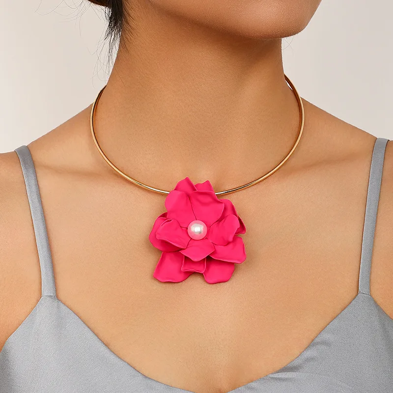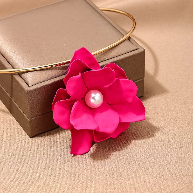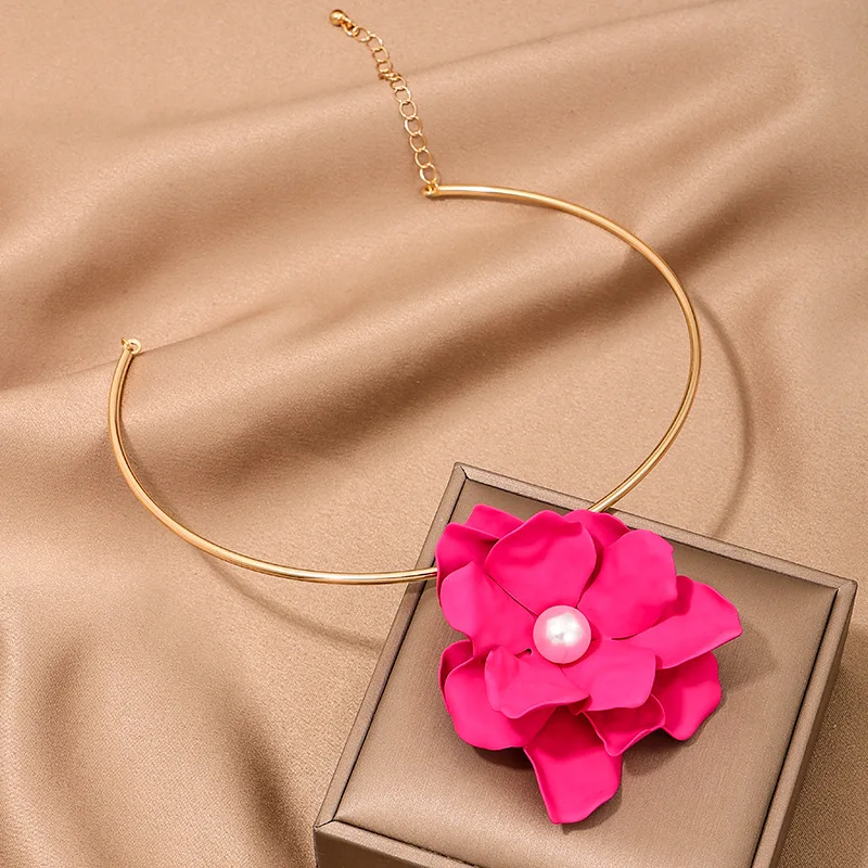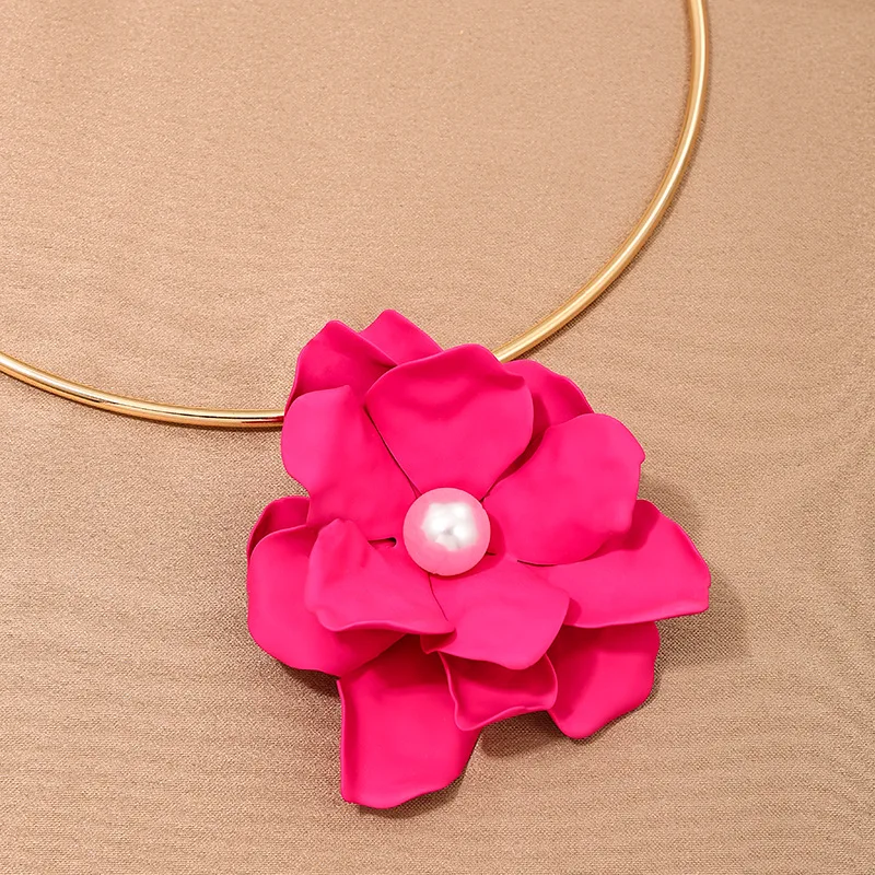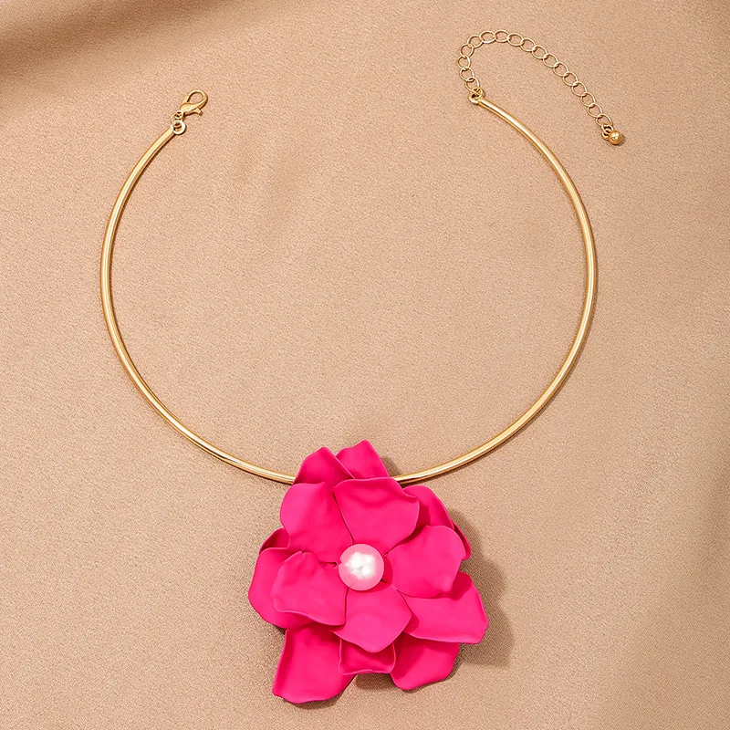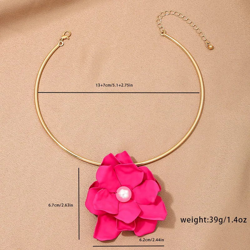 Details: Embrace elegance with this Large Pink Flower Faux Pearl Pendant Golden Collar Necklace. This exquisite piece features a beautifully crafted pink flower pendant, adorned with a lustrous faux pearl at its center. The luxurious gold-tone collar adds a touch of sophistication, making this necklace perfect for both special occasions and everyday wear. The adjustable chain ensures a comfortable fit, allowing you to showcase this stunning accessory with any outfit. This stunning piece combines the beauty of a delicate pink flower with the timeless charm of a faux pearl, all set against a luxurious gold-tone collar.