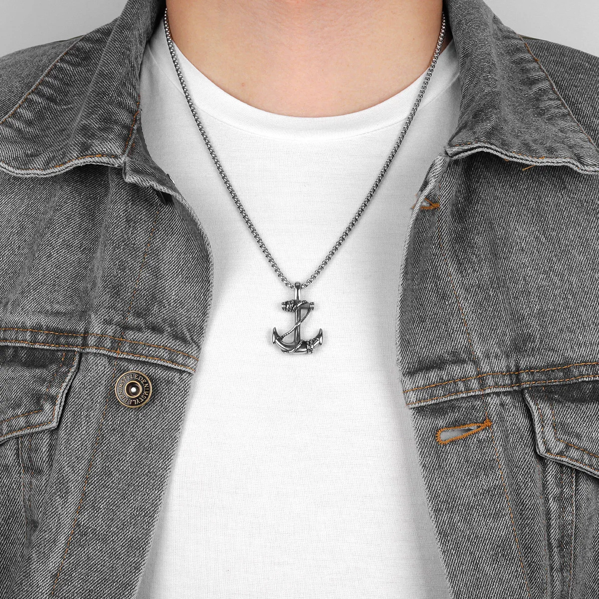 Details: Forge your own path with a symbol that’s stood the test of time. This anchor pendant necklace — crafted from premium 316L stainless steel—is more than just an accessory. It’s a declaration of resilience, adventure, and grounded masculinity. Available in five commanding finishes — Rose Gold, Silver, Black, Iridescent, and Gold — each pendant is meticulously designed with a rope-wrapped detail that evokes the spirit of the sea and the strength of the sailor. The matching chain ensures a seamless, polished look, whether you’re dressing for the boardroom or the beach. Whether you’re drawn to the classic gleam of silver or the bold edge of black, this necklace anchors your look with confidence and character. Wear it solo or stack it with other pieces—either way, it’s a conversation starter.