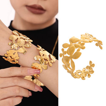 Stainless Steel Flower Bangle Bracelets For Women Luxury Irregular Wide Textured Open Bracelet New Trendy Aesthetic Jewelry Gift