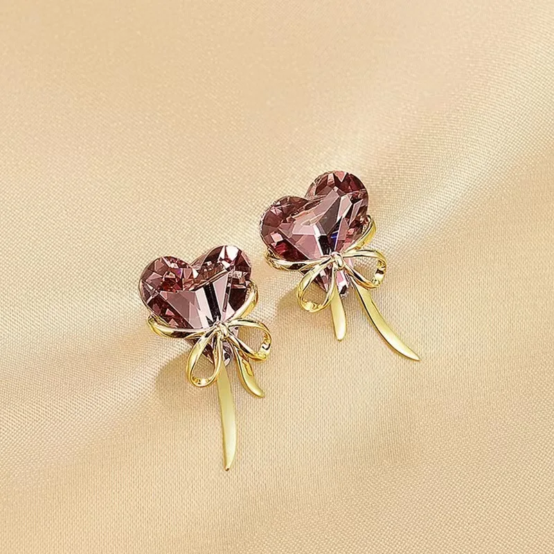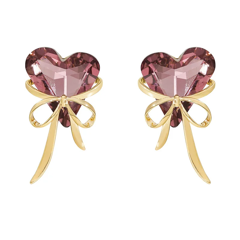 Purple Love Heart Bowknot Bow Ribbon Stud Earrings