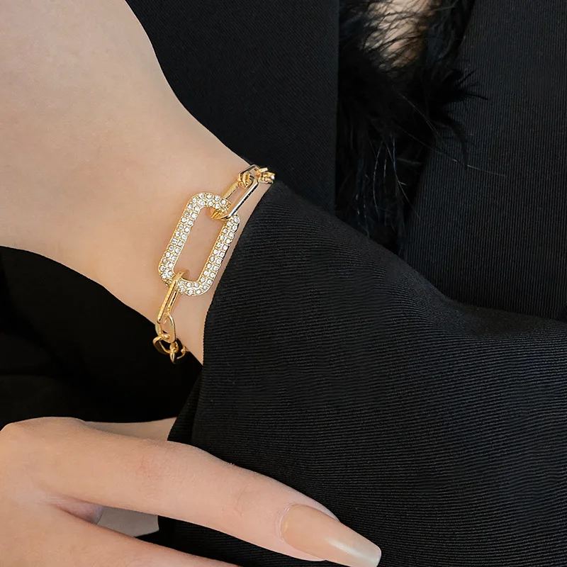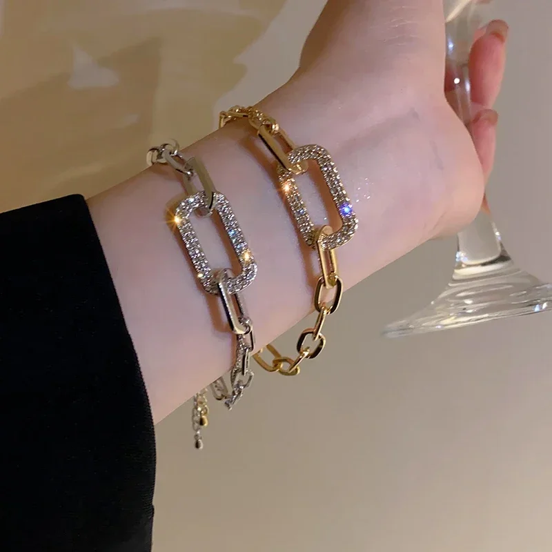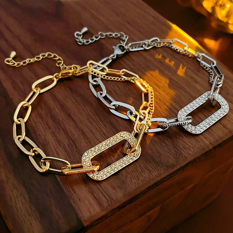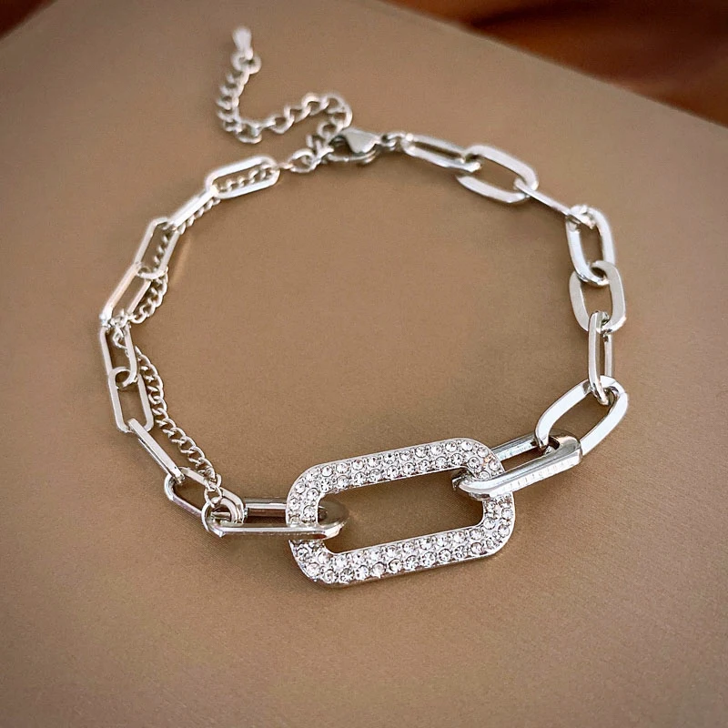 Details: Embrace timeless beauty with this Rounded Rectangular Cubic Zirconia Link Chain Bracelet, available in gold and silver tones. This intricate design showcases a series of rounded rectangular links, with one larger rectangular link adorned with sparkling cubic zirconia gemstones that catch the light beautifully. The warm gold tone adds a touch of sophistication and timeless beauty, while the cool silver tone offers a contemporary and elegant look, making it perfect for casual and formal occasions. Embrace the blend of timeless beauty and contemporary style with this stunning piece.