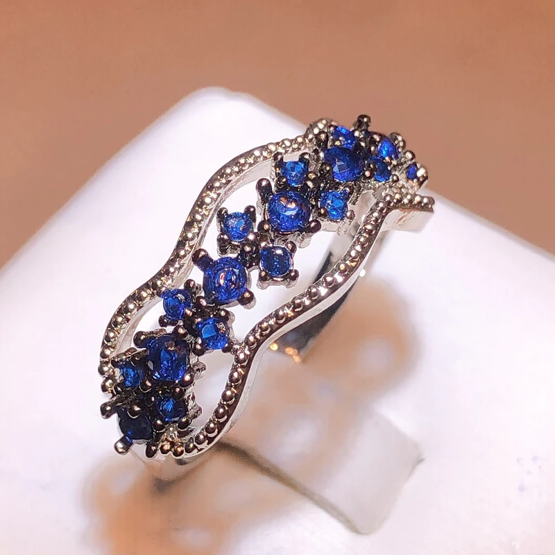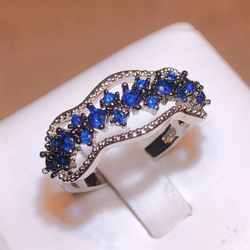 Cellacity Sapphire Rings for Women Silver 925 Fine Jewelry with Gemstones Size5,6,7,8,9,10 Chic Female Anniversary Ring Party
