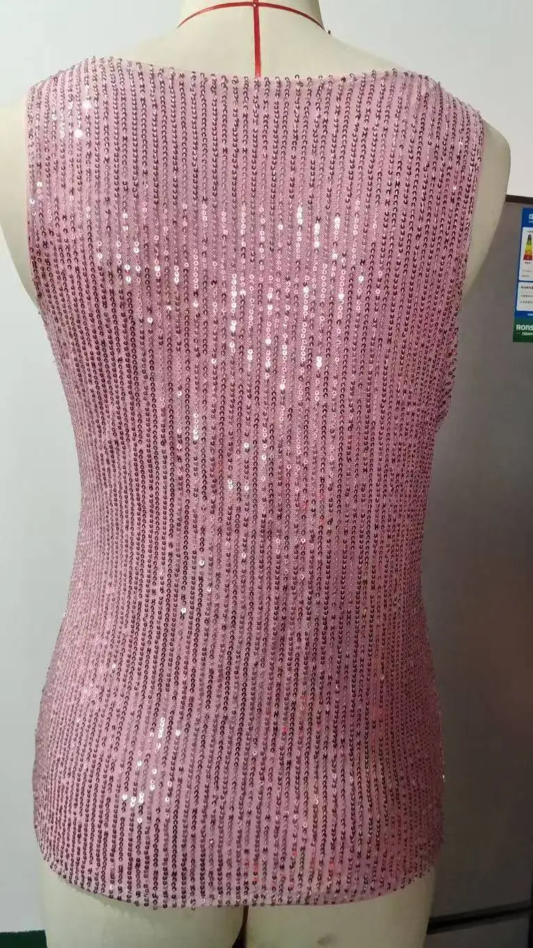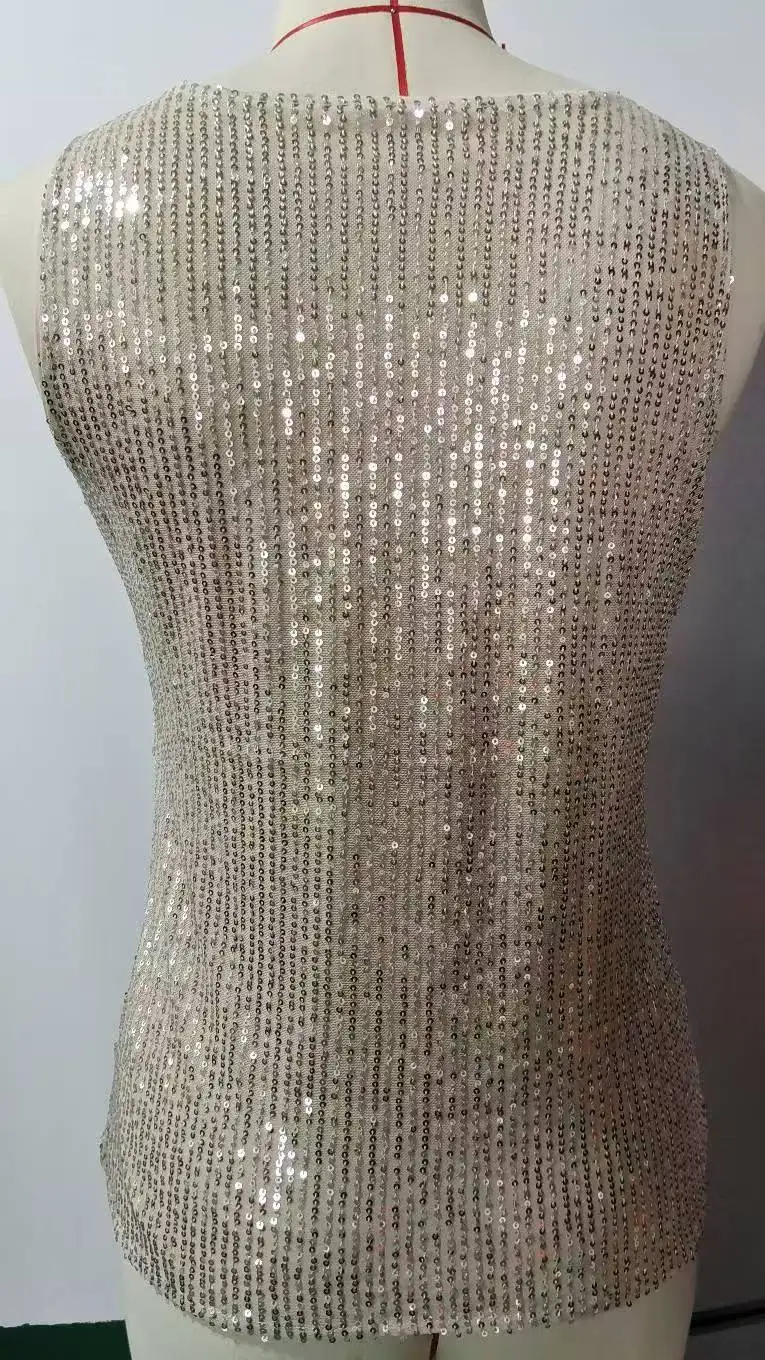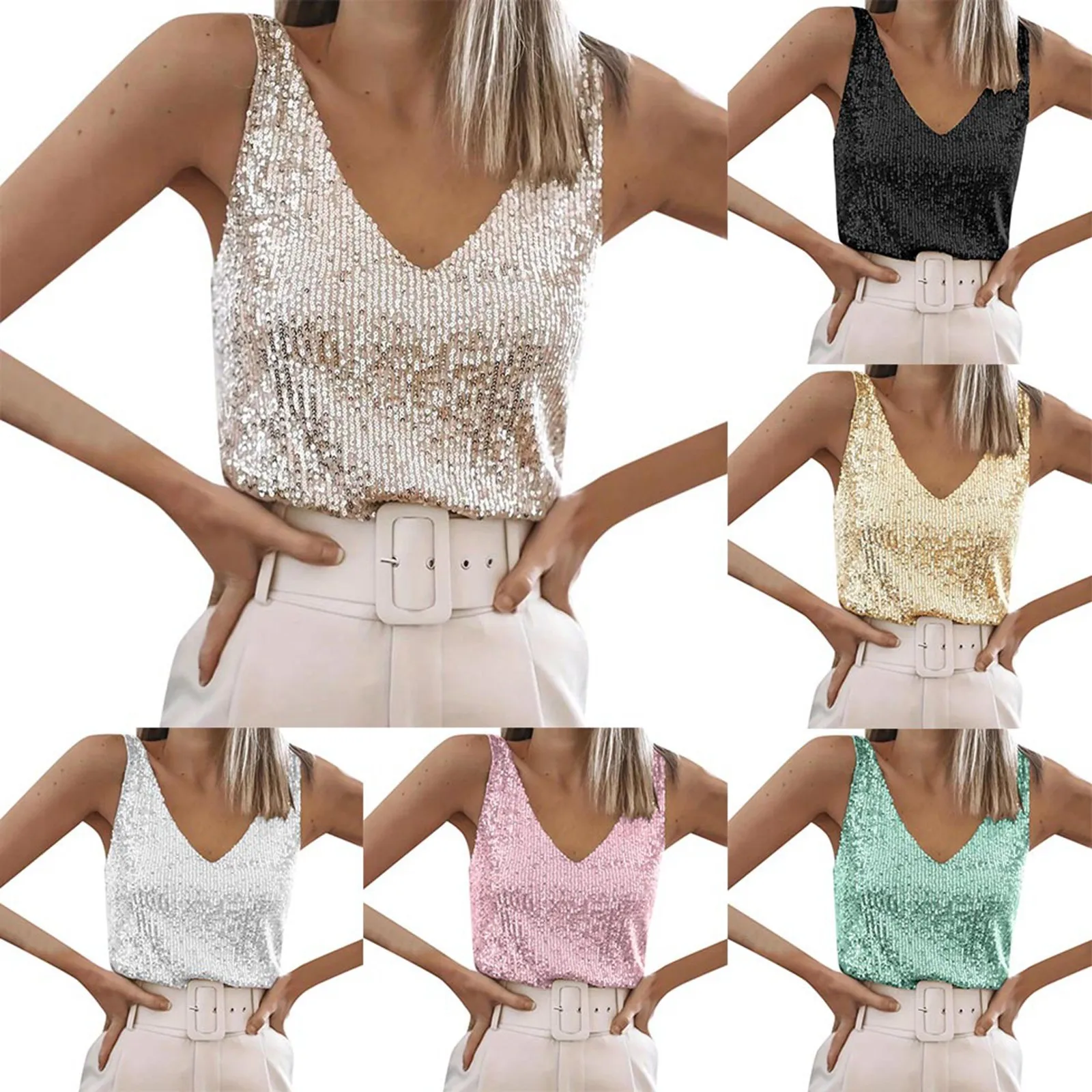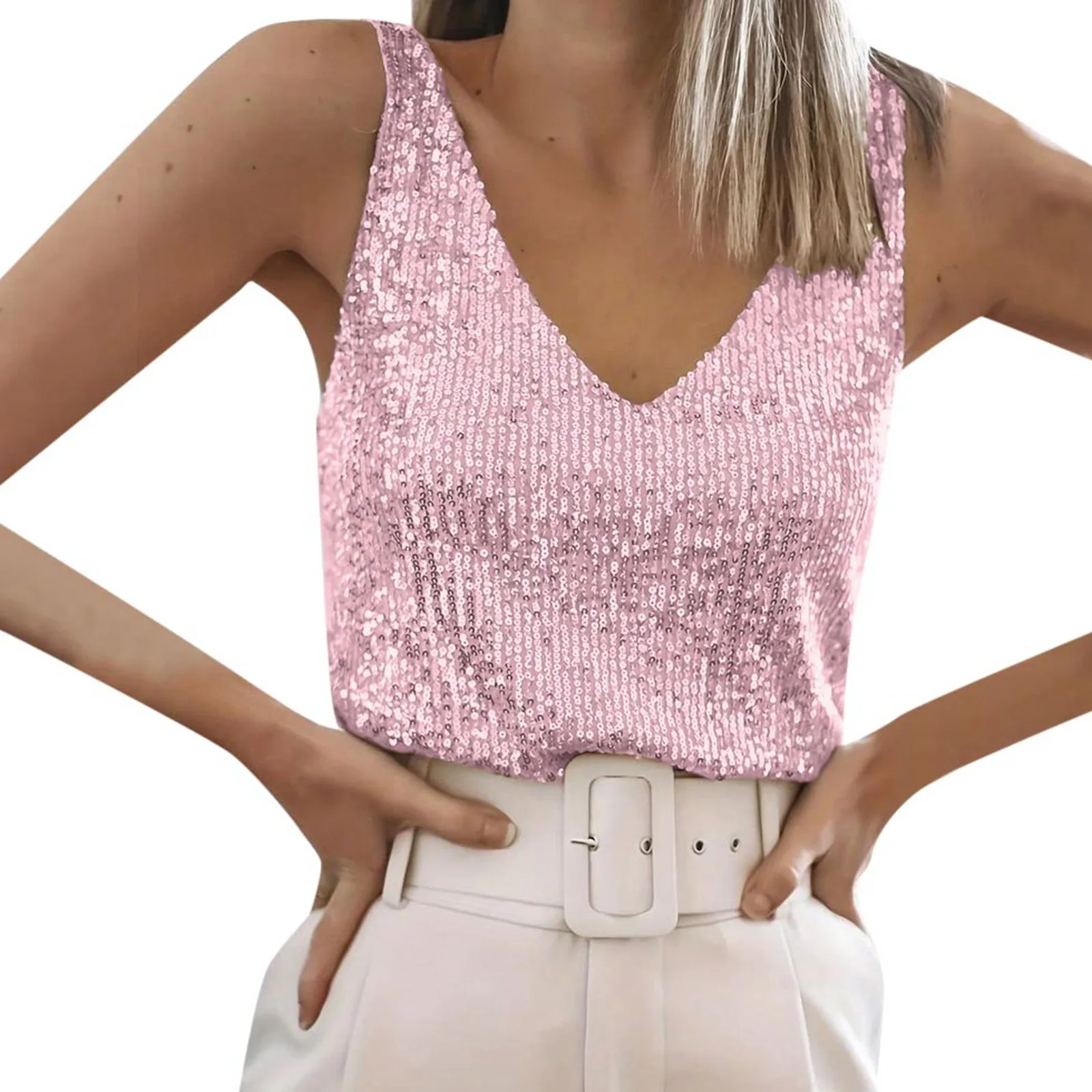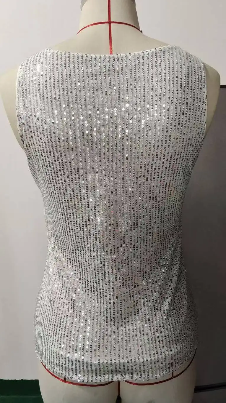 Sexy Deep V-Neck Sequin Sleeveless Tank Top