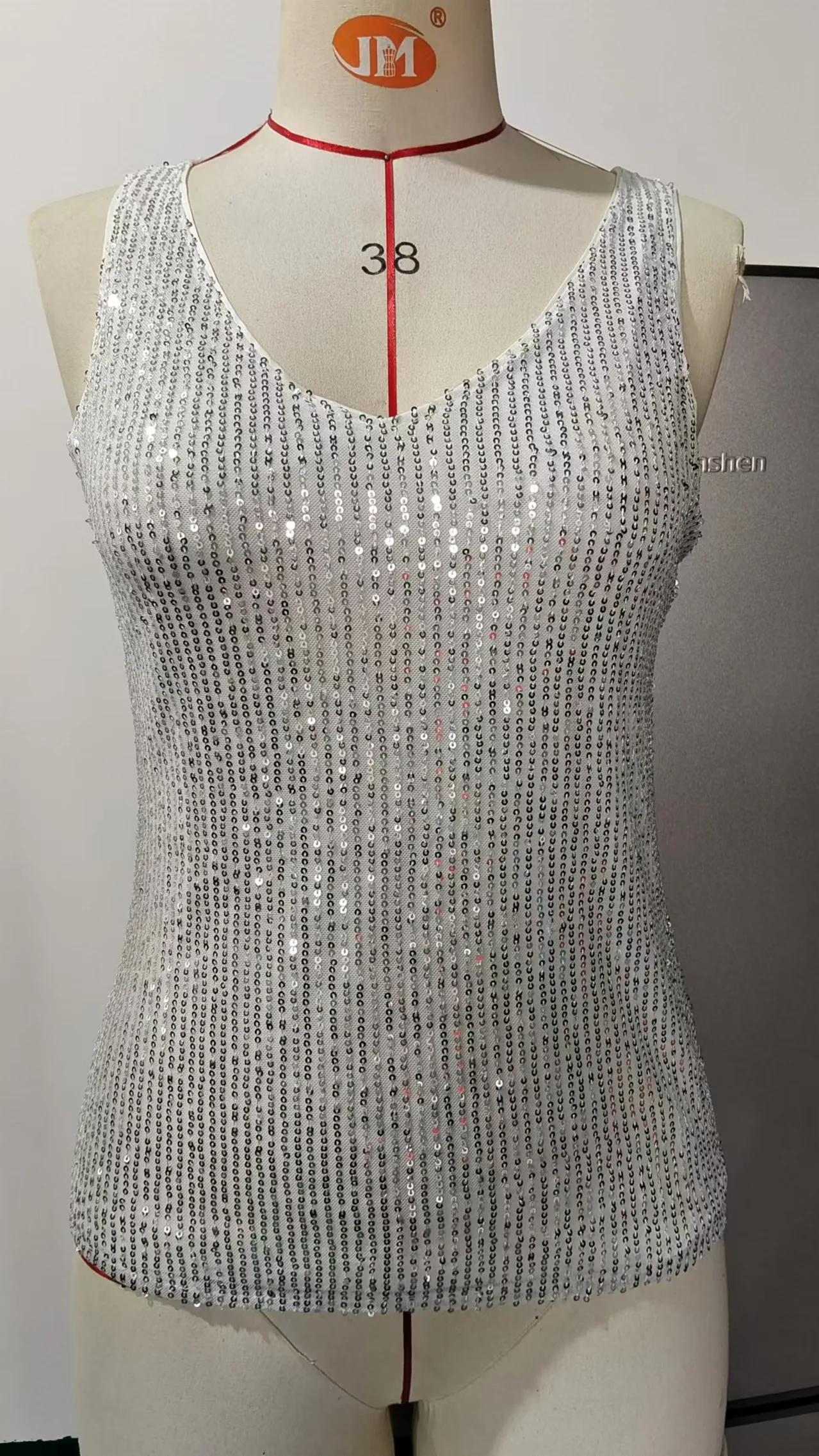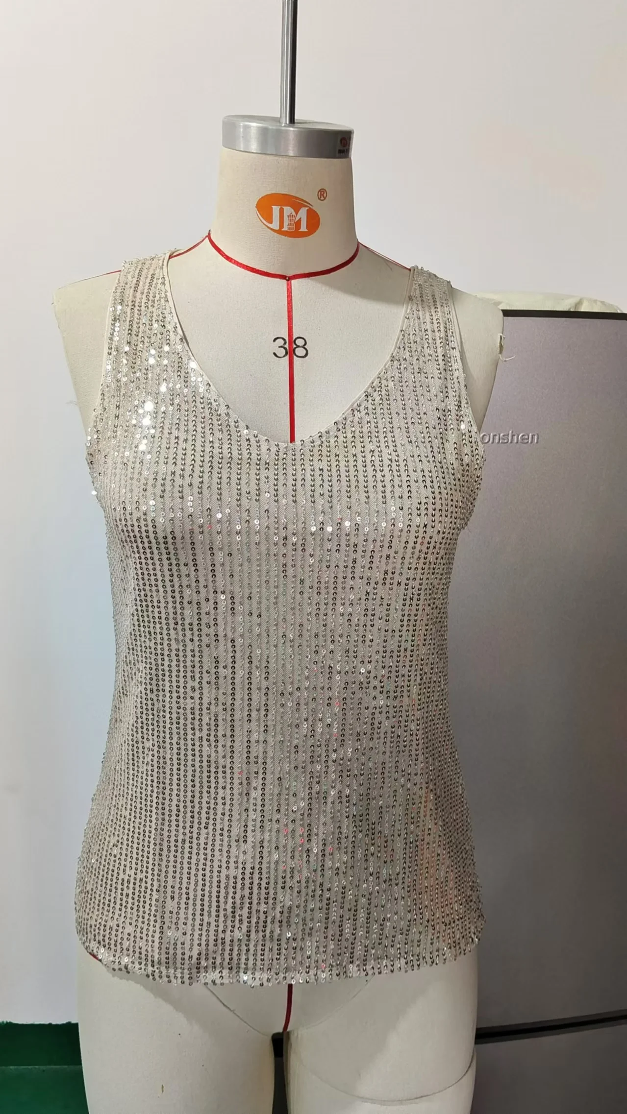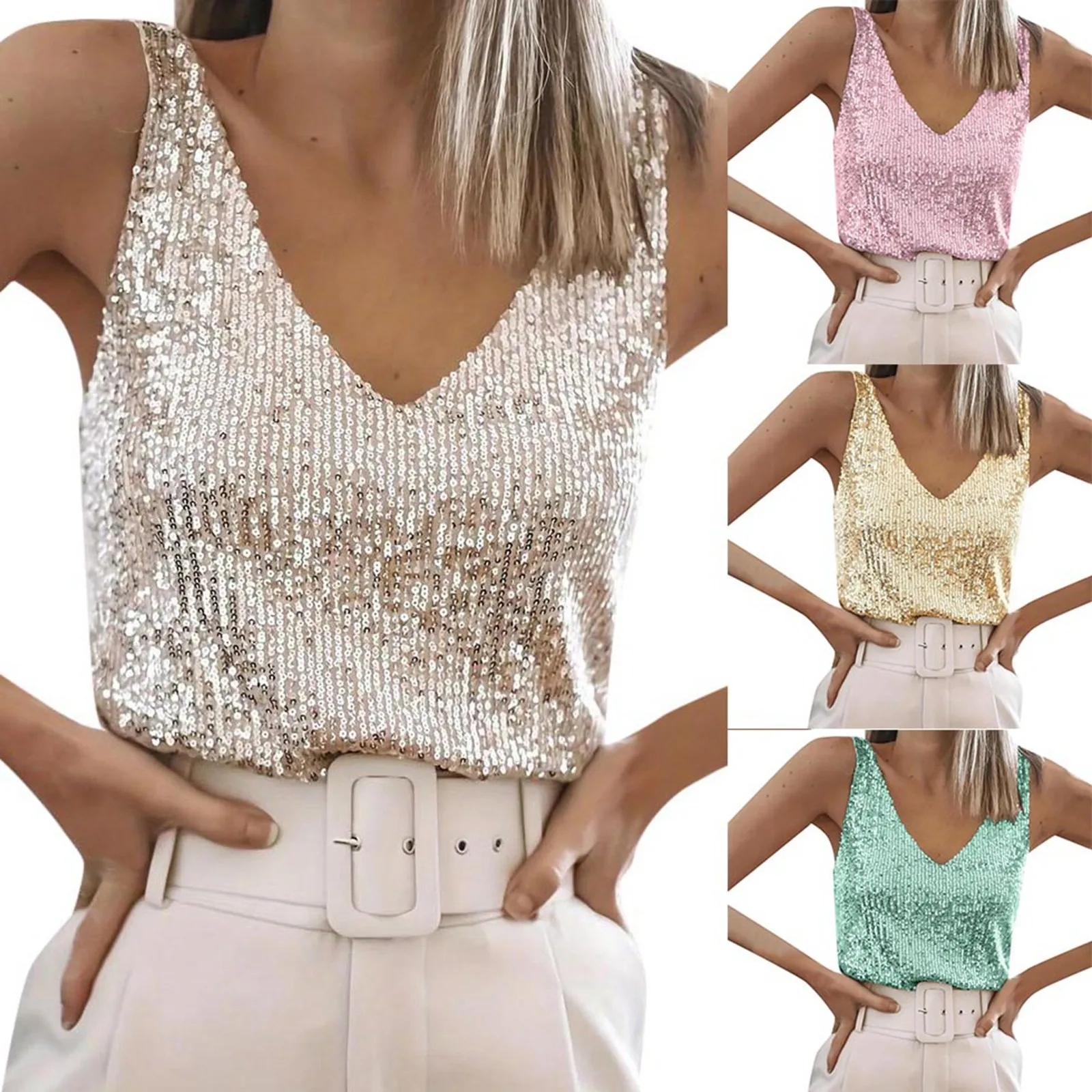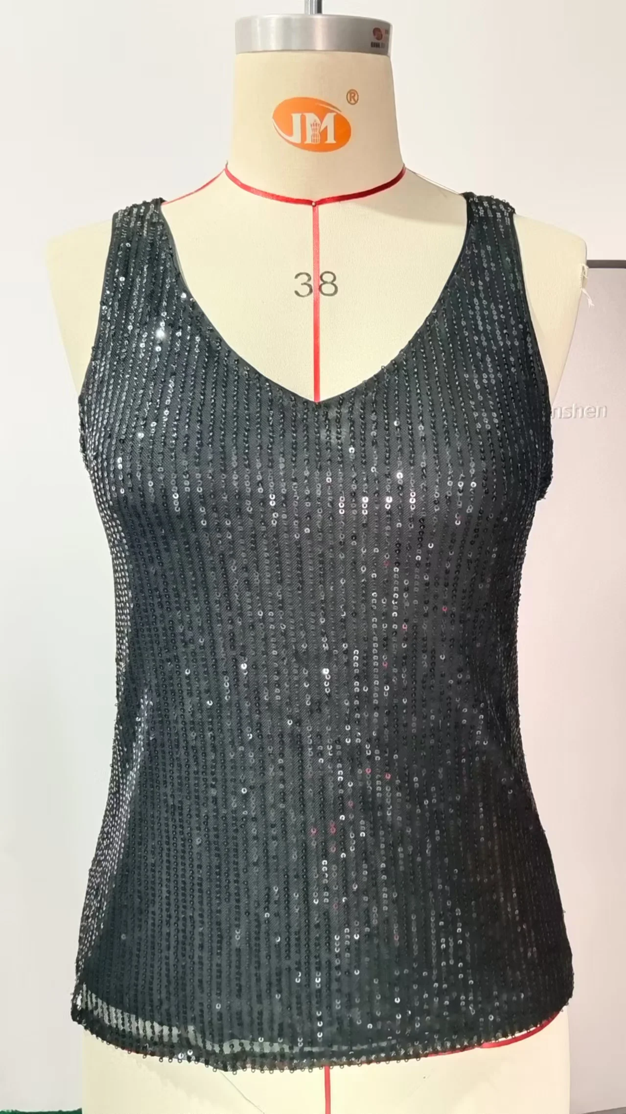 Sexy Deep V-Neck Sequin Sleeveless Tank Top